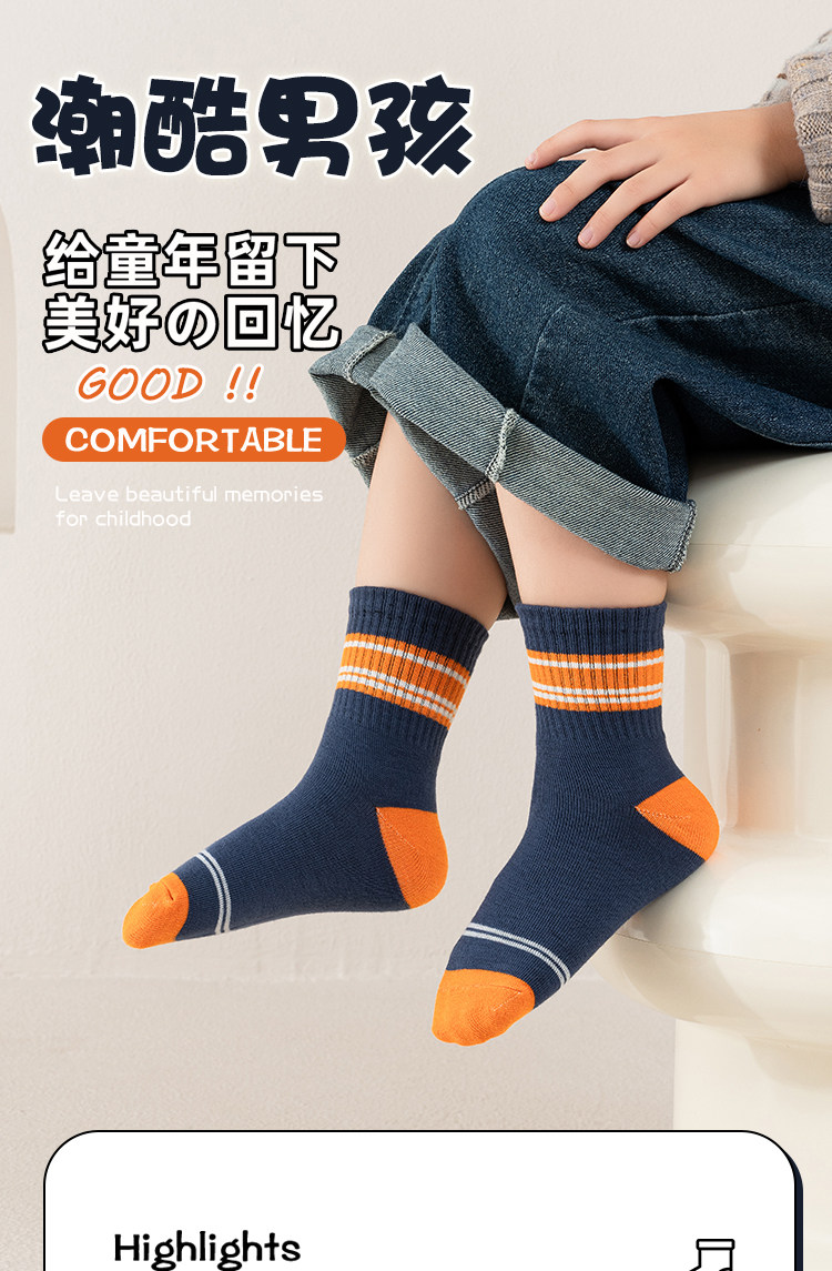 Children's Socks Autumn and Winter Pure Cotton Boys' Socks Autumn Kidsren's Socks Baby Boy Spring and Autumn Student Sports Socks Boys Mid-Calf Socks