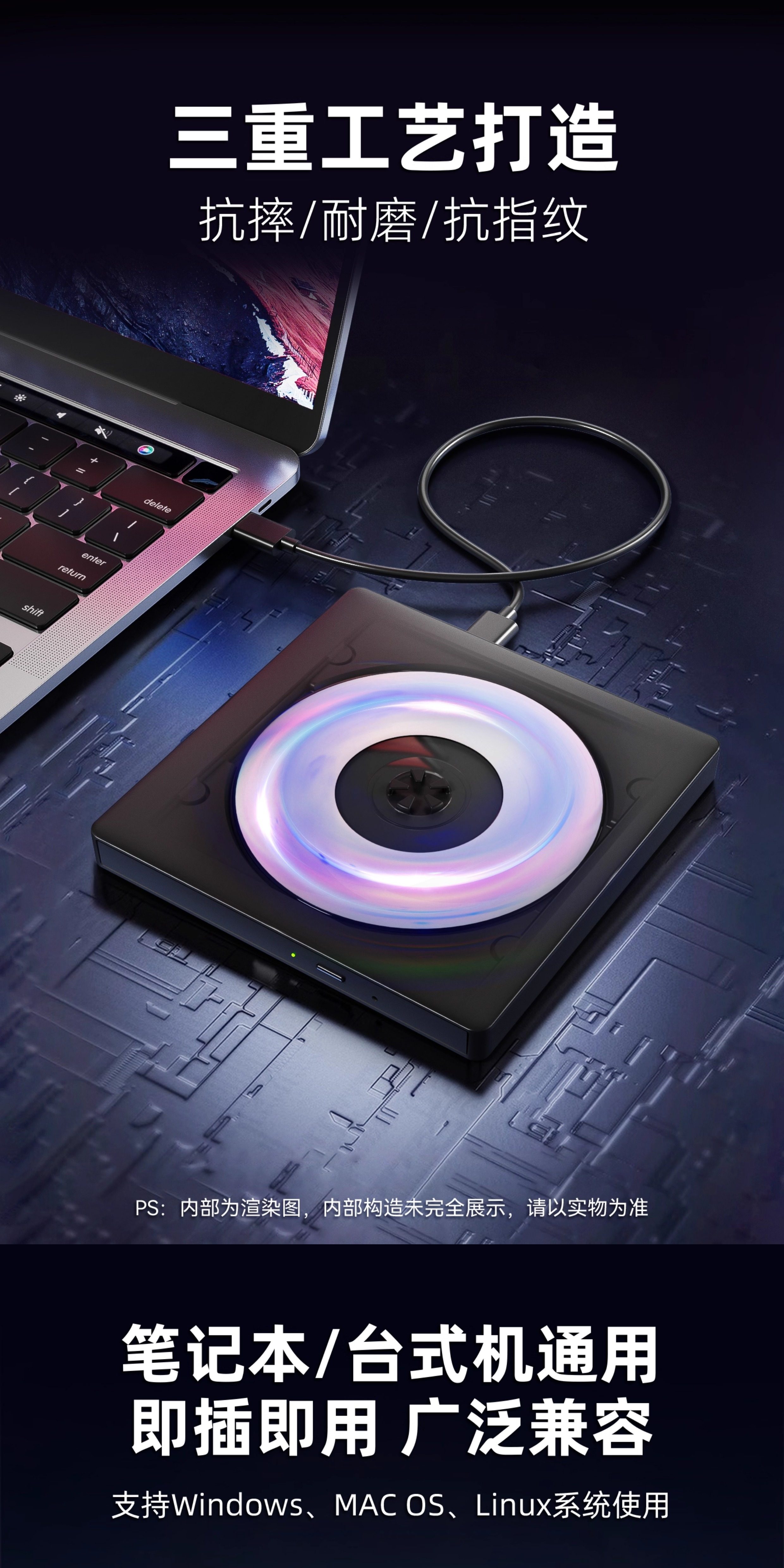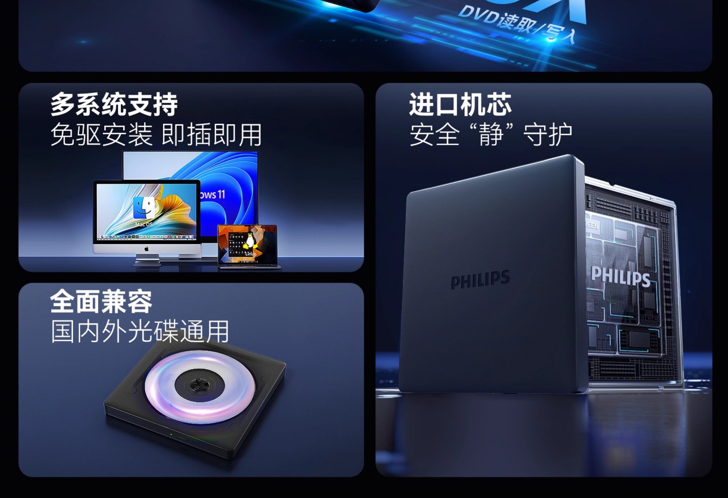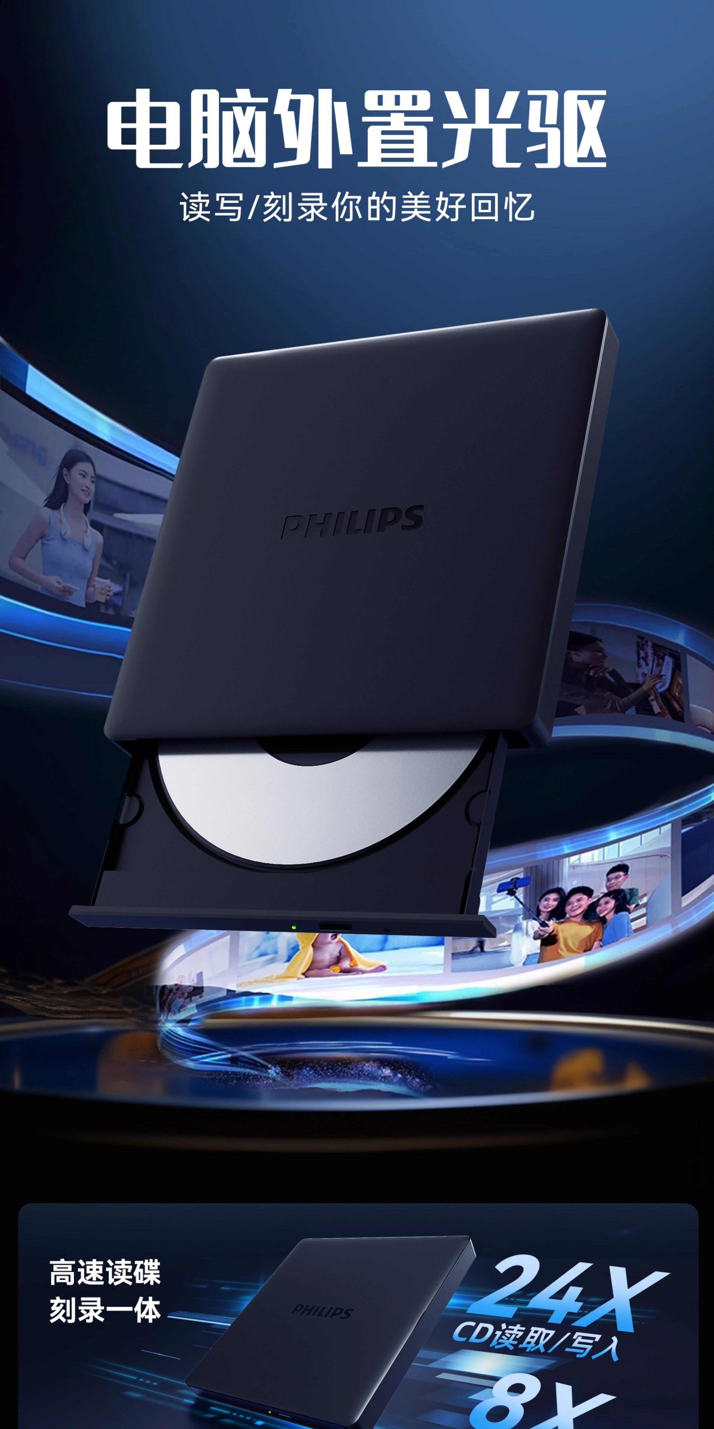 Philips External Optical Drive External Burner Dvd Disc Cd Desktop Computer USB Laptop Universal All-In-One Machine