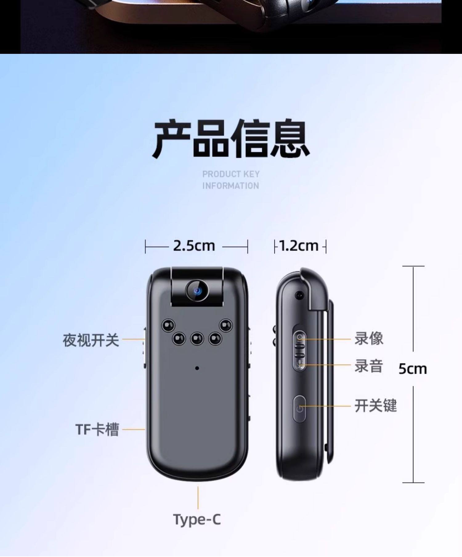 High-Definition Voice Recorder with Camera, Pocket Video Recorder, Night Vision Action Camera, Video Recording Device
