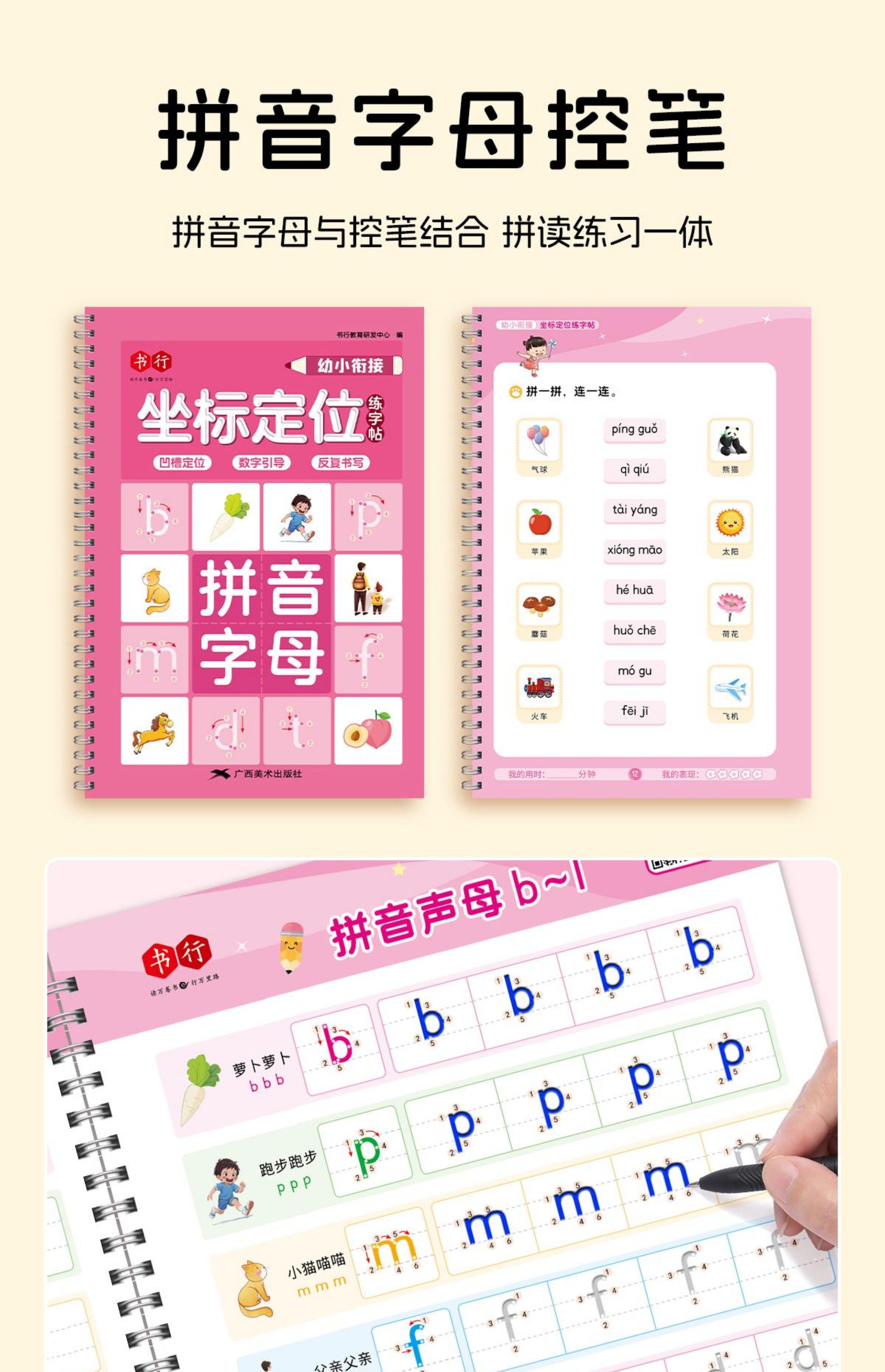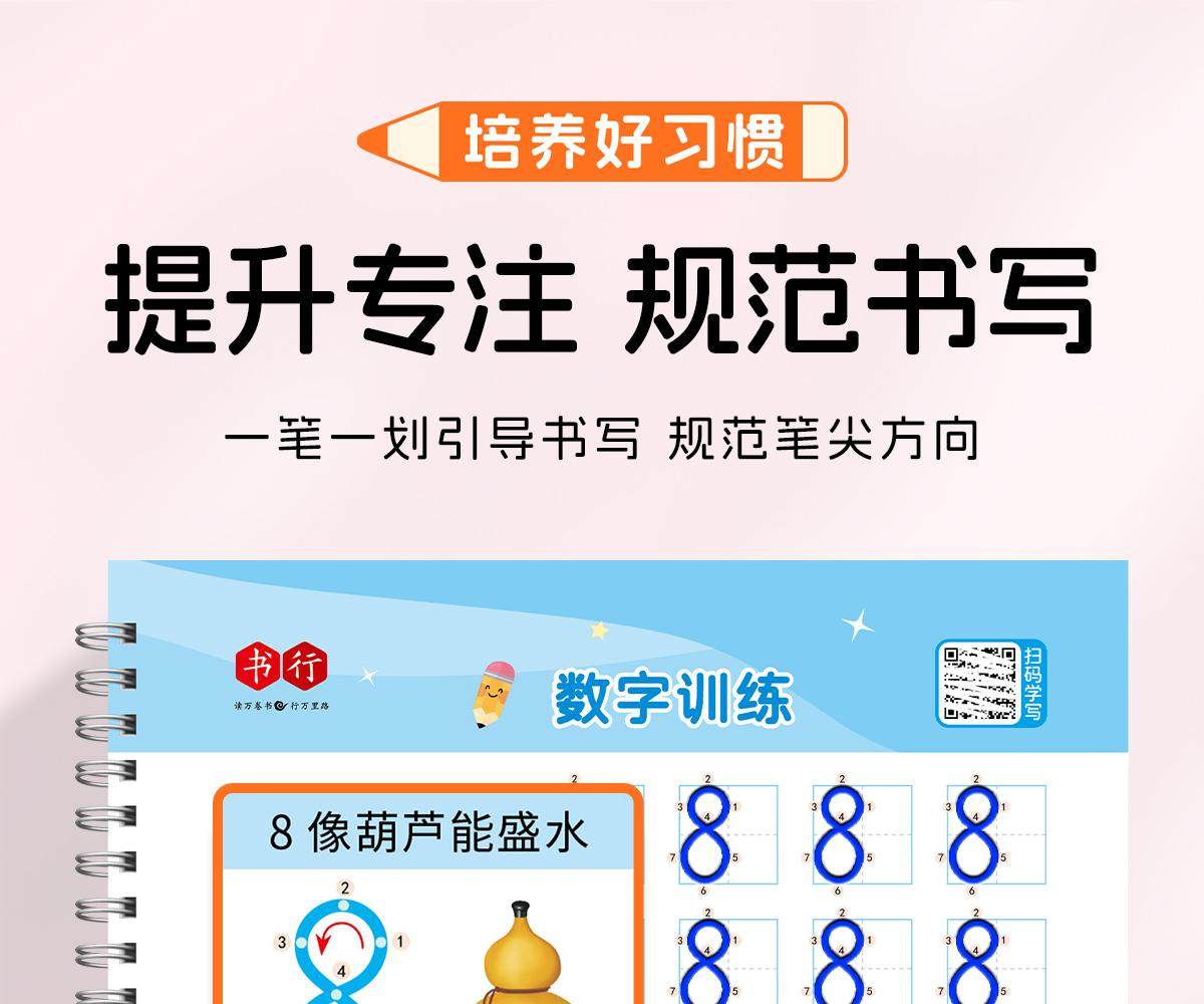 [Tiktok Version]Kindergarten Number and Pinyin Groove Coordinate Positioning Writing Practice Book for 3-8 Year Olds, Pen Control Training, Stroke Order, Chinese Character Introduction, Tracing Book, Fun Educational Teaching Guide, Literacy Practice Book, 2024 New Edition