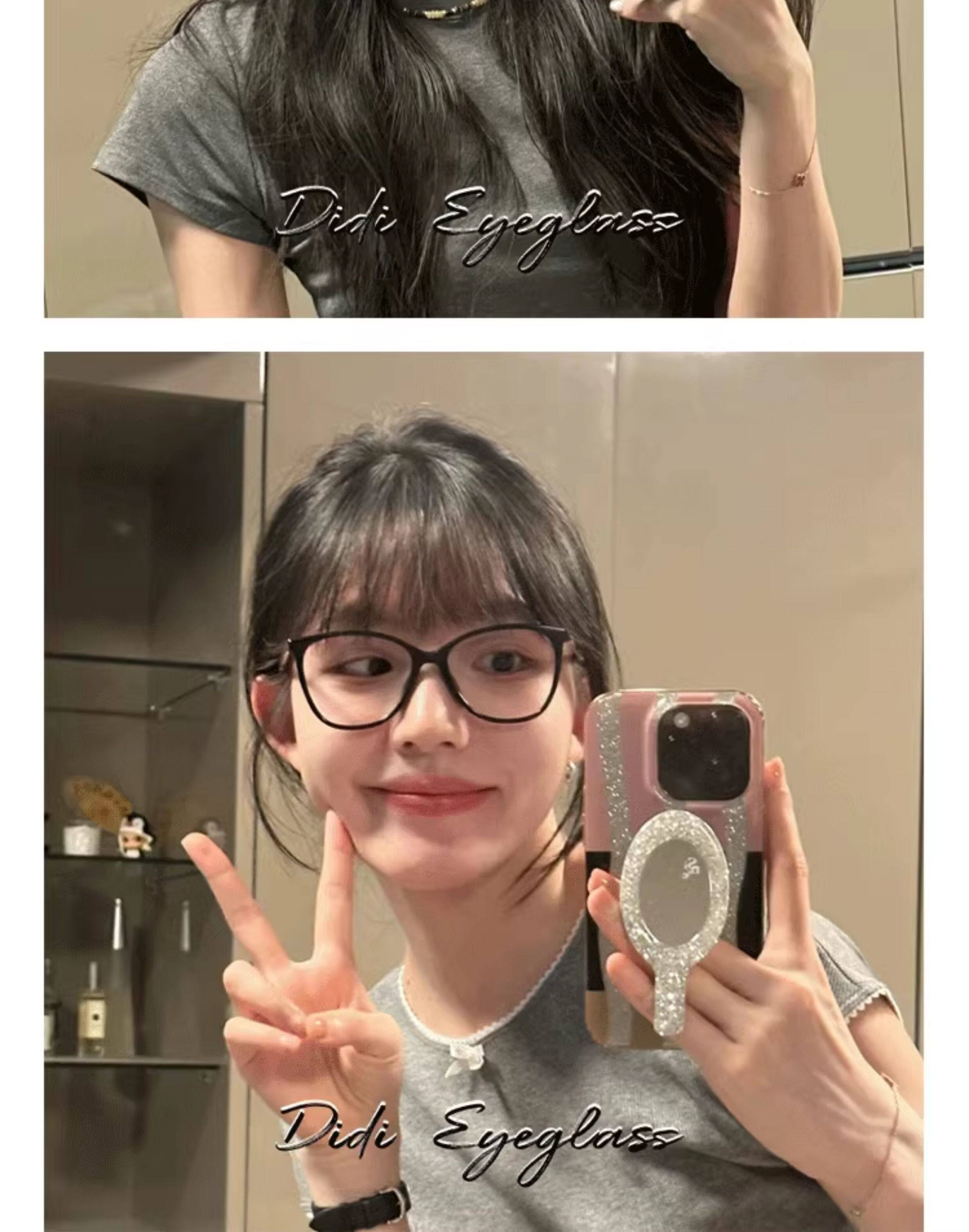Korean Style Black-Framed Glasses for Women, Trendy and Natural-Looking, Suitable for Square and Round Faces, Makes the Face Look Smaller, Can Be Fitted with Prescription Lenses