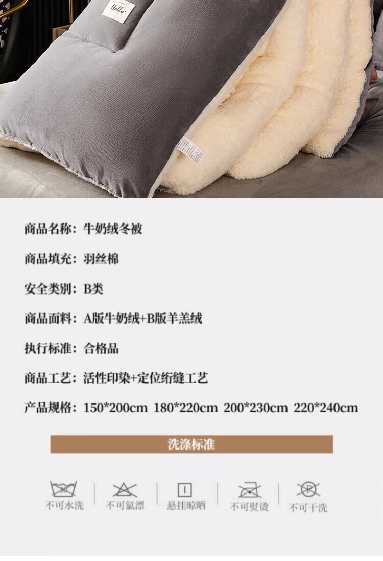 | Size | 150X200Cm Thickened 2.5kg [Upgraded Super Warm Milk Velvet + Lamb Velvet],150X200Cm Extra Thick 3kg [Upgraded Super Warm Milk Velvet + Lamb Velvet],150X200Cm Extra Thick 4kg [Upgraded Super Warm Milk Velvet + Lamb Velvet],180X220Cm Extra Thick 4kg [Upgraded Super Warm Milk Velvet + Lamb Velvet],200X230Cm Thickened 3kg [Upgraded Super Warm Milk Velvet + Lamb Velvet],200X230Cm Extra Thick 4kg [Upgraded Super Warm Milk Velvet + Lamb Velvet],200X230Cm Extra Thick 5kg [Upgraded Super Warm Milk Velvet + Lamb Velvet] |