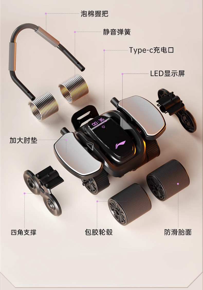 Li Ningjian Abdominal Wheel with Automatic Rebound, Four Wheels, 2025 New Model, Fitness Tool for Slimming the Belly, Abdominal Muscle Wheel, Crunch Wheel for Men