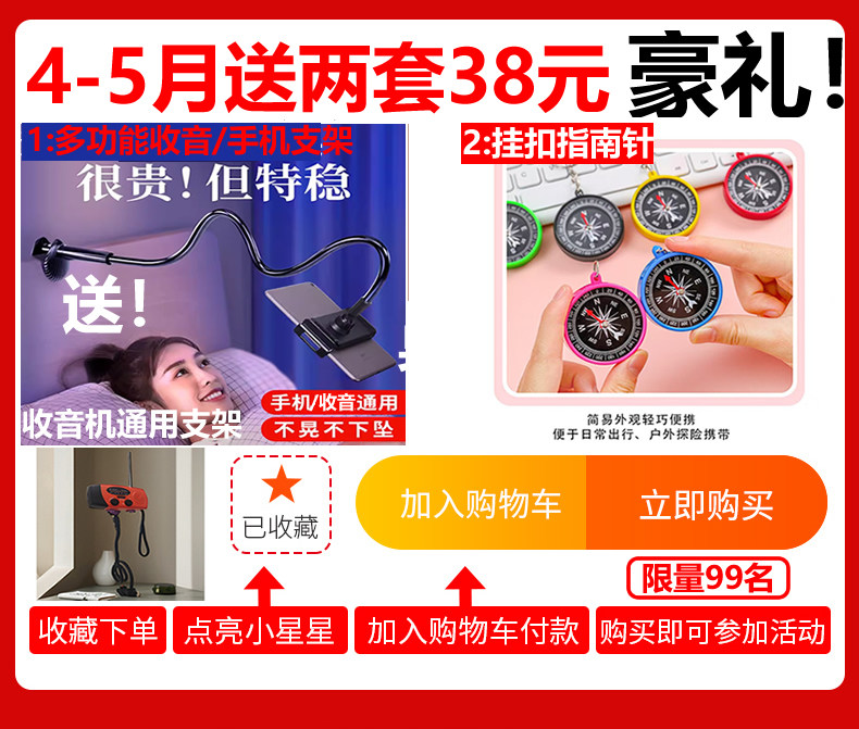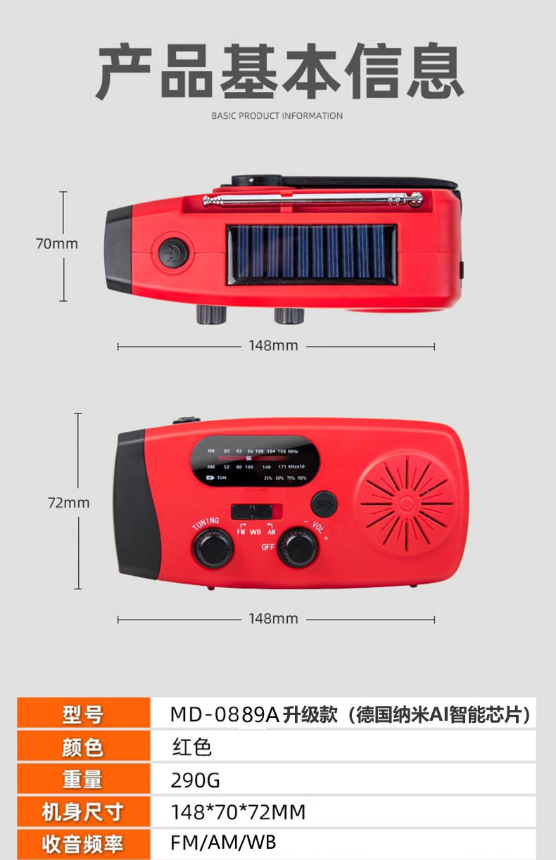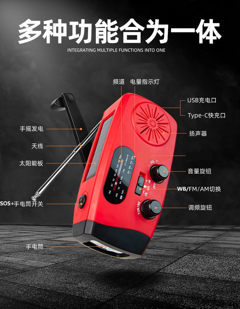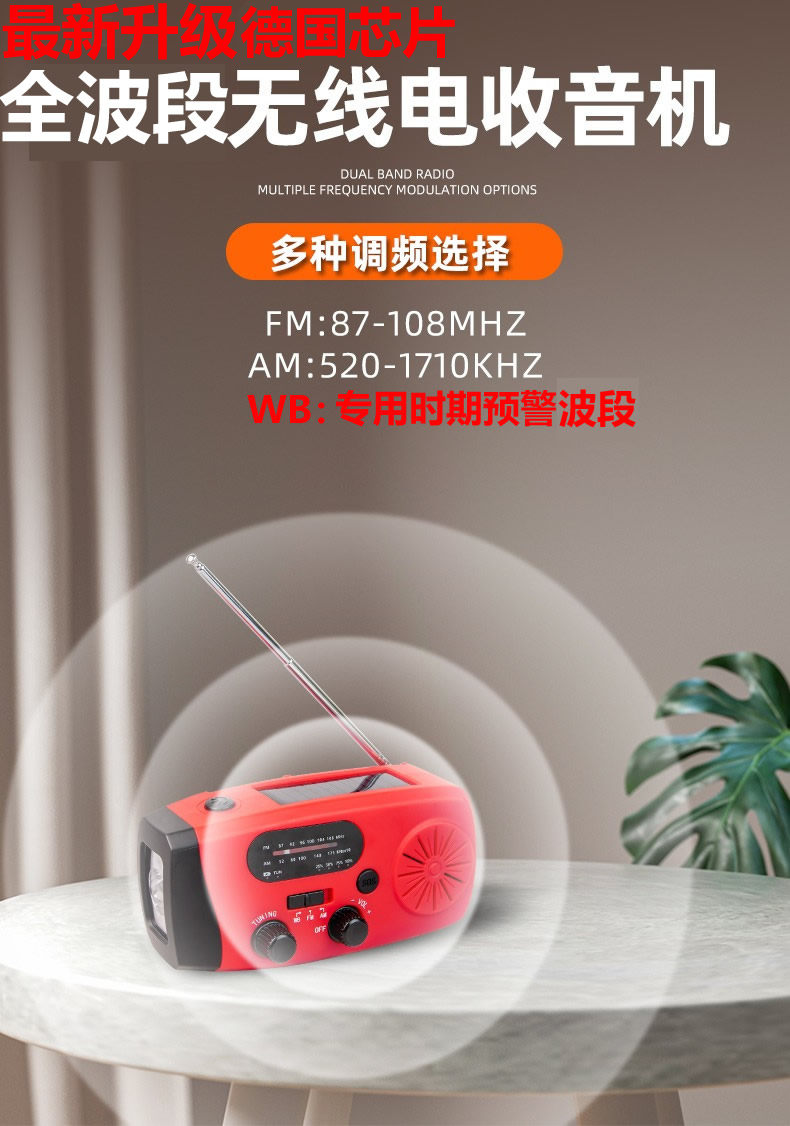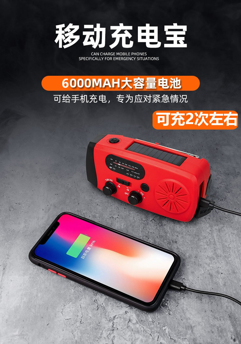 | Color Classification | Red 2000Mah[Full Band/Mobile Phone Charging/Hand Crank/Solar/Torch/Radio/Sos],Green 2000Mah[Full Band/Mobile Phone Charging/Hand Crank/Solar/Torch/Radio],Black 2000Mah[Full Band/Mobile Phone Charging/Hand Crank/Solar/Torch/Radio/Sos],Orange 2000Mah[Full Band/Mobile Phone Charging/Hand Crank/Solar/Torch/Radio/Sos],Black 6000Mah[Full Band/Mobile Phone Charging/Hand Crank/Solar/Torch/Radio/Sos],Orange 6000Mah[Full Band/Mobile Phone Charging/Hand Crank/Solar/Torch/Radio/Sos],Orange 10000Mah[Full Band/Mobile Phone Charging/Hand Crank/Solar/Torch/Radio/Sos],Black 10000Mah[Full Band/Mobile Phone Charging/Hand Crank/Solar/Torch/Radio/Sos] |