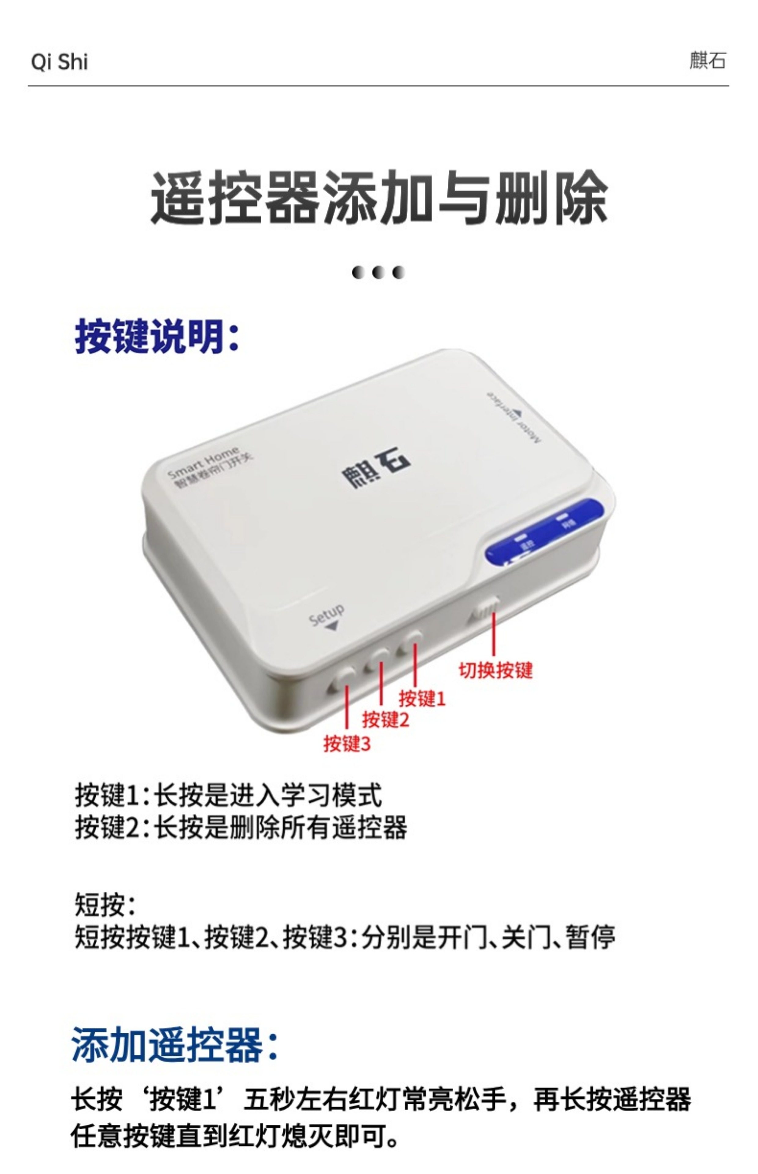 Qi Stone Rolling Shutter Door Control, Rolling Shutter Remote Control, Electric Garage Door Control Box, Chain Tubular Motor Receiver