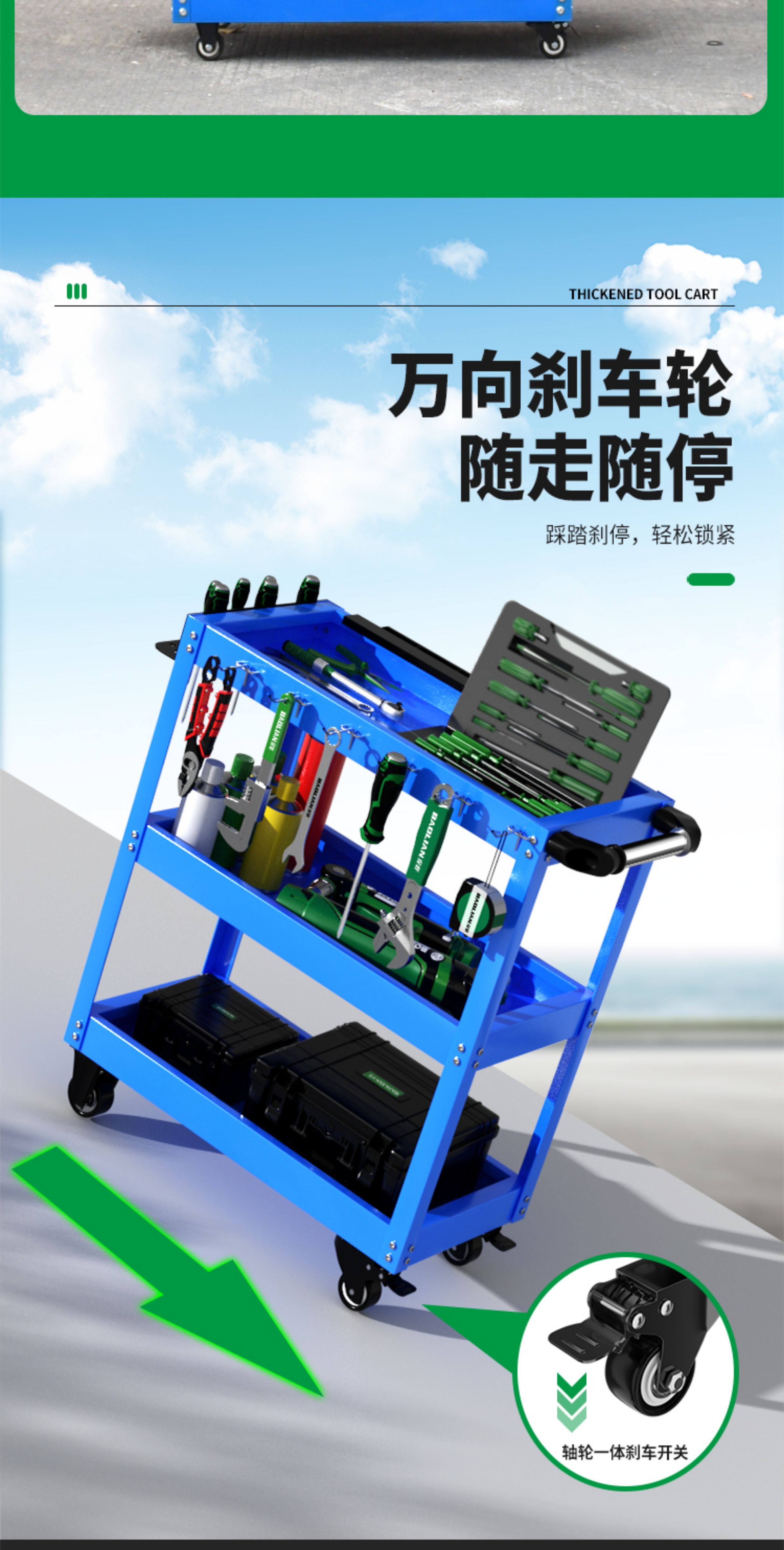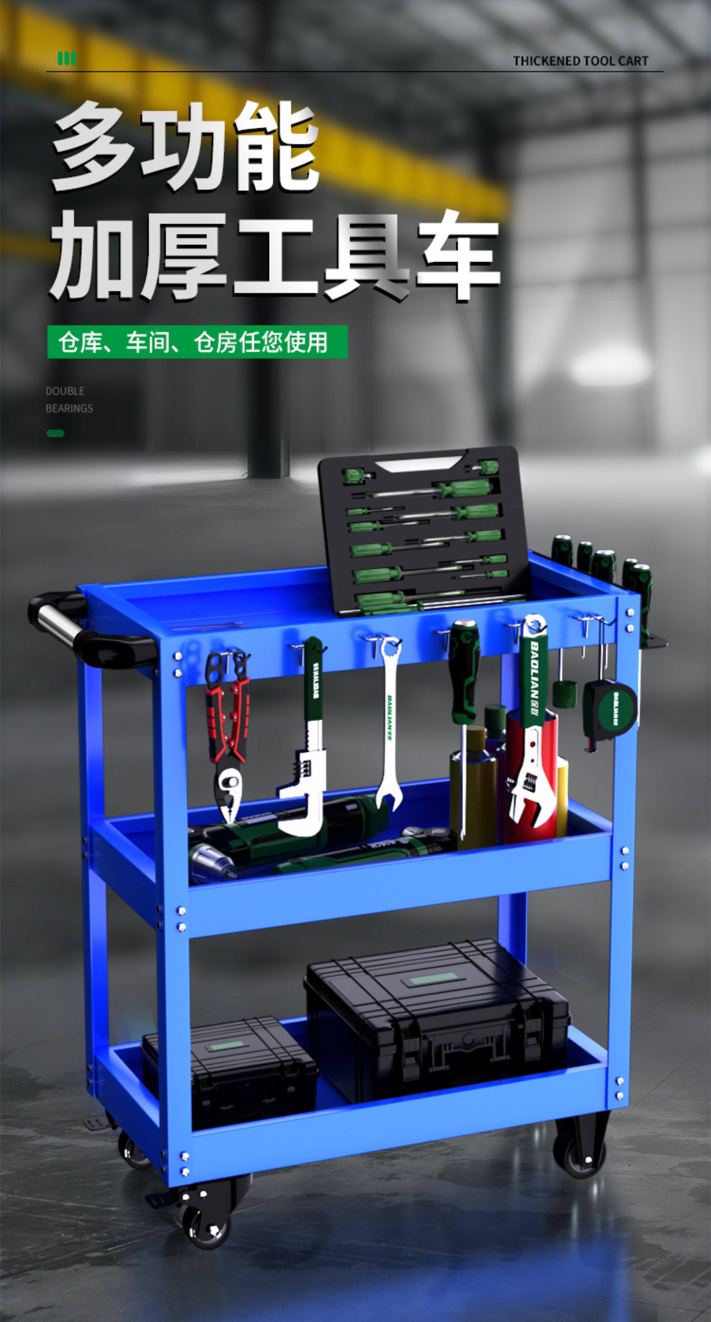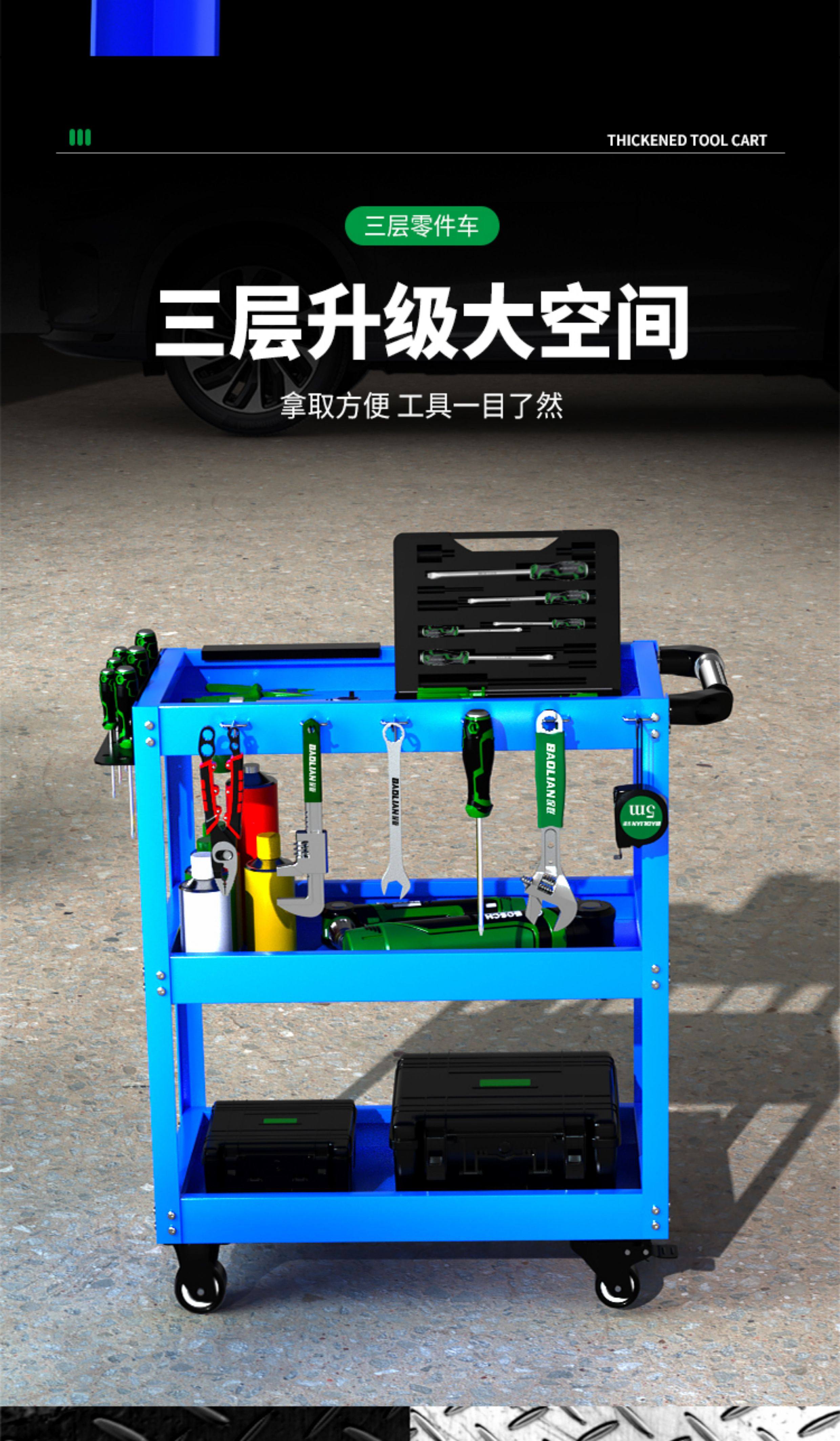 Baolian Tool Cart, Multi-Functional Trolley, Three-Layer Repair Storage Rack, Mobile Cabinet for Auto Repair