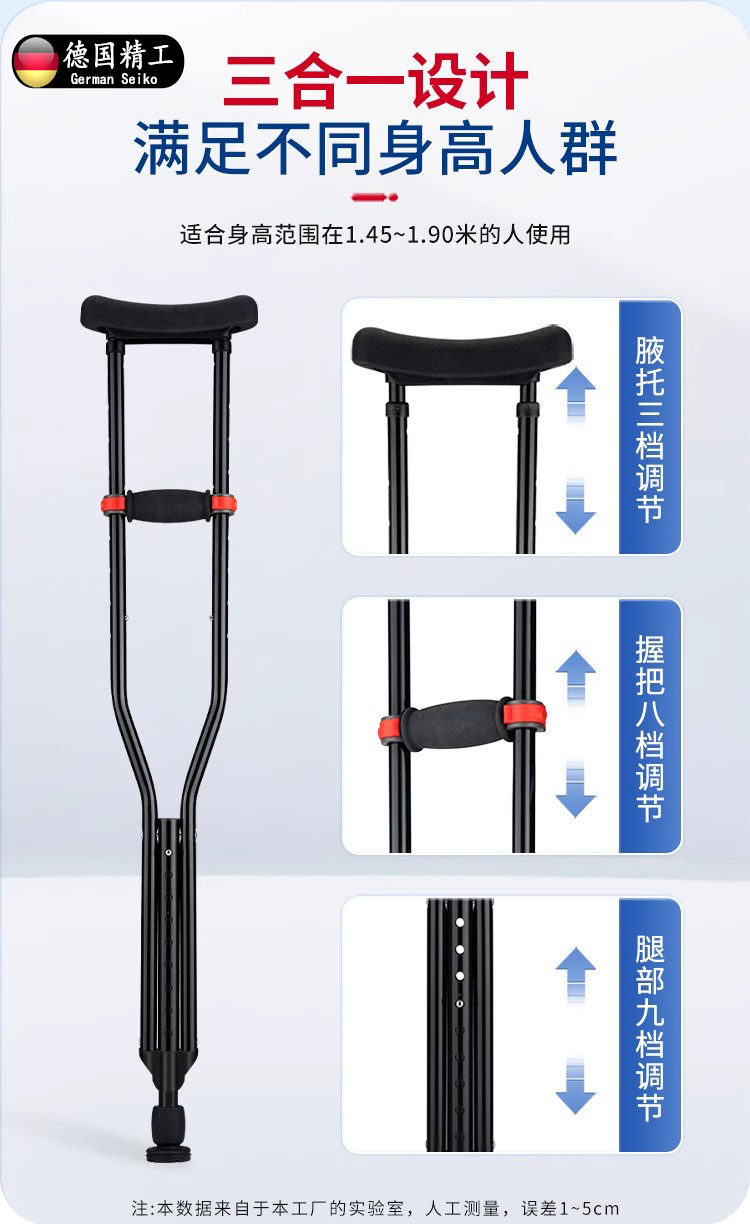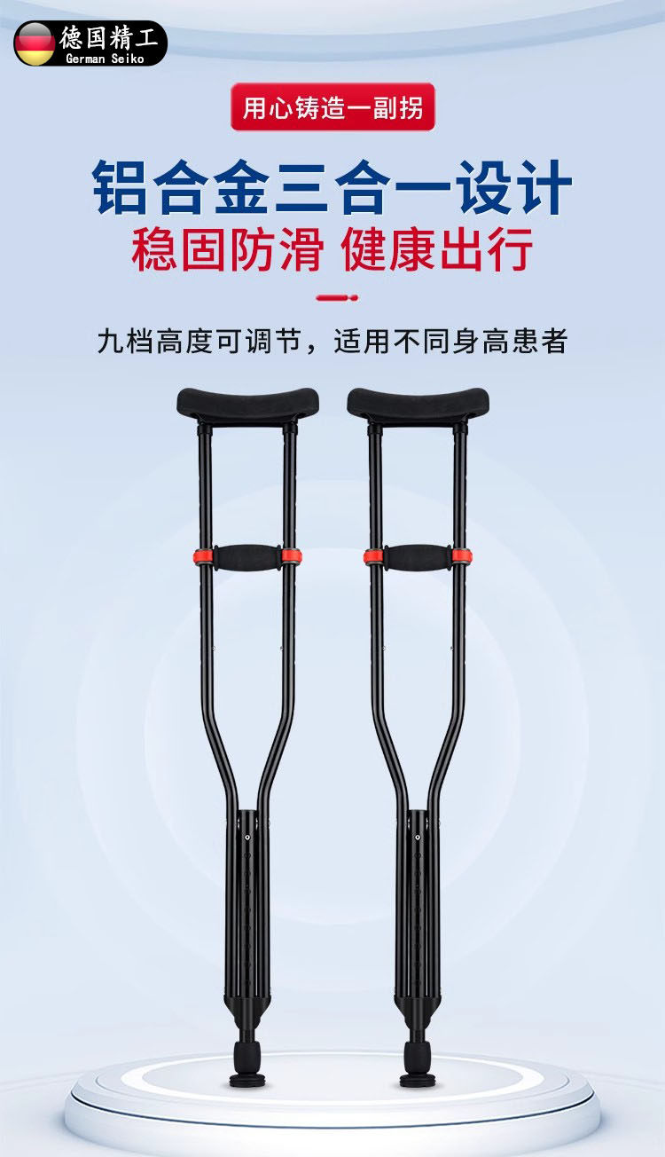 German-Made Crutches, Underarm Crutches, Crutches for Young People, Crutches for the Elderly, Anti-Slip, Foot Sprain Prevention, Special Crutches, Walking Aids