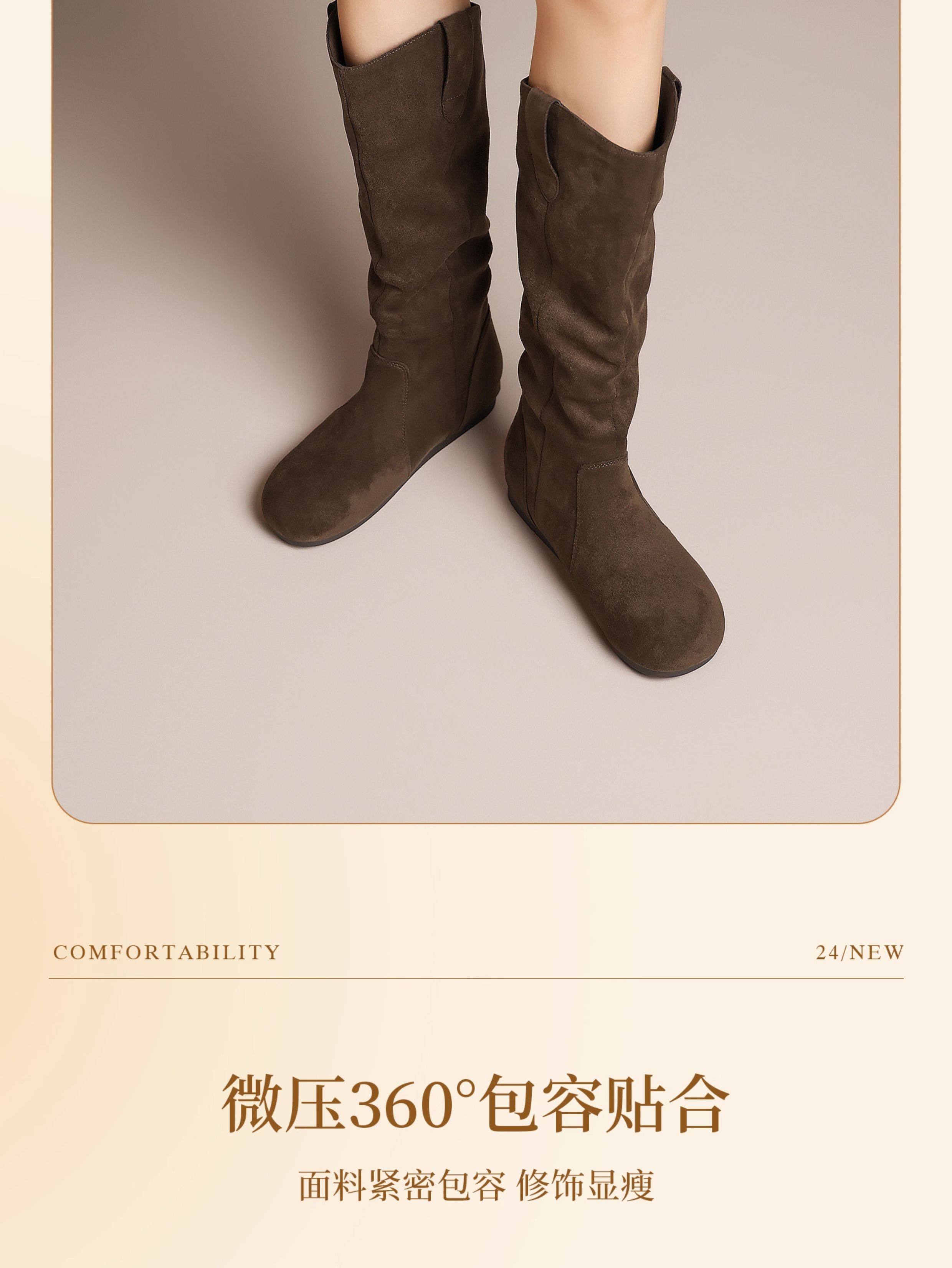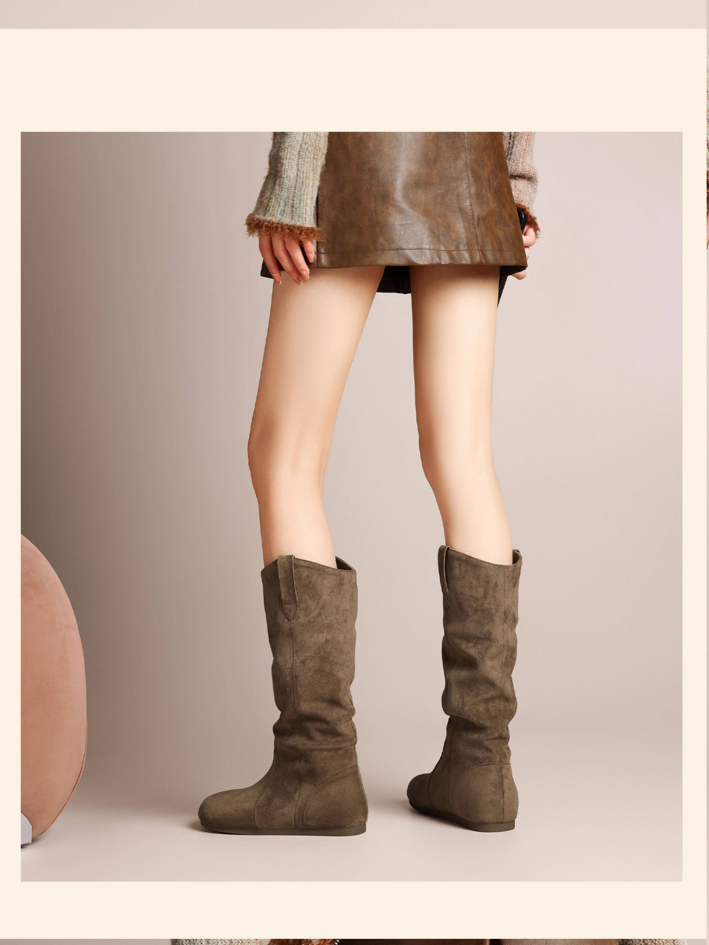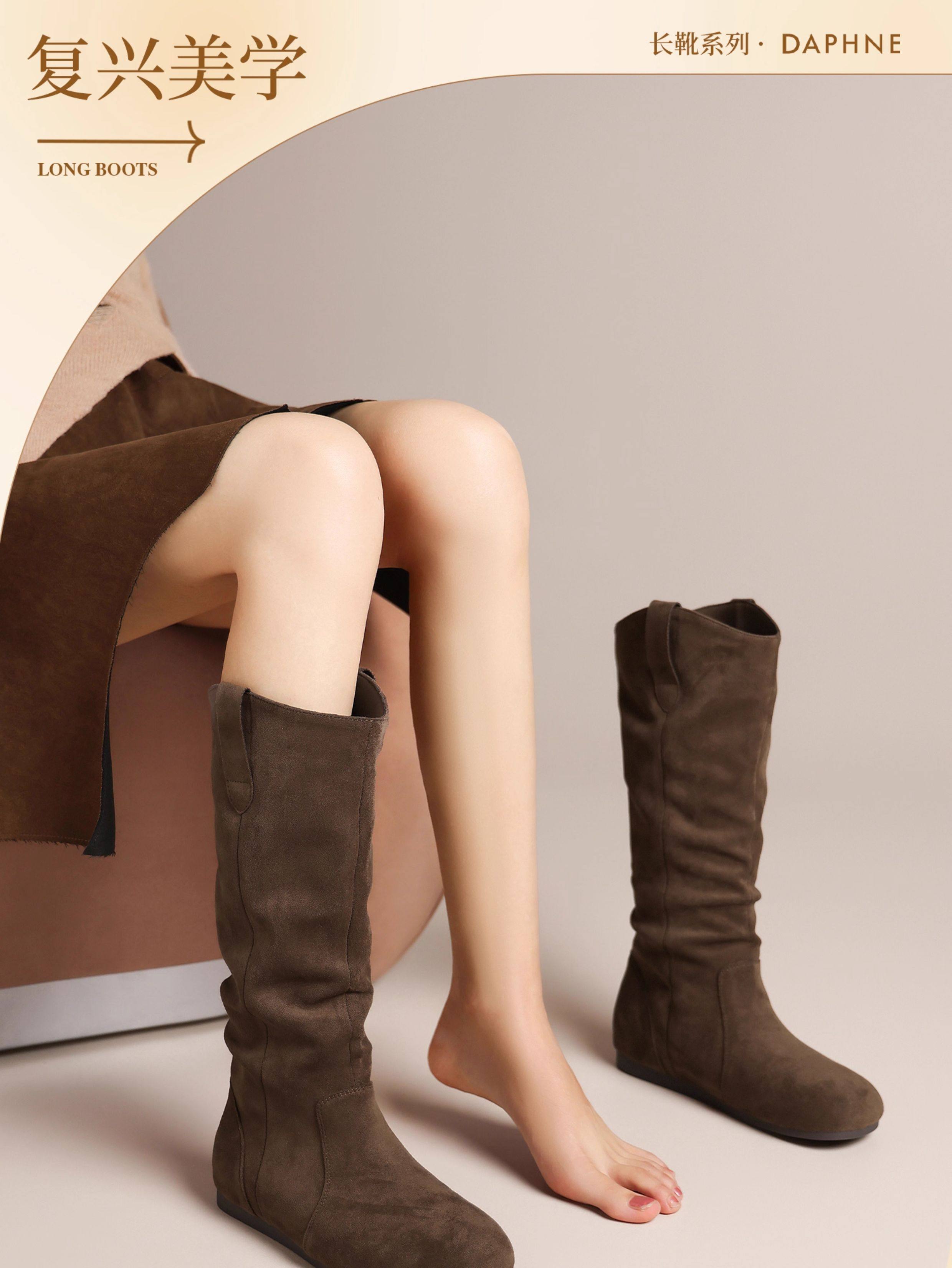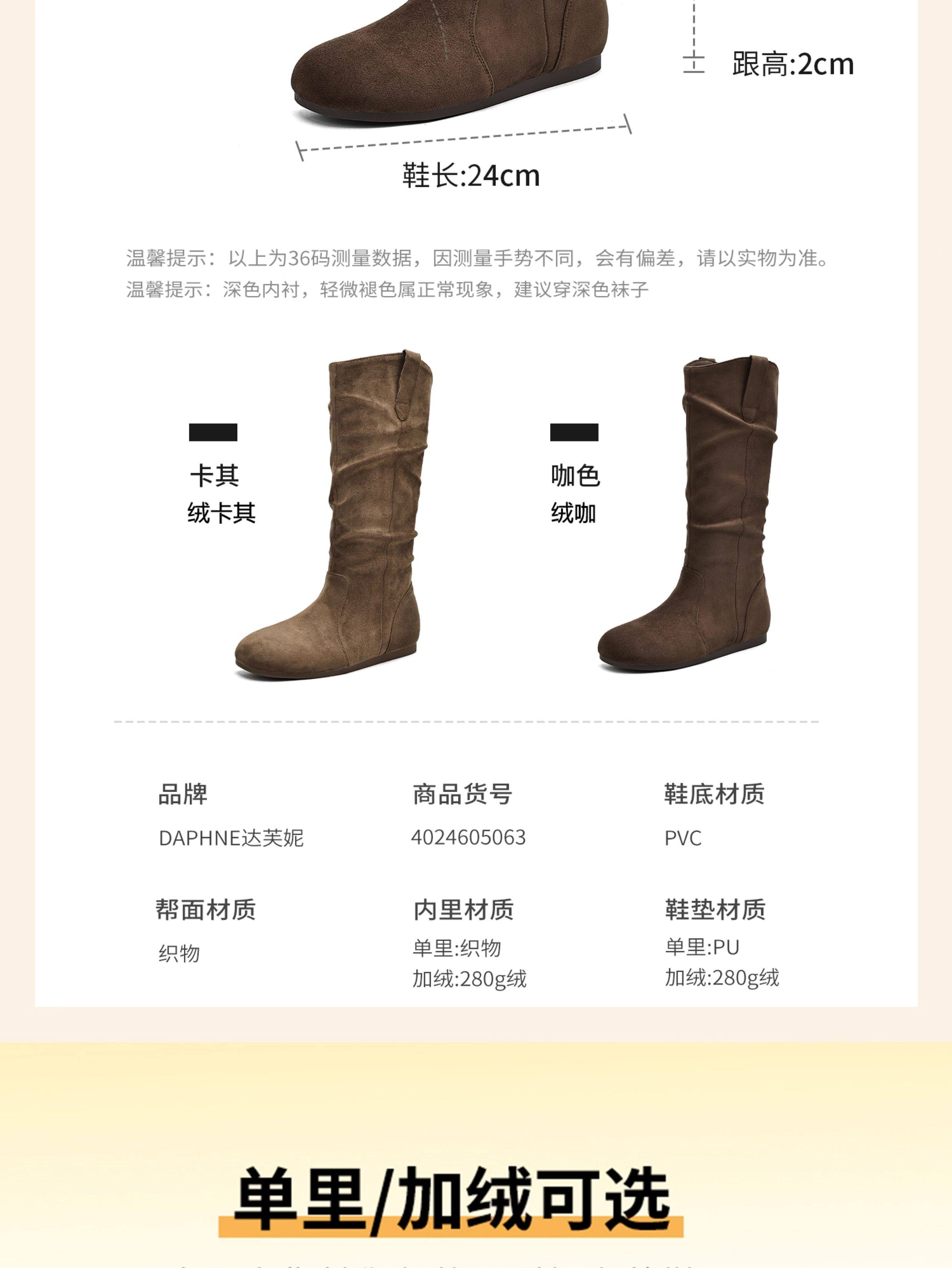 Daphne's Popular Mid-Calf Boots for Women 2025 New Autumn and Winter Fleece-Lined Boots Women's Melard Flat-Soled Slouchy Boots Short Boots