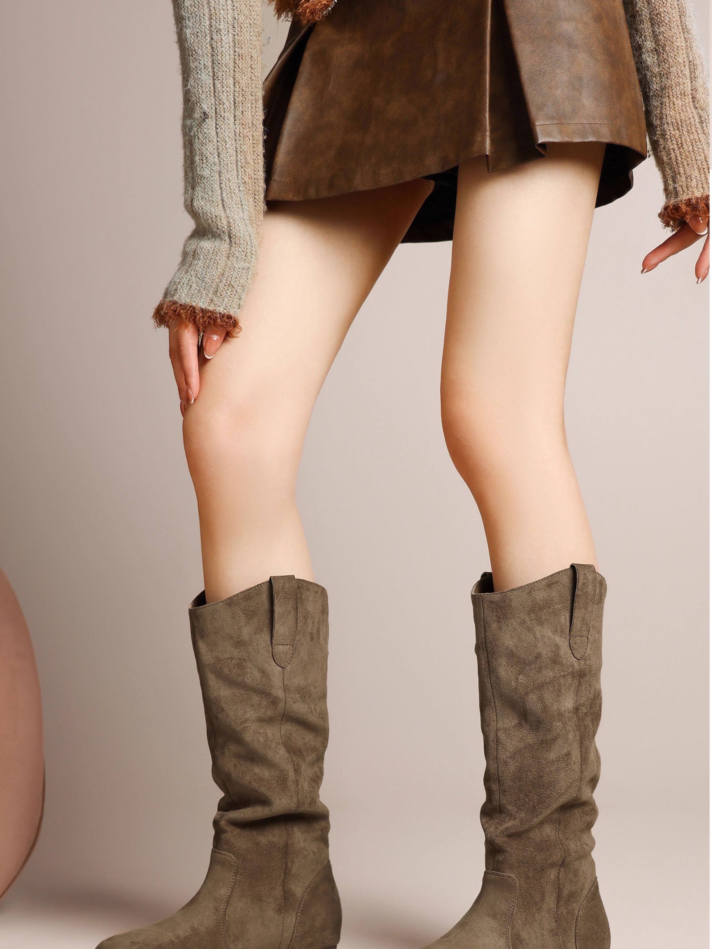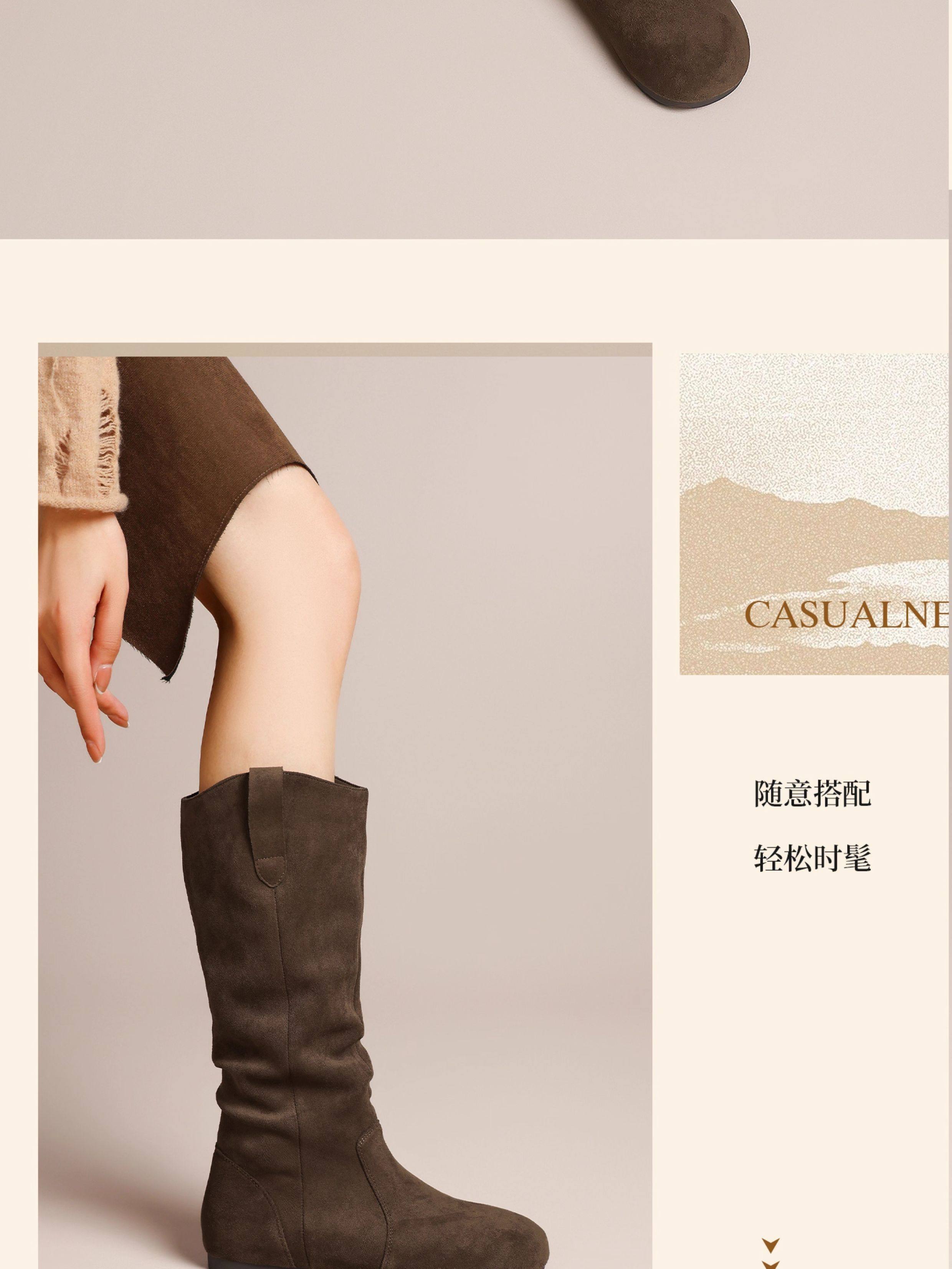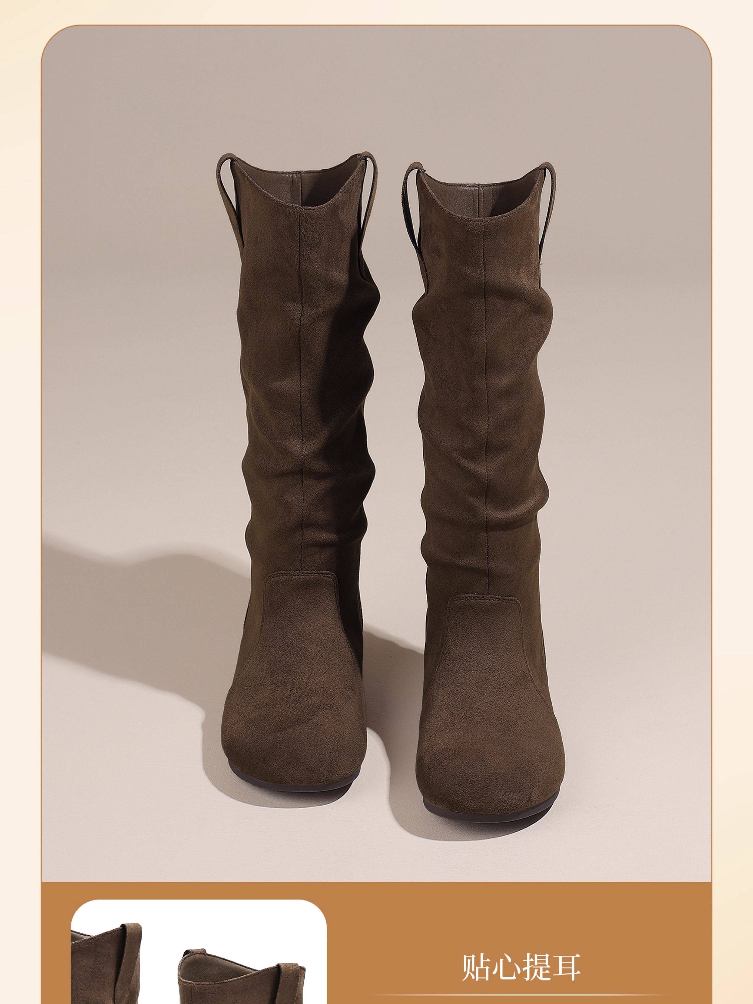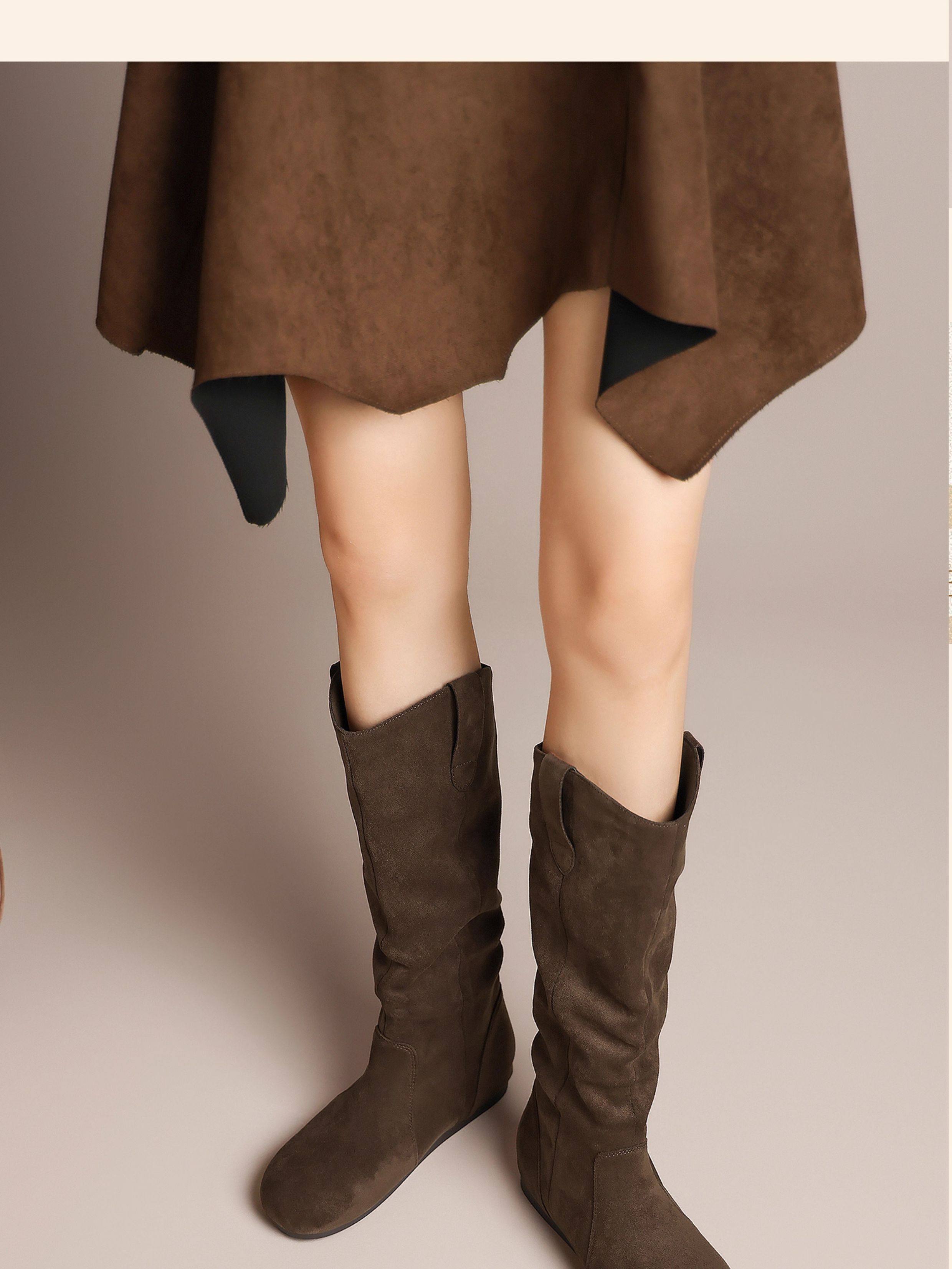 Daphne's Popular Mid-Calf Boots for Women 2025 New Autumn and Winter Fleece-Lined Boots Women's Melard Flat-Soled Slouchy Boots Short Boots