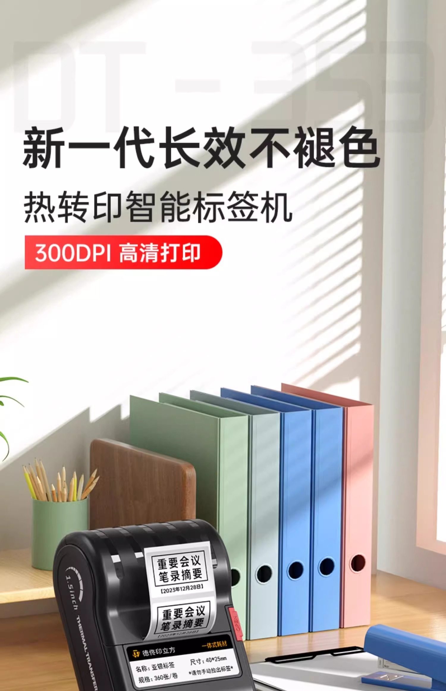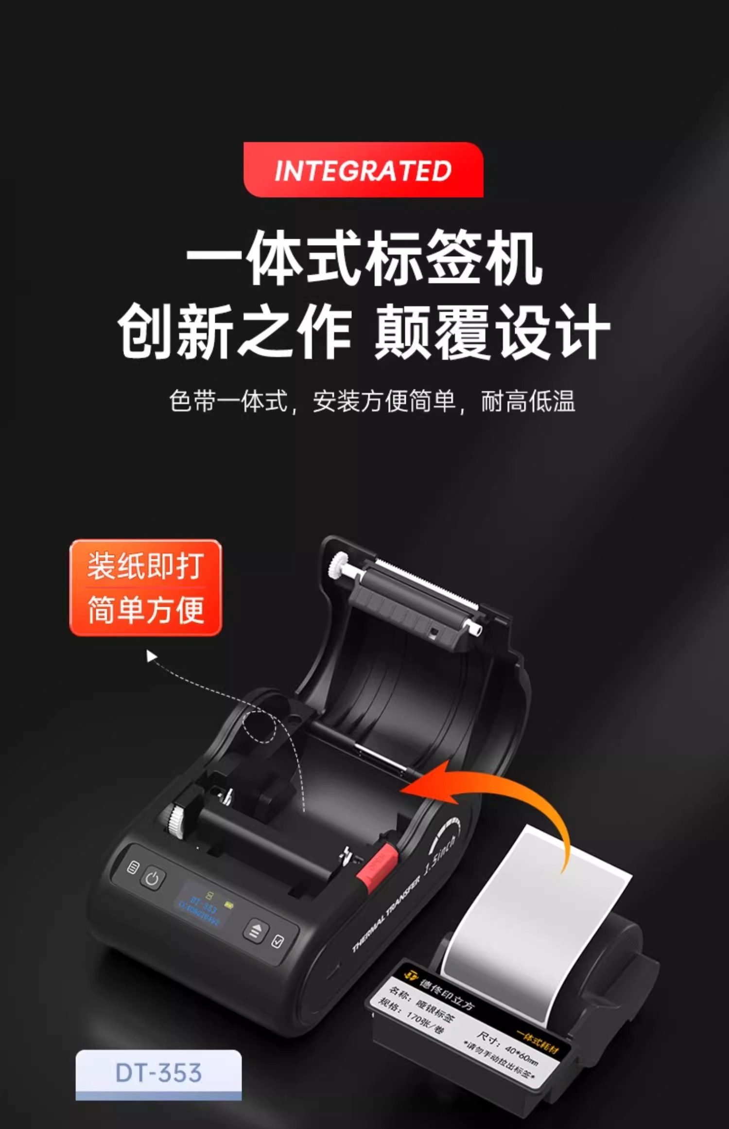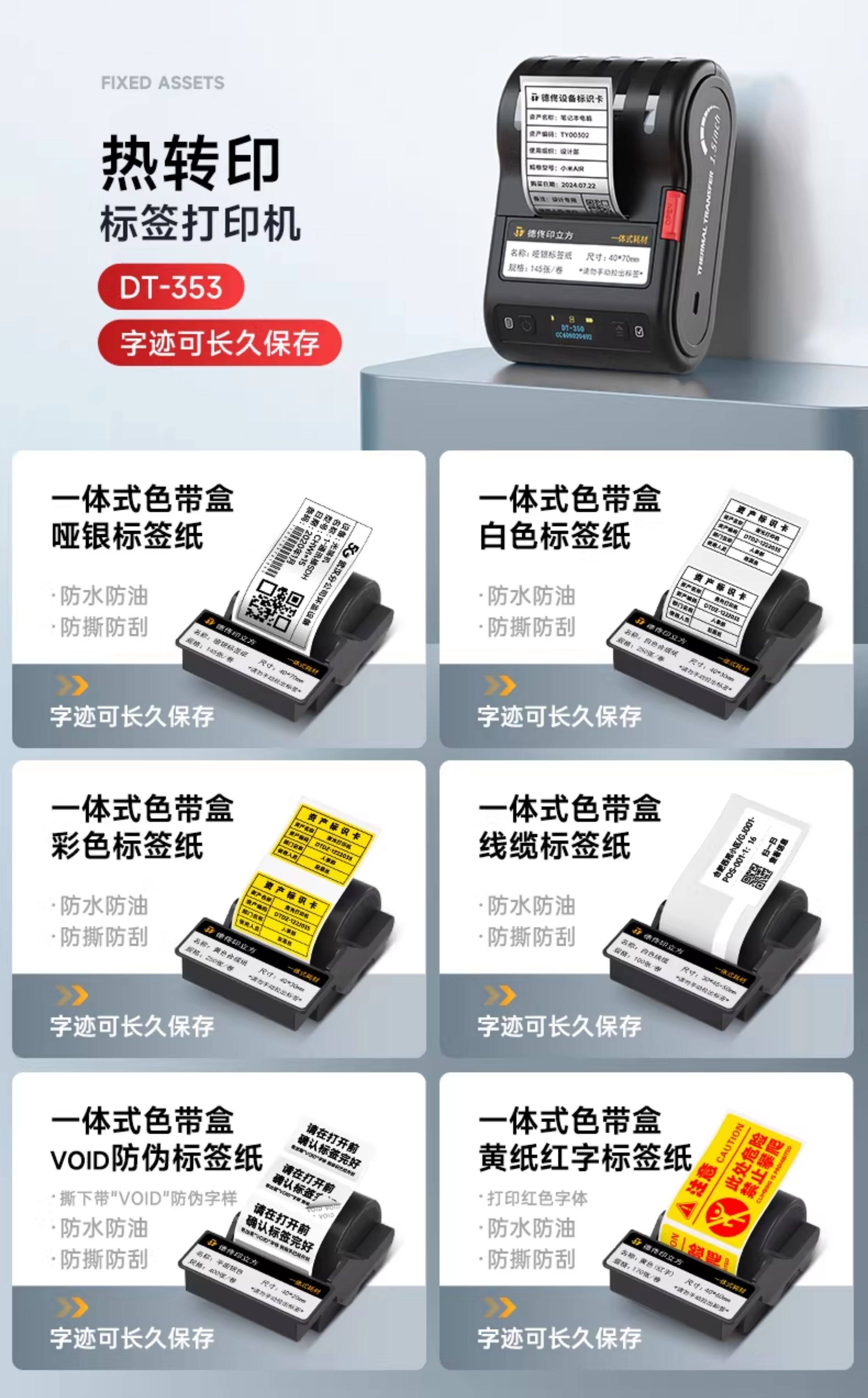 [300Dpi High-Definition Printing] Detong Office Dt-353 Thermal Transfer Label Printer Portable Bluetooth Silver Fixed Asset Adhesive Handheld Small Ribbon Matte Silver Sticker Printer