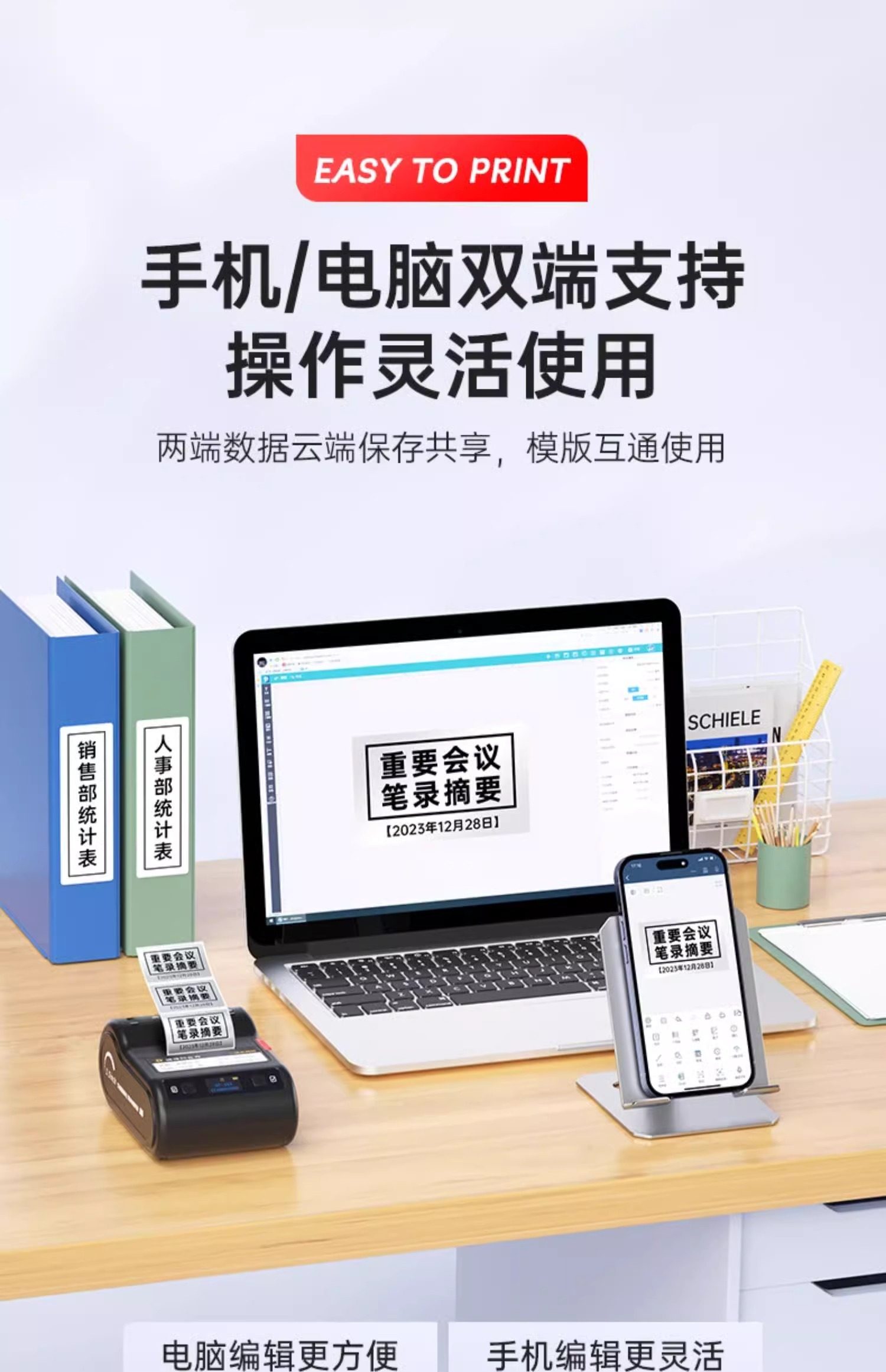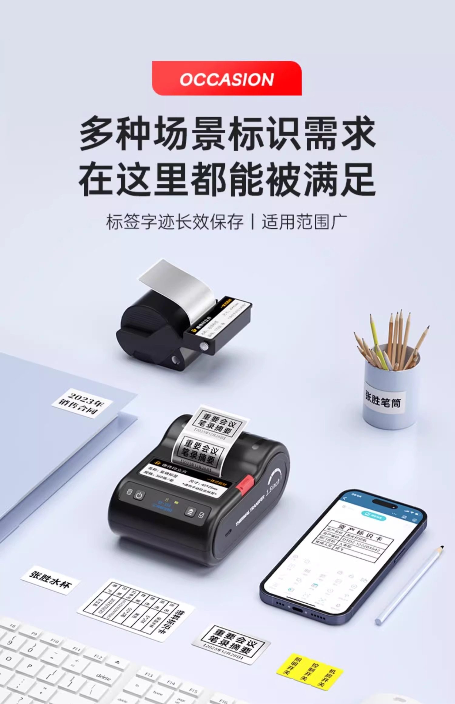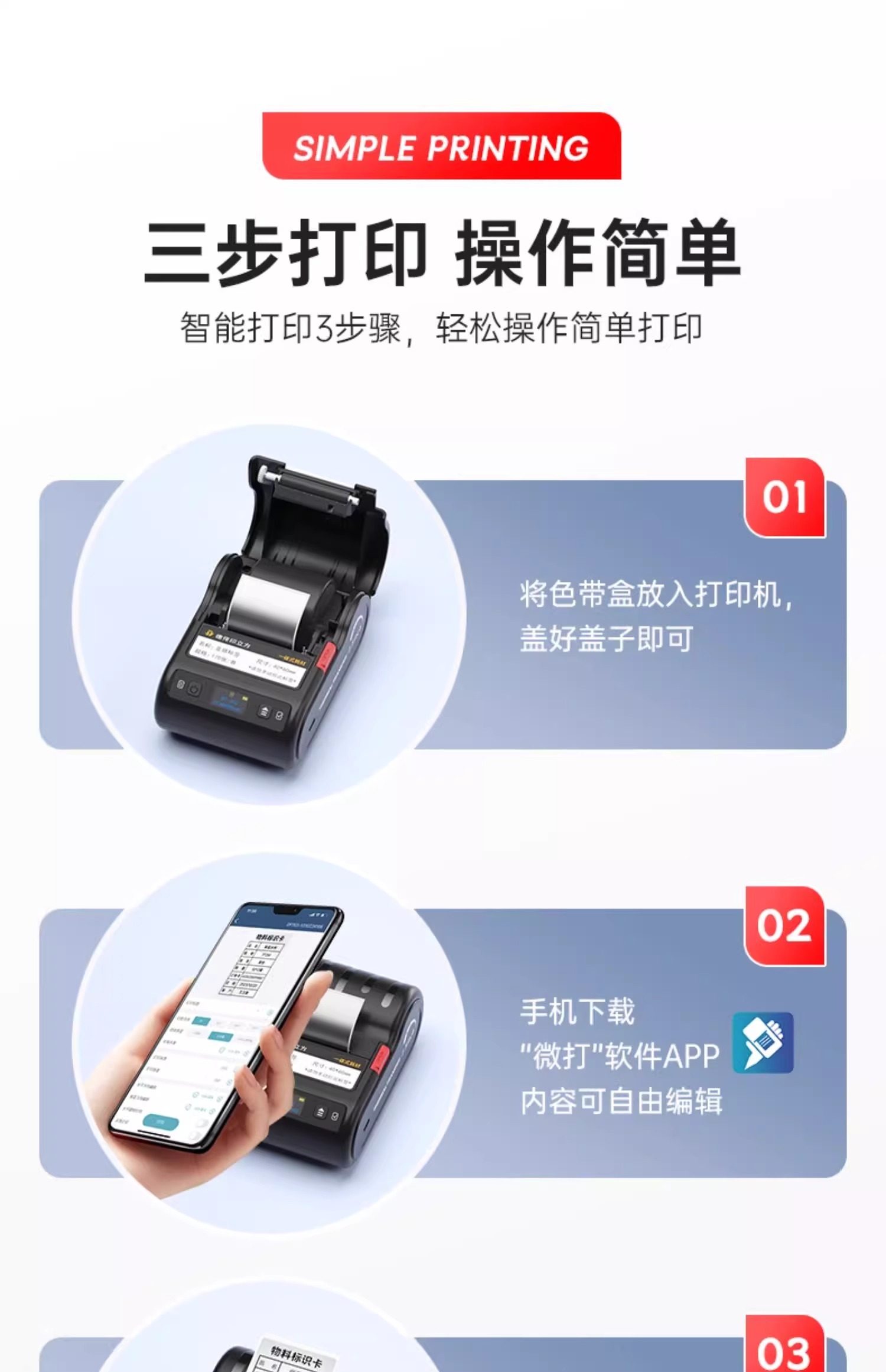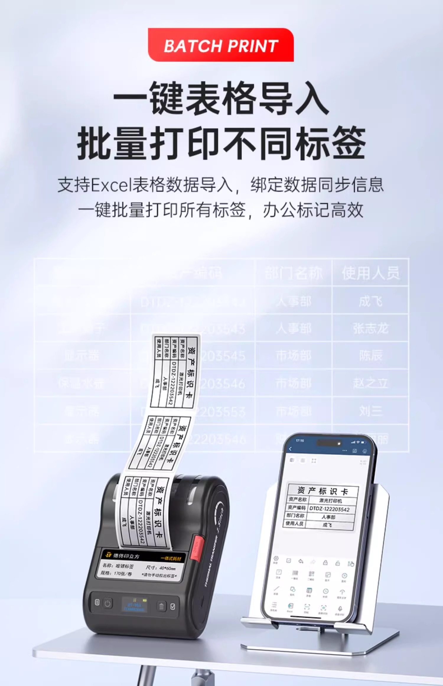 [300Dpi High-Definition Printing] Detong Office Dt-353 Thermal Transfer Label Printer Portable Bluetooth Silver Fixed Asset Adhesive Handheld Small Ribbon Matte Silver Sticker Printer