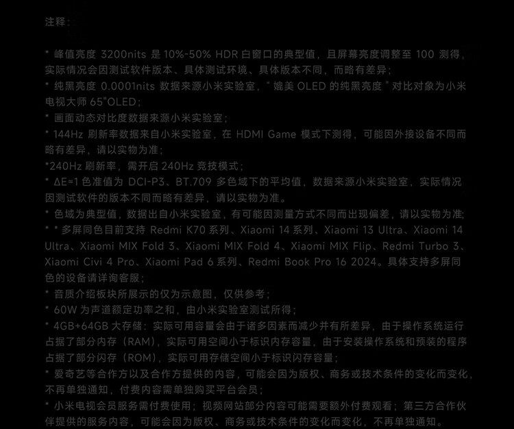 Xiaomi S Pro 85 Miniled 2025 Tv 85-Inch 2880 Level Partition 288Hz High Brush 2104