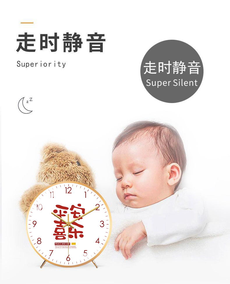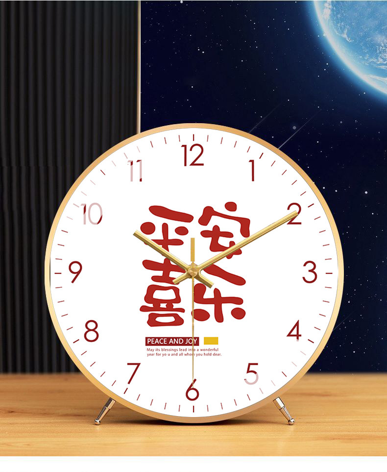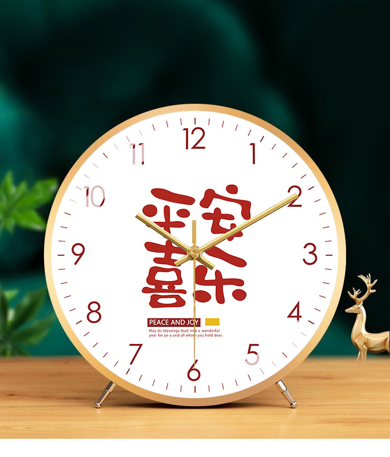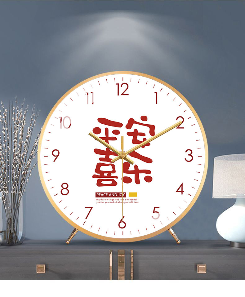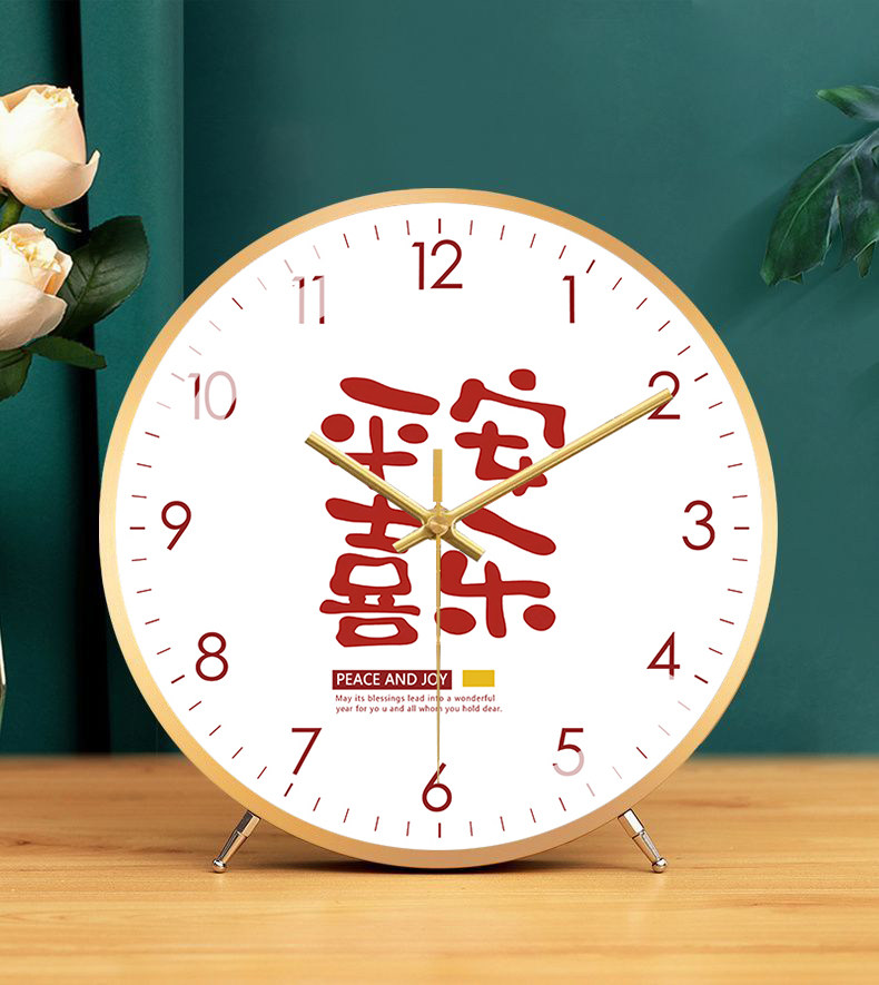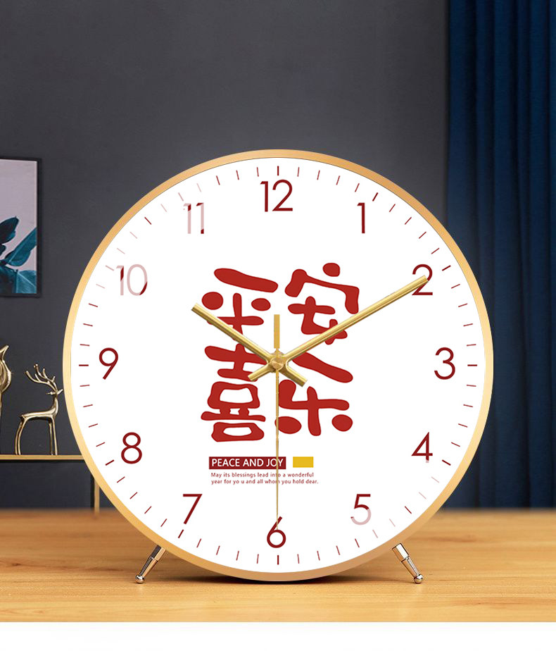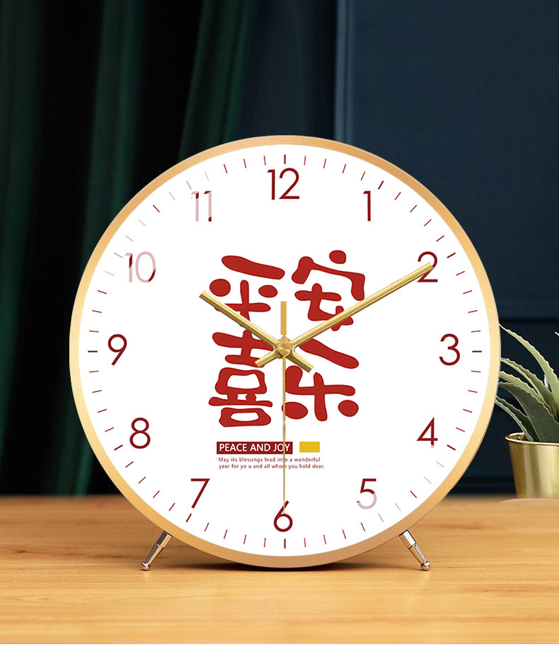 Fashionable and Creative Clock, Peace and Joy, Living Room Silent Table Clock, New Chinese Style Artistic Word Clock, Silent Model Clock