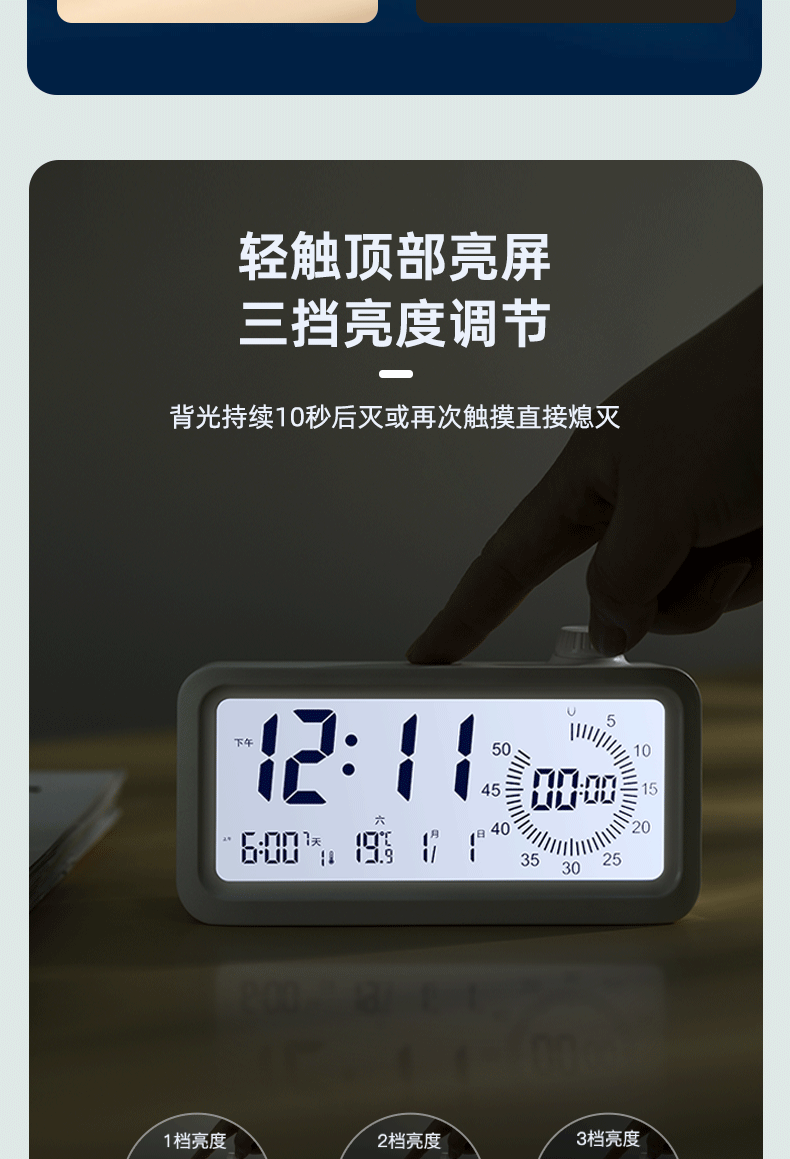 | Function | Mute,Touch Sensor,Snooze Function,Glow-In-The-Dark,With Backlight |