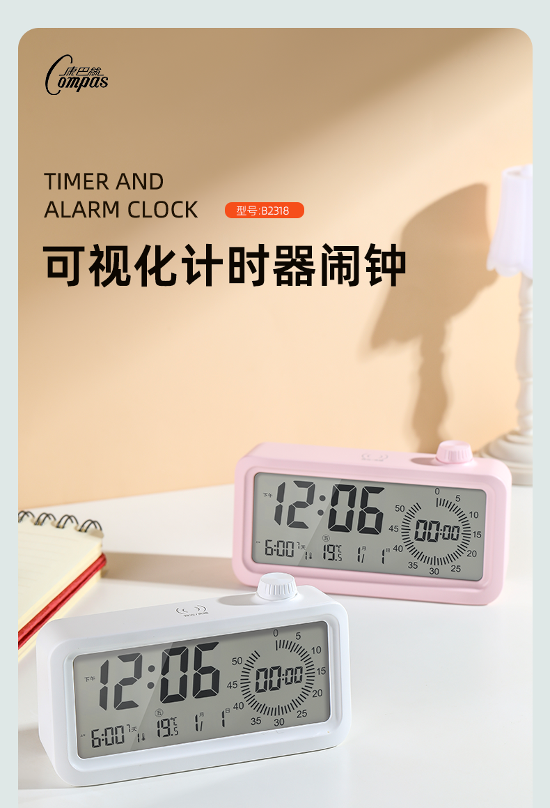 Compass Timer Alarm Clock for Children and Middle School Students, Specifically for Studying, with Visual Countdown Reminder and Timer Management