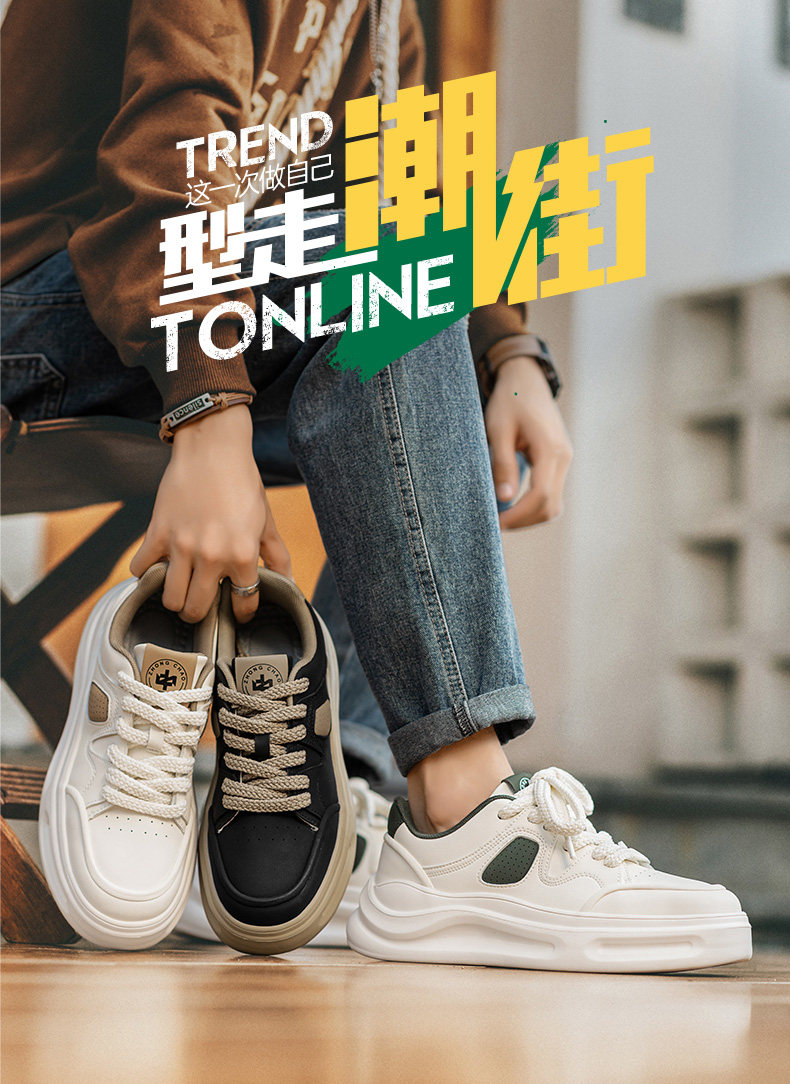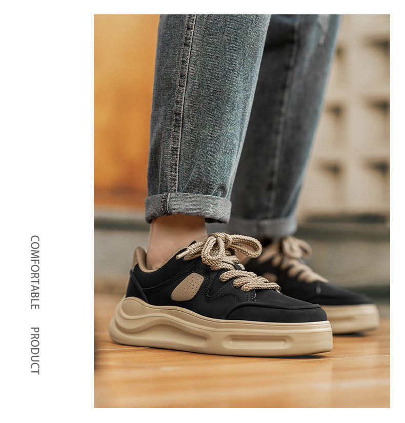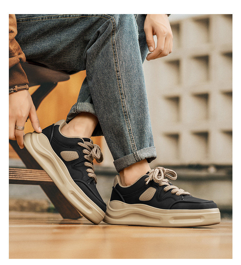 2026 New Men's Shoes, Summer Youth High-End Casual Sneakers, Soft Sole, Height-Increasing, Versatile Black Sports Trendy Shoes