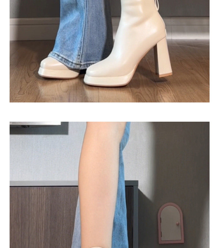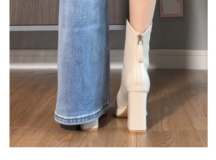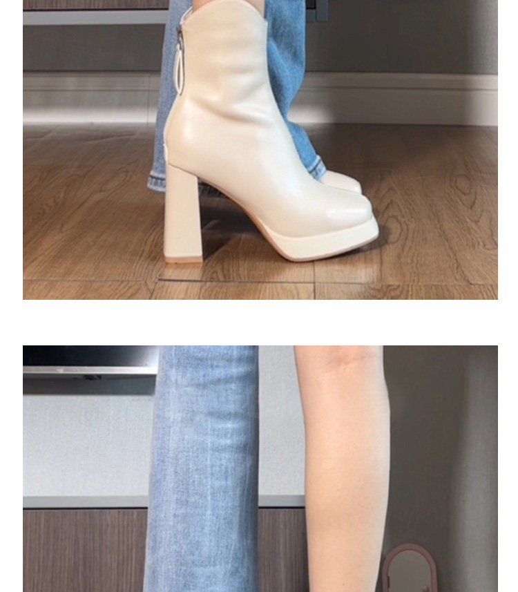 White Slim Martin Boots, Trendy Short Boots with Chunky Heels, High Heels, Thick Soles, Waterproof Platform, New Autumn and Winter Chelsea Boots for Women