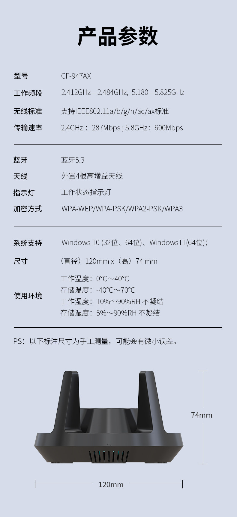 | Color Classification | High Gain Quad Antenna[Wifi6+Bluetooth 5.3] |