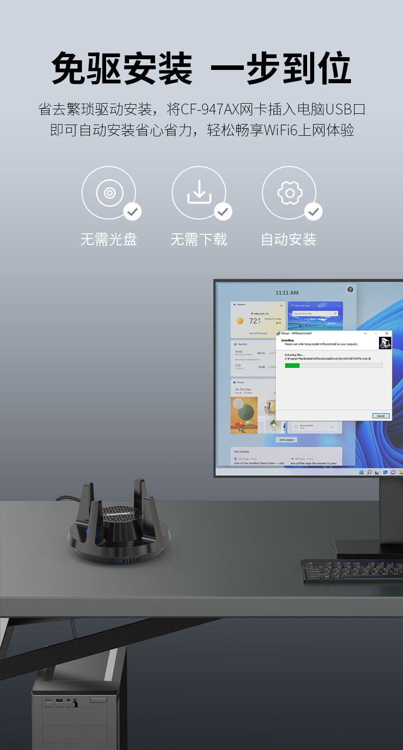 Comfast Wireless Network Card Bluetooth Wifi6 2-in-1 Driver-Free Desktop Computer Wifi Receiver Bluetooth 5.3 Dual-Band Desktop Laptop External Receiver Transmitter Cf-947Ax