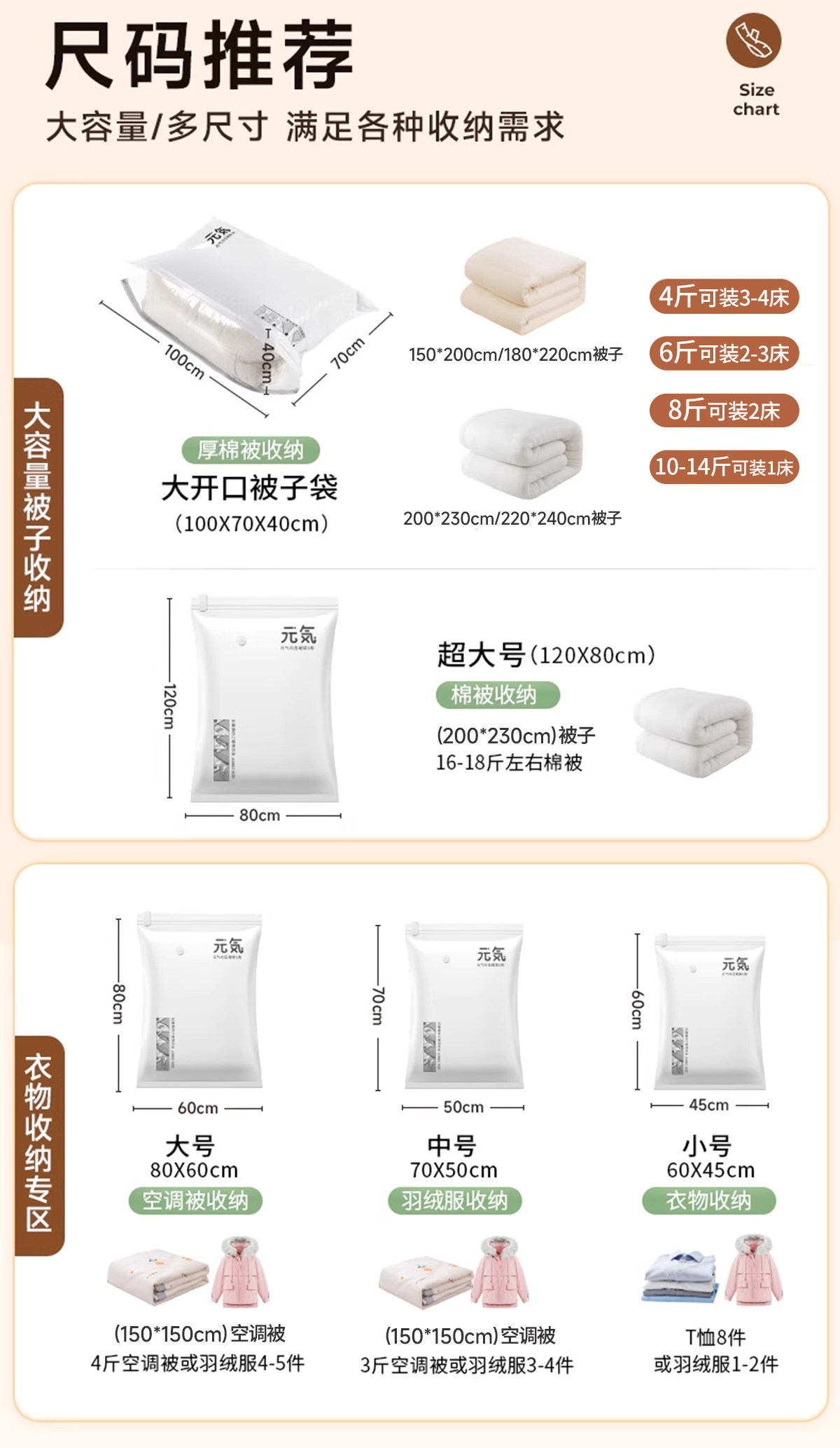 | Color Classification | 90% Purchase❤[5 Quilt Bags with Enlarged Openings]Power Pump,Hot Selling 11 Piece Set[2 Extra-Large Opening Quilt Bags + 3 Large + 3 Medium + 2 Small]Power Pump,3-5kg I Was Chosen[3 Quilt Bags with Enlarged Openings]Power Pump,6kg I Was Chosen[4 Quilt Bags with Enlarged Openings]Power Pump,9kg I Was Chosen[8 Quilt Bags with Enlarged Openings]Power Pump,Preferred for Repurchase⭐[5 Quilt Bags with Enlarged Openings]No Pumping Tool,8kg I Was Chosen[2 Extra Large]Power Pump.,10kg I Was Chosen[6 Extra Large]Power Pump.,Double Bed Linen[2 Extra-Large Opening Quilt Bags + 2 Medium + 2 Small]Power Pump,Family of Three Chooses[3 Quilt Bags with Enlarged Openings + 3 Large + 3 Medium]Power Pump,Family of Four Selection[5 Extra-Large Opening Quilt Bags + 3 Large + 3 Medium + 3 Small]Power Pump,2.5-5kg Blanket[3 Extra-Large Opening Quilt Bags + 3 Medium Sizes]Power Pump,Four-Piece Storage Set[2 Large Opening Quilt Bags + 2 Small Size]Power Pump,Family of Five Selection[6 Extra-Large Opening Quilt Bags + 5 Large + 4 Medium + 3 Small]Power Pump,Air Conditioner Is Stored[5 Large Sizes]Power Pump.,Bed Sheet and Quilt Storage[2 Medium + 2 Small]Power Pump,Quilt and Clothing Storage[4 Large-Opening Quilt Bags + 2 Small Ones]Power Pump,Quilt and Pillow Storage[4 Extra-Large Opening Quilt Bags + 2 Medium Sizes]Power Pump,Special Storage for Clothes[1 Large + 2 Medium + 3 Small]Power Pump.,Special Storage for Pillows[2 Large + 2 Medium + 2 Small]Power Pump.,Down Jacket Storage[5 Medium + 5 Small]Power Pump. |