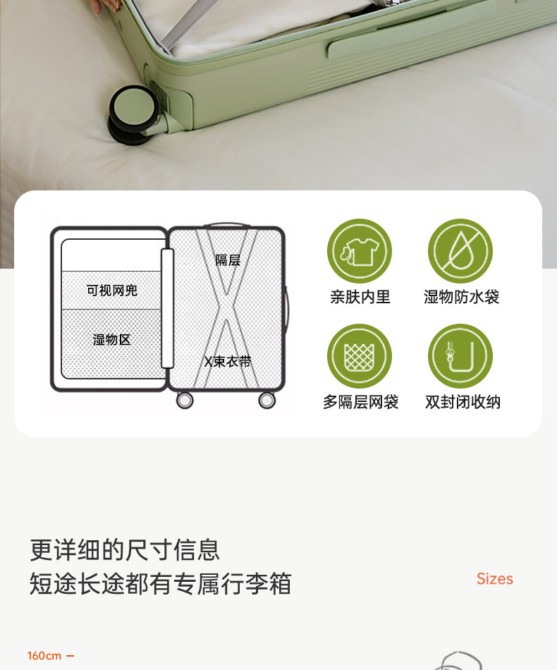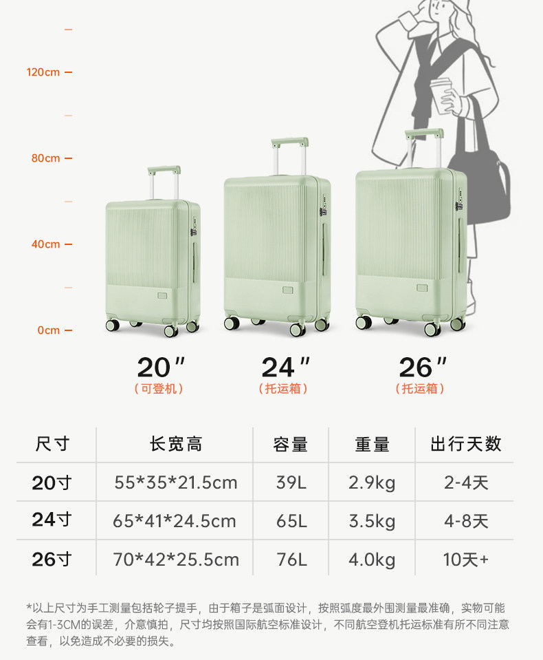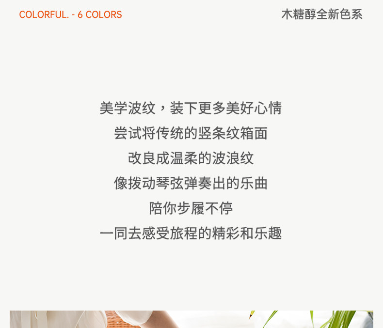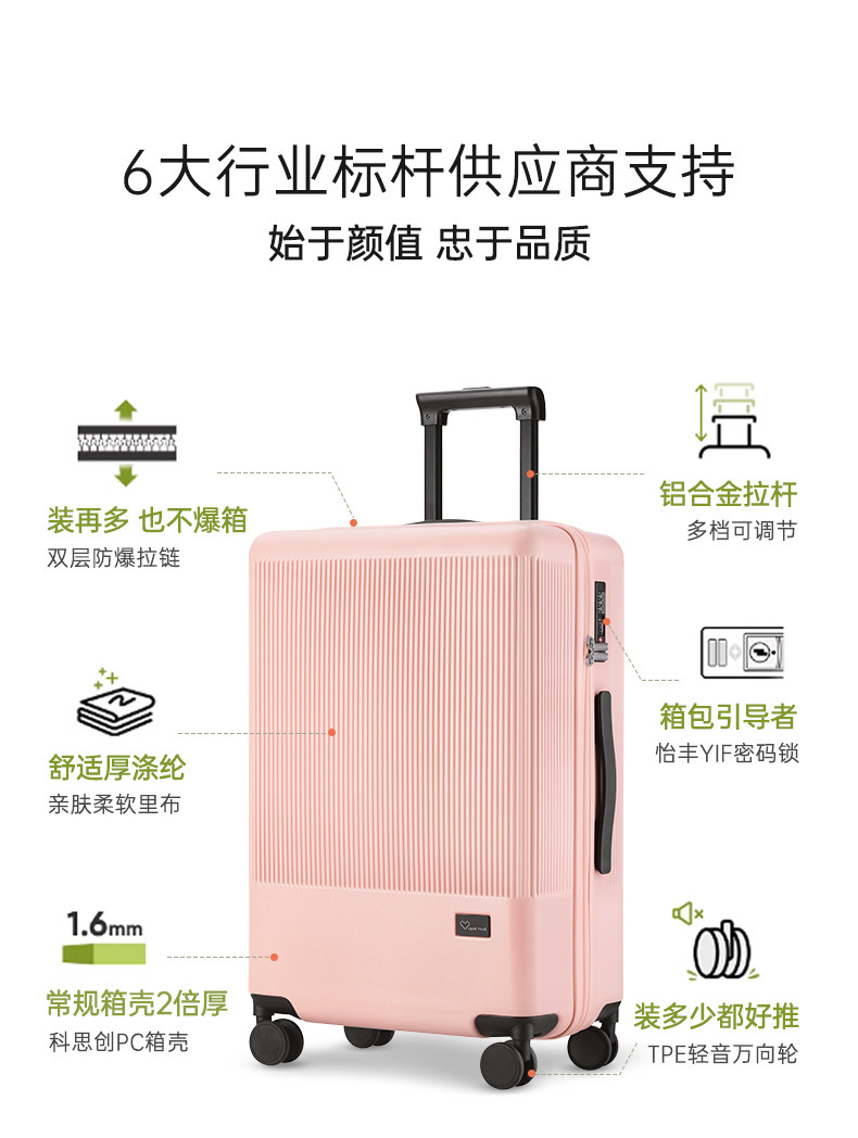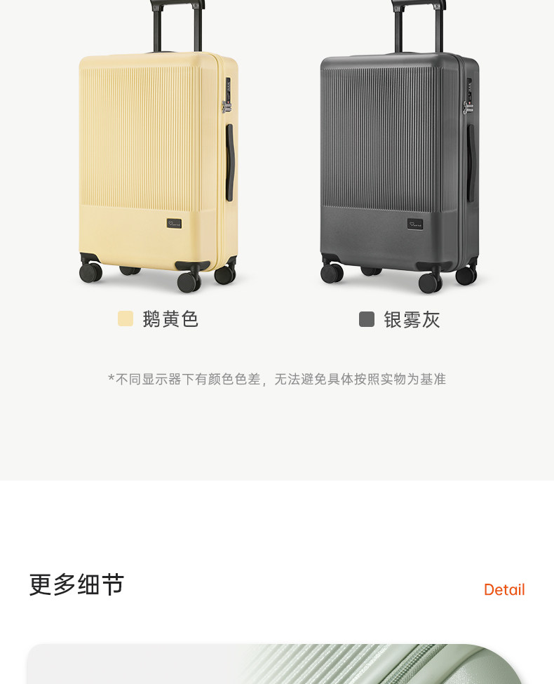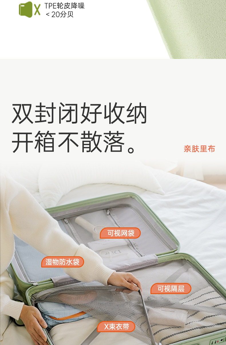 | Color Classification | Gray Green[Double-Layer Explosion-Proof Zipper + Double-Closed Lining + Light Wheel],Milk Pink[Double-Layer Explosion-Proof Zipper + Double-Closed Lining + Light Wheel],Jade White[Double-Layer Explosion-Proof Zipper + Double-Closed Lining + Light Wheel],Papaya Orange (Limited Color)[Double-Layer Explosion-Proof Zipper + Double-Closed Lining + Light Wheel],Goose Yellow[Double-Layer Explosion-Proof Zipper + Double-Closed Lining + Light Wheel],Silver Mist Gray[Double-Layer Explosion-Proof Zipper + Double-Closed Lining + Light Wheel] |