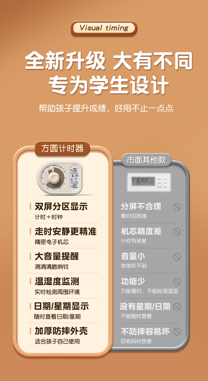 Timess Timer Is a Self-Discipline Tool for Primary School Students, a Special Time Manager for Learning, a Silent Timer with Countdown Function