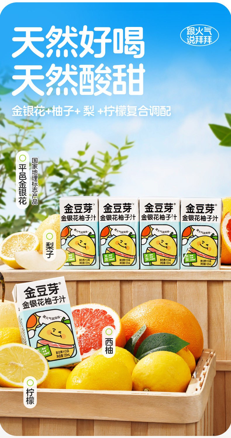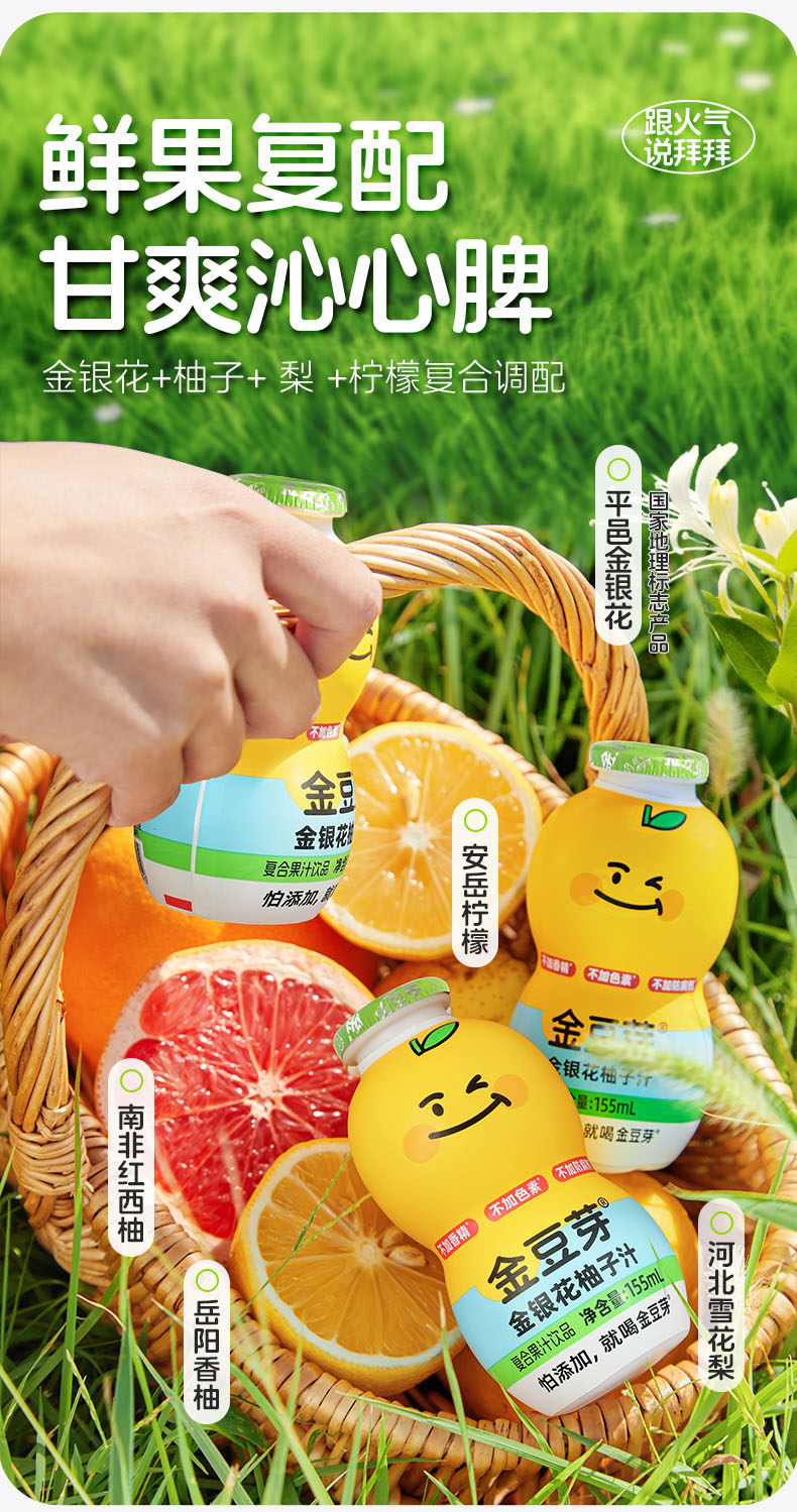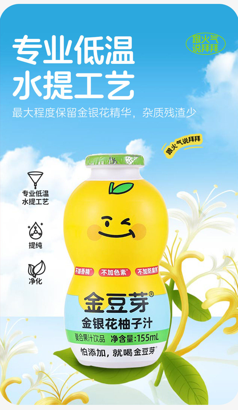 Golden Bean Sprouts Honeysuckle Pomelo Juice Tea 155Ml/Bottle Beverage Gourd Bottle Children's Portable Sharing Pack Drink