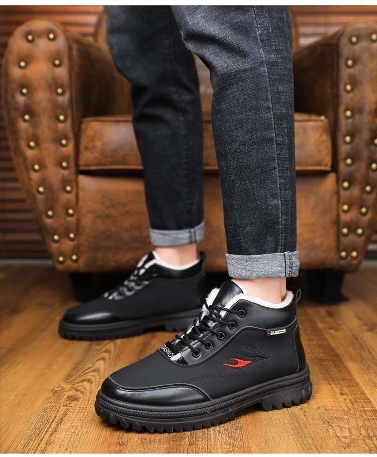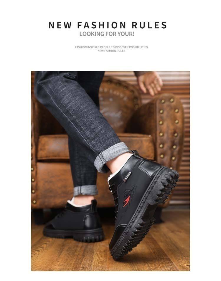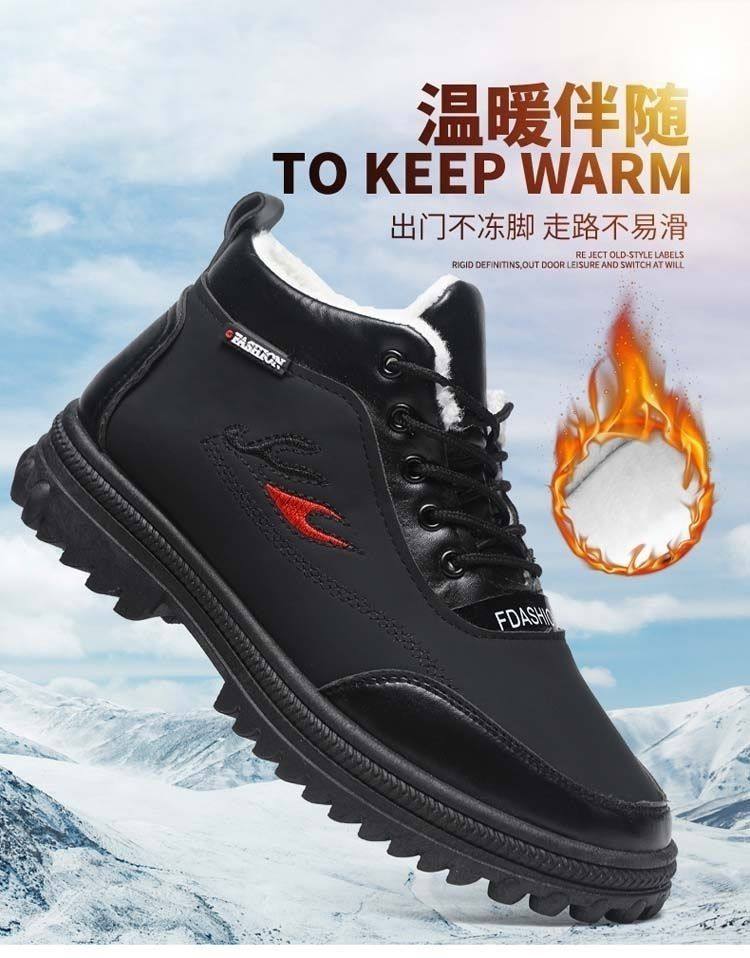 Paulalding Clearance Winter Men's Cotton Shoes Fleece-Lined Thickeneded Cold-Proof Warm High-Top Dad Shoes Snow Boots for Men