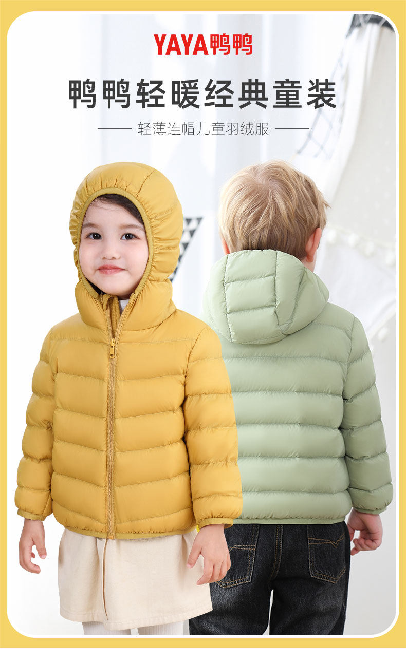 Ducky Children's down Jacket, Hooded, Short, Lightweight Coat for Boys and Girls, Small and Medium-Sized Children's Clothing, Yaya Inner Lining 90% Duck down