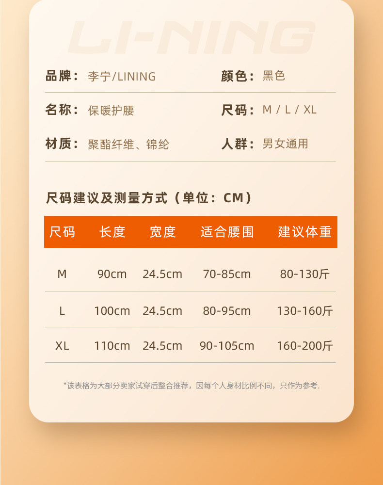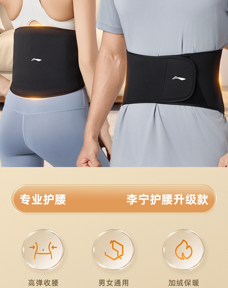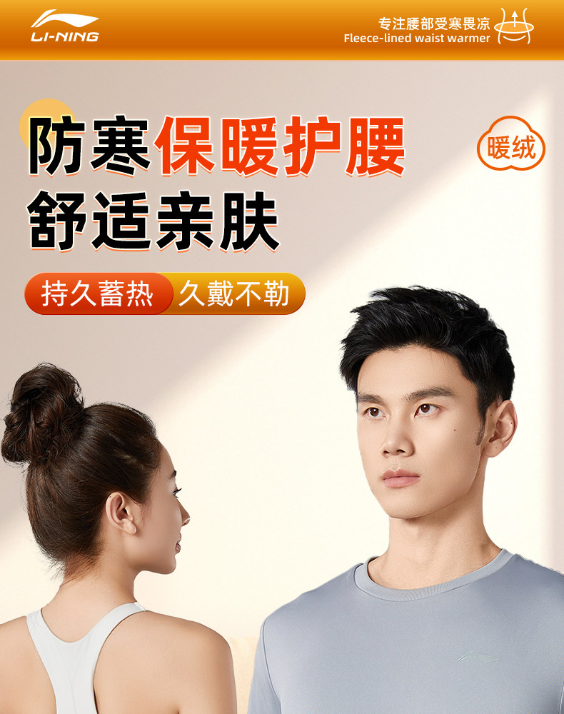 Li-Ning Thermal Waist Protector to Prevent Colds, Men's Special Autumn and Winter Belly Protector, Fleece-Lined and Thickened, Abdominal Warming Sports Belt