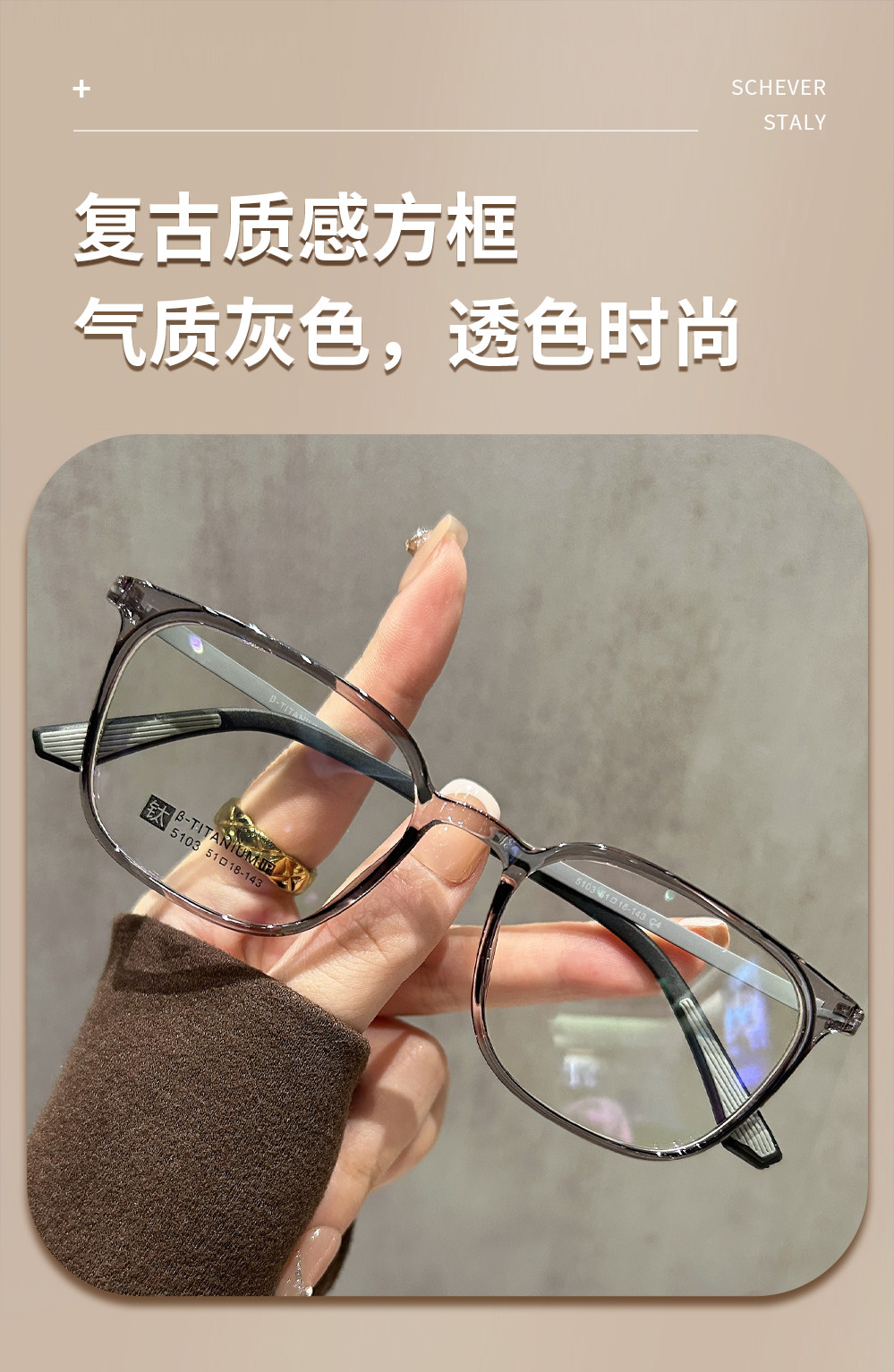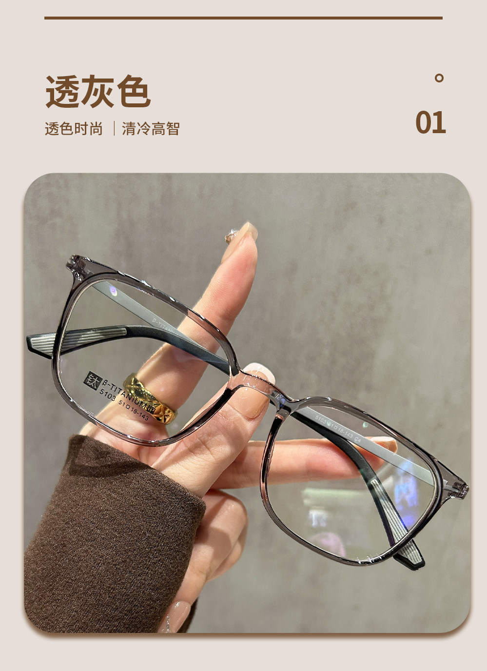 Transparent Gray Ultra-Light 10g Titanium Eyeglass Frames for Men, Suitable for Prescription Lenses, High-End Retro Square Frames