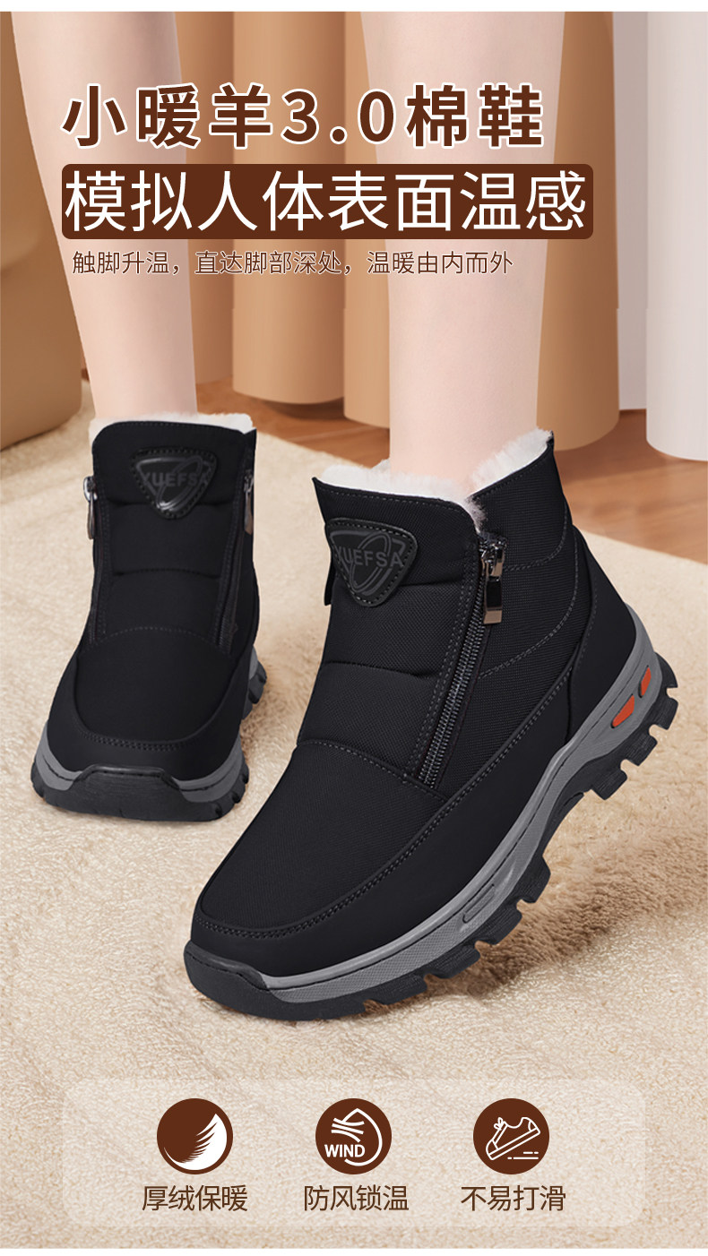 Old Beijing Cotton Shoes for Women, Winter Fleece-Lined, Thickened, Warm, Non-Slip, Comfortable Snow Boots for Mothers, Elderly Women, and Grandmothers