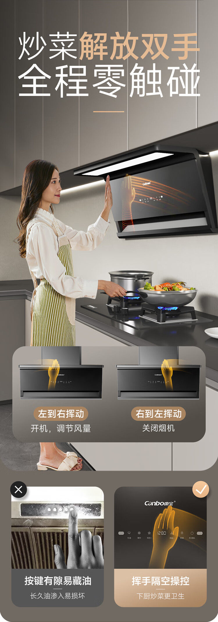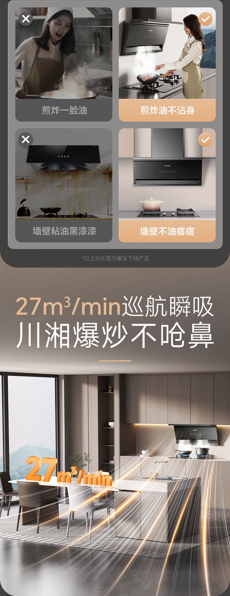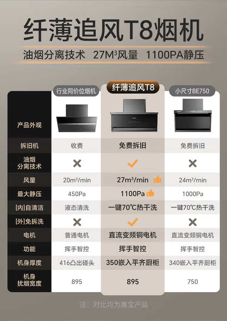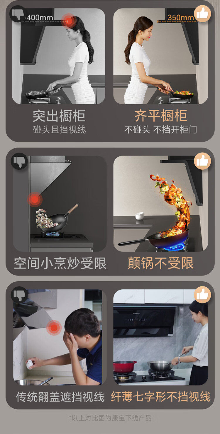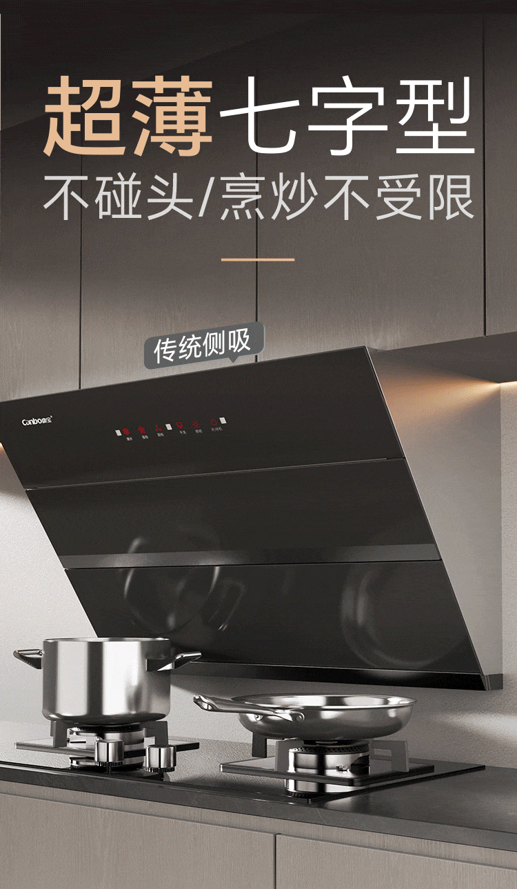 Kangbao T8 Ultra-Thin Variable Frequency Range Hood for Home Kitchen, Large Suction, Self-Cleaning, 7-Shaped, Can Be Used with Gas Stoves
