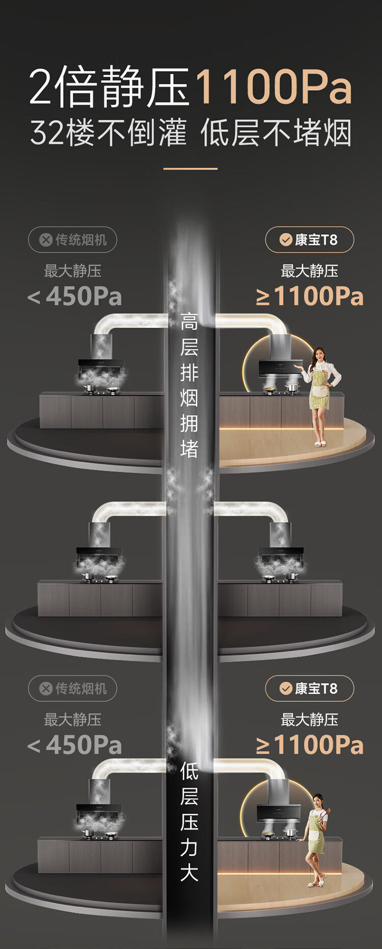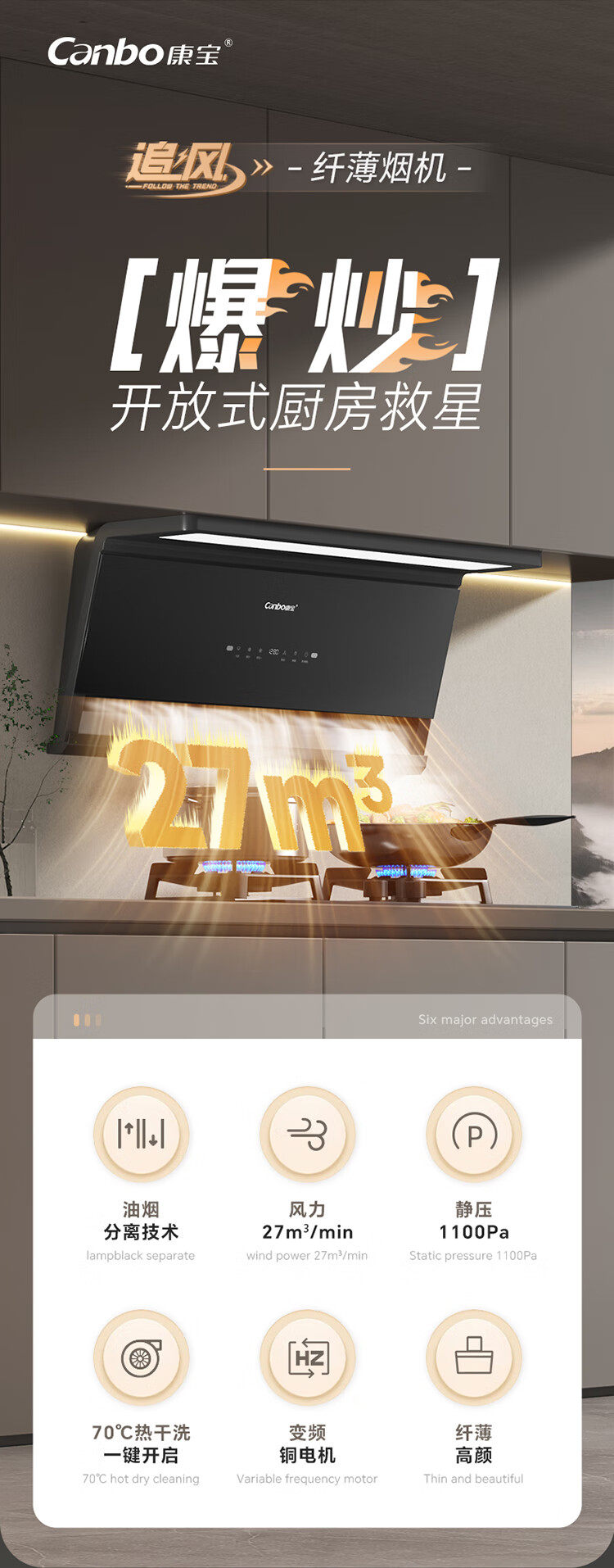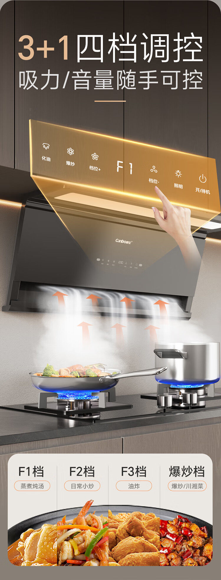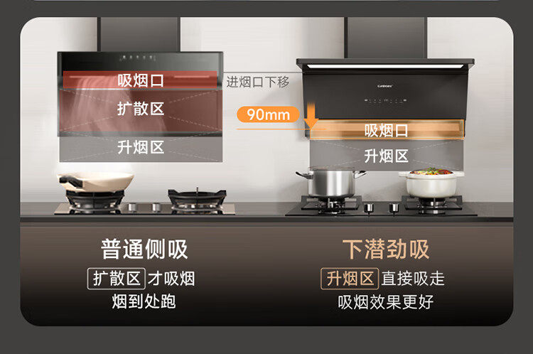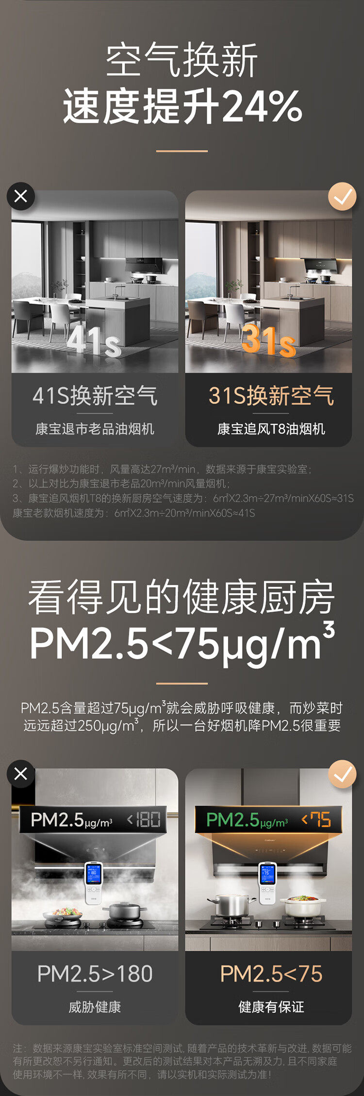Kangbao T8 Ultra-Thin Variable Frequency Range Hood for Home Kitchen, Large Suction, Self-Cleaning, 7-Shaped, Can Be Used with Gas Stoves