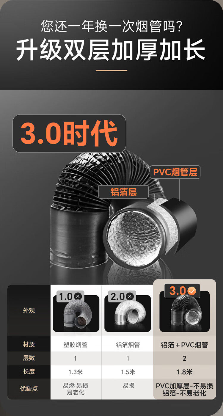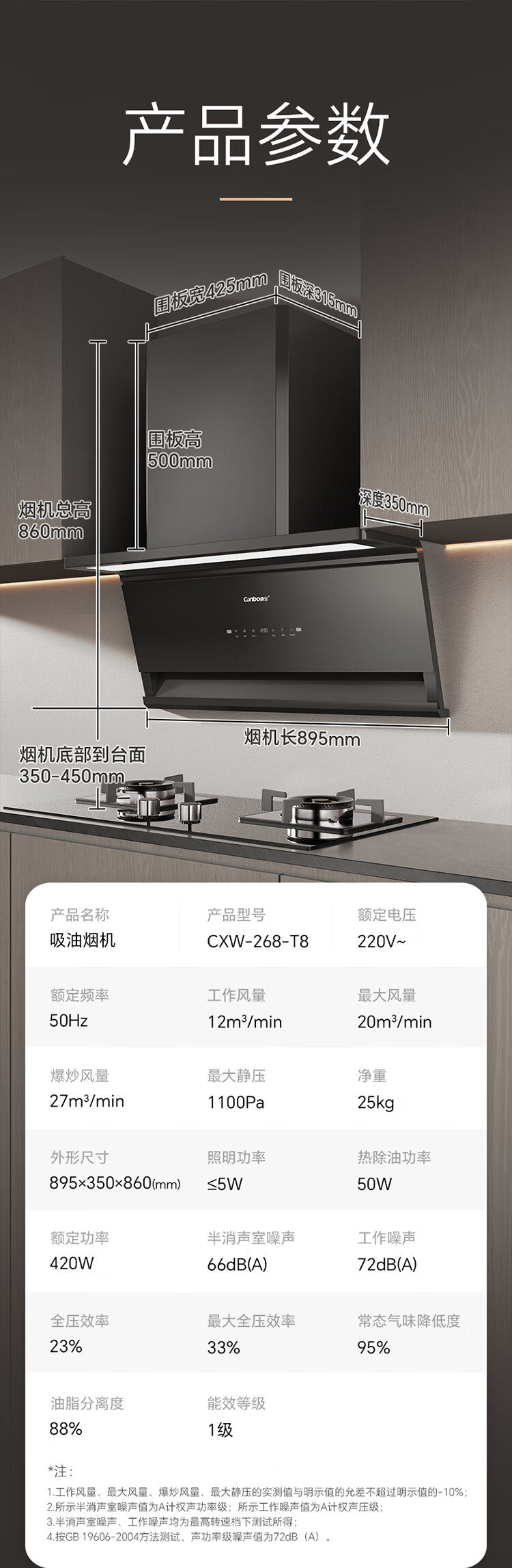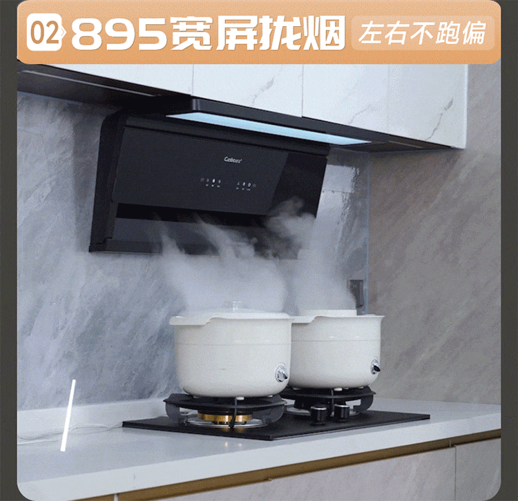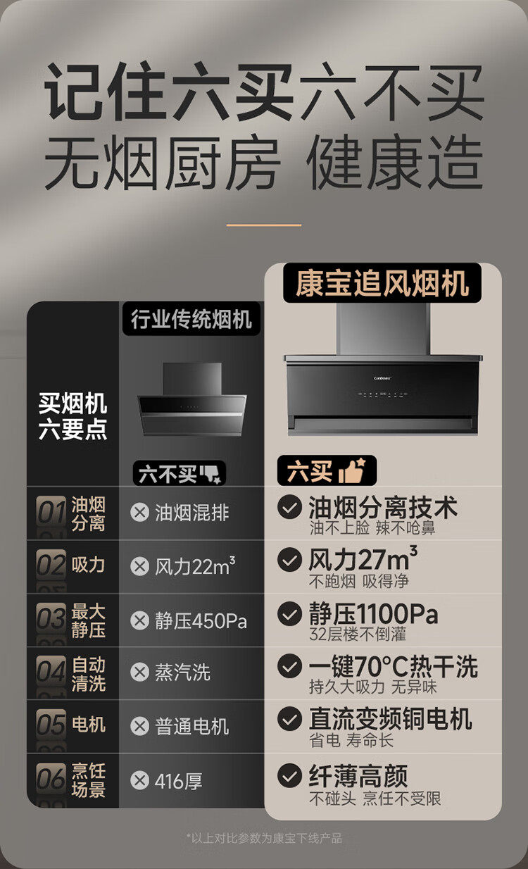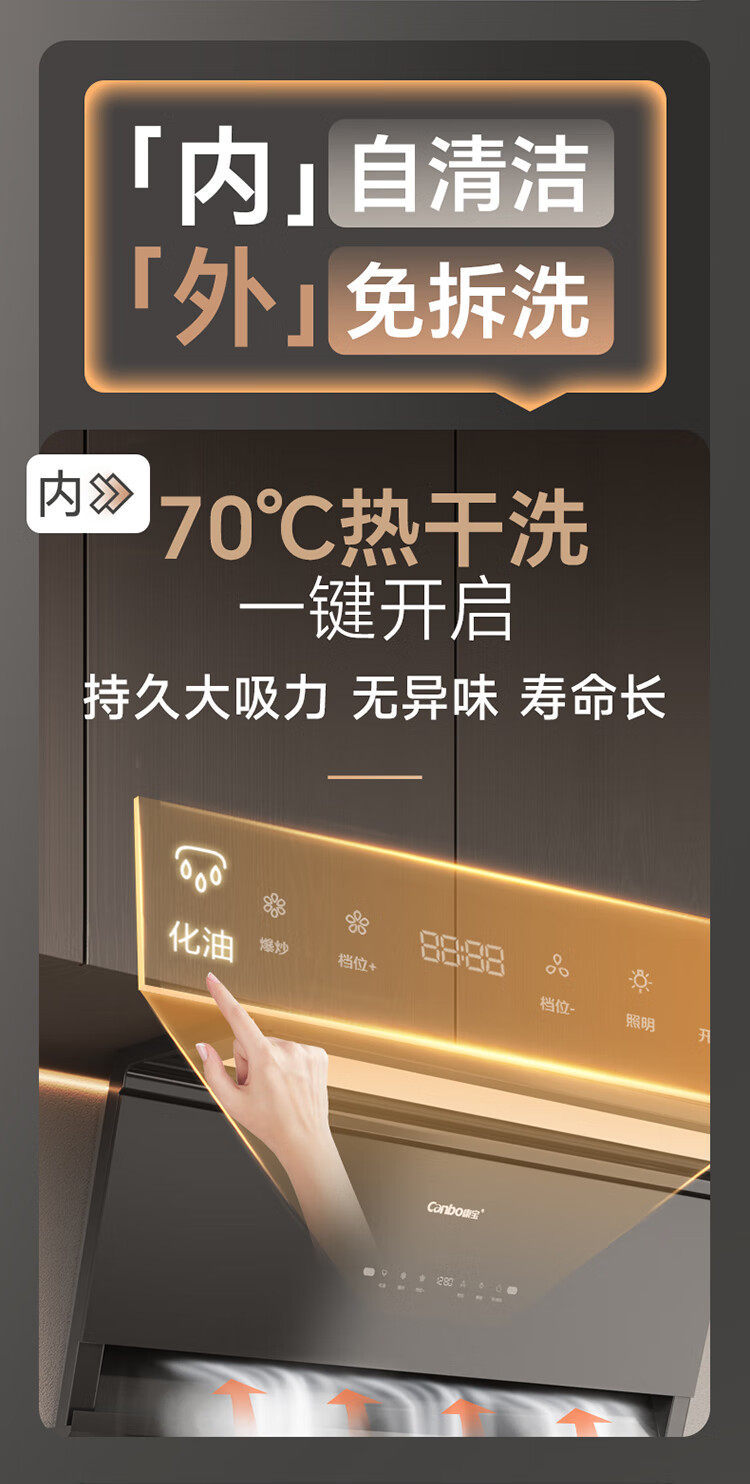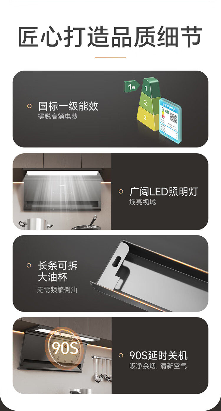 Kangbao T8 Ultra-Thin Variable Frequency Range Hood for Home Kitchen, Large Suction, Self-Cleaning, 7-Shaped, Can Be Used with Gas Stoves