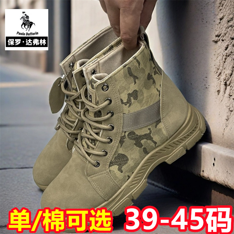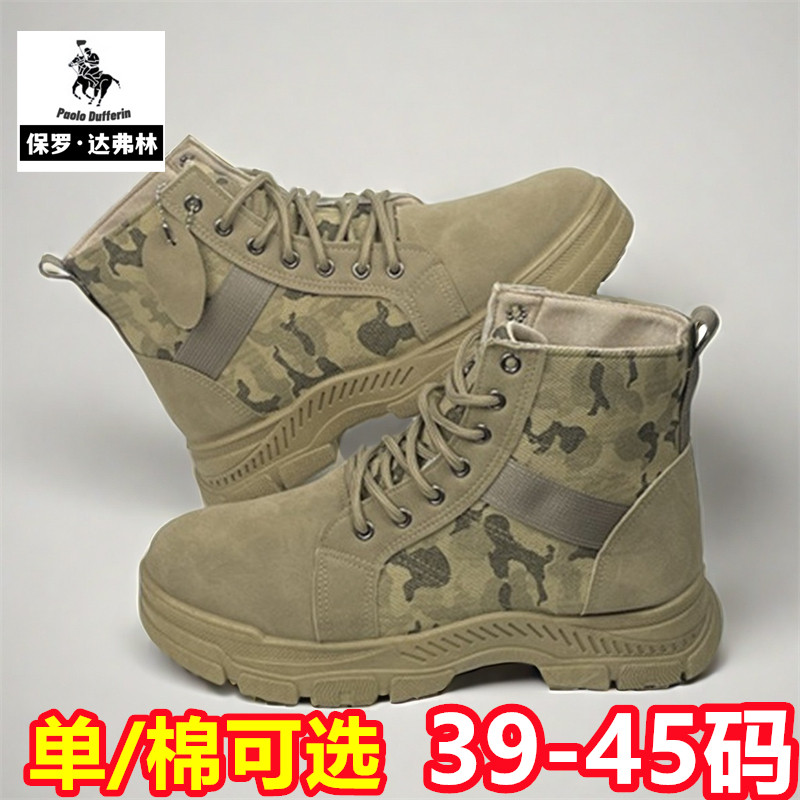 Paul Daflyn Martin Boots Men's Cotton Shoes Work Boots Yellow Boots Men's Shoes Autumn and Winter Fleece-Lined Warm Snow Boots Men