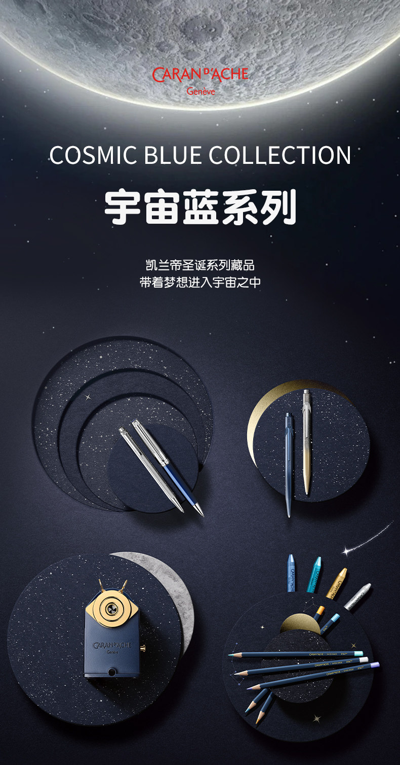 Caran D'Ache Christmas Limited Edition Cosmic Blue Series Swiss Imported 849 Ballpoint Pen Signature Pen for Men and Women Students Writing Practice Pen Gift for Teachers High-End Gift Box