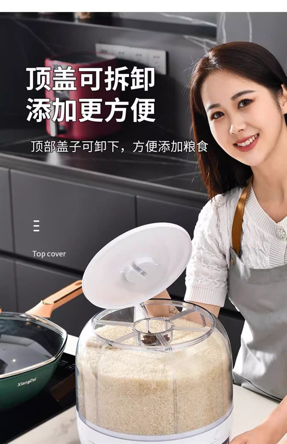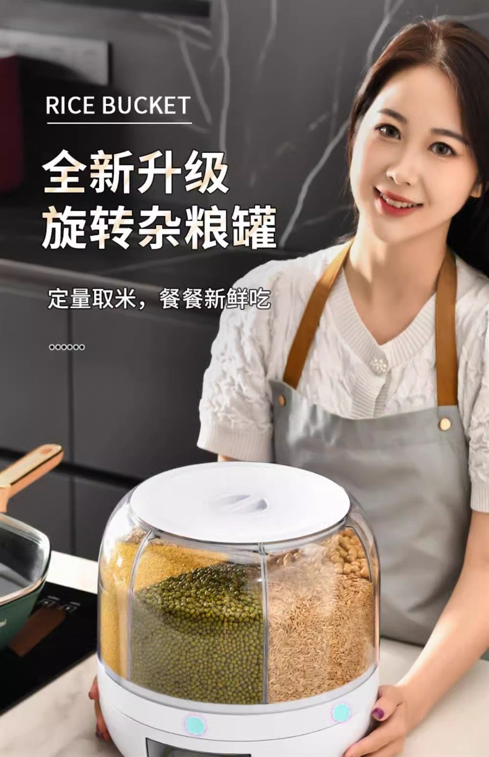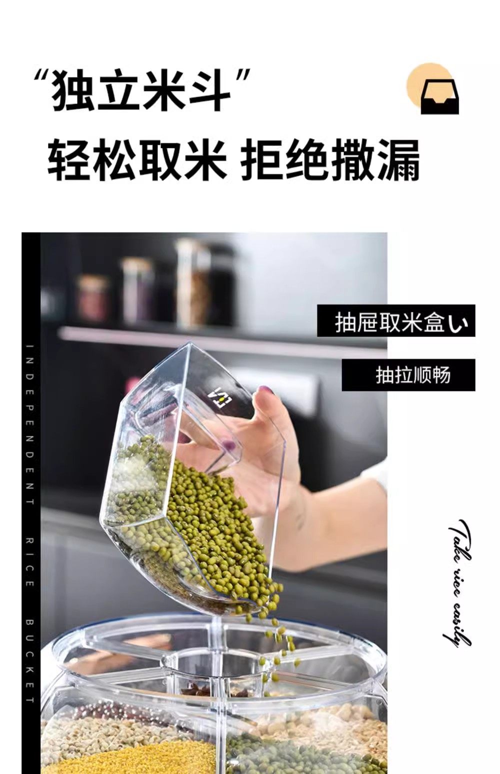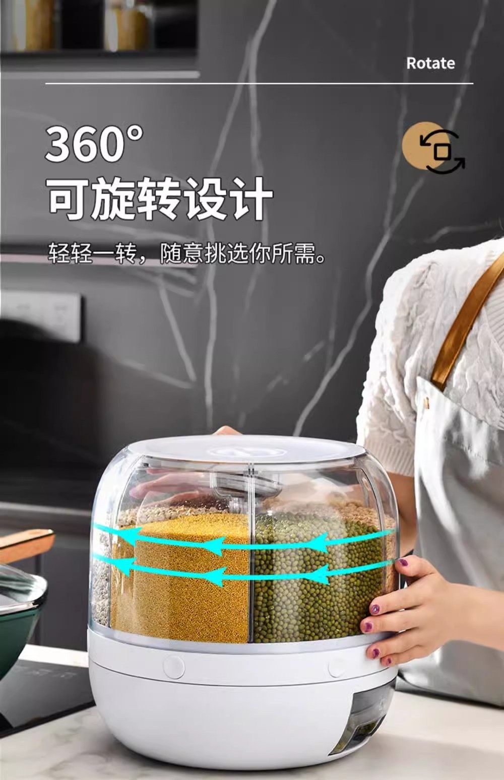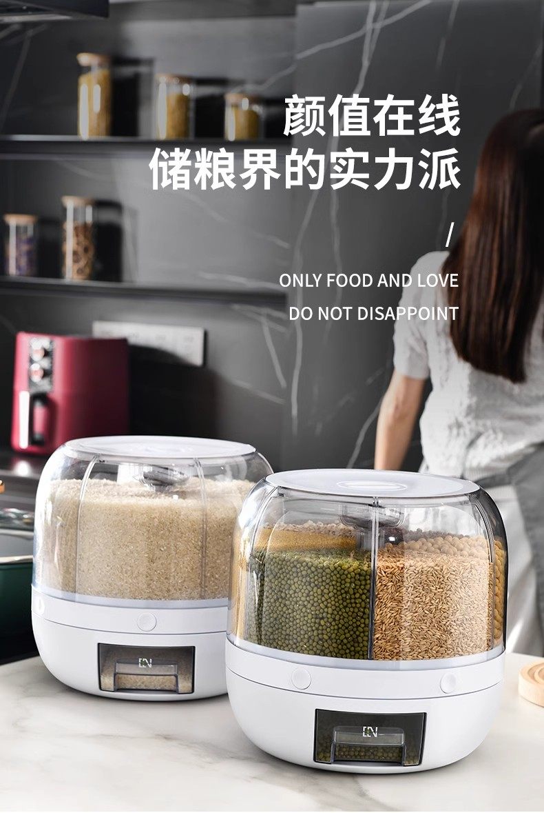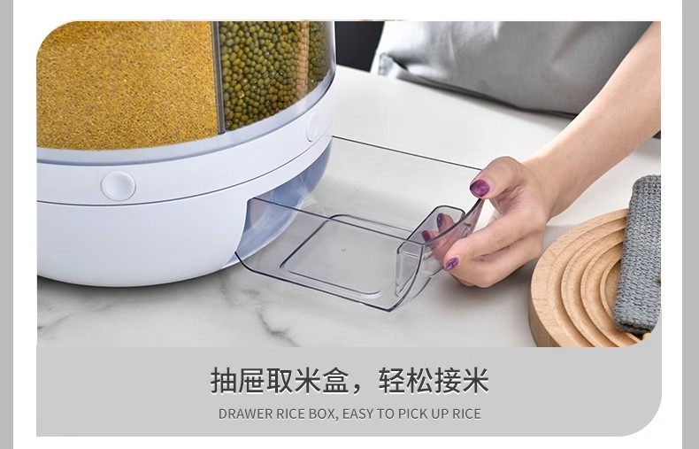 Germany丨Grains storage box rice bucket household insect-proof and moisture-proof sealed rotating separated rice cylinder storage tank