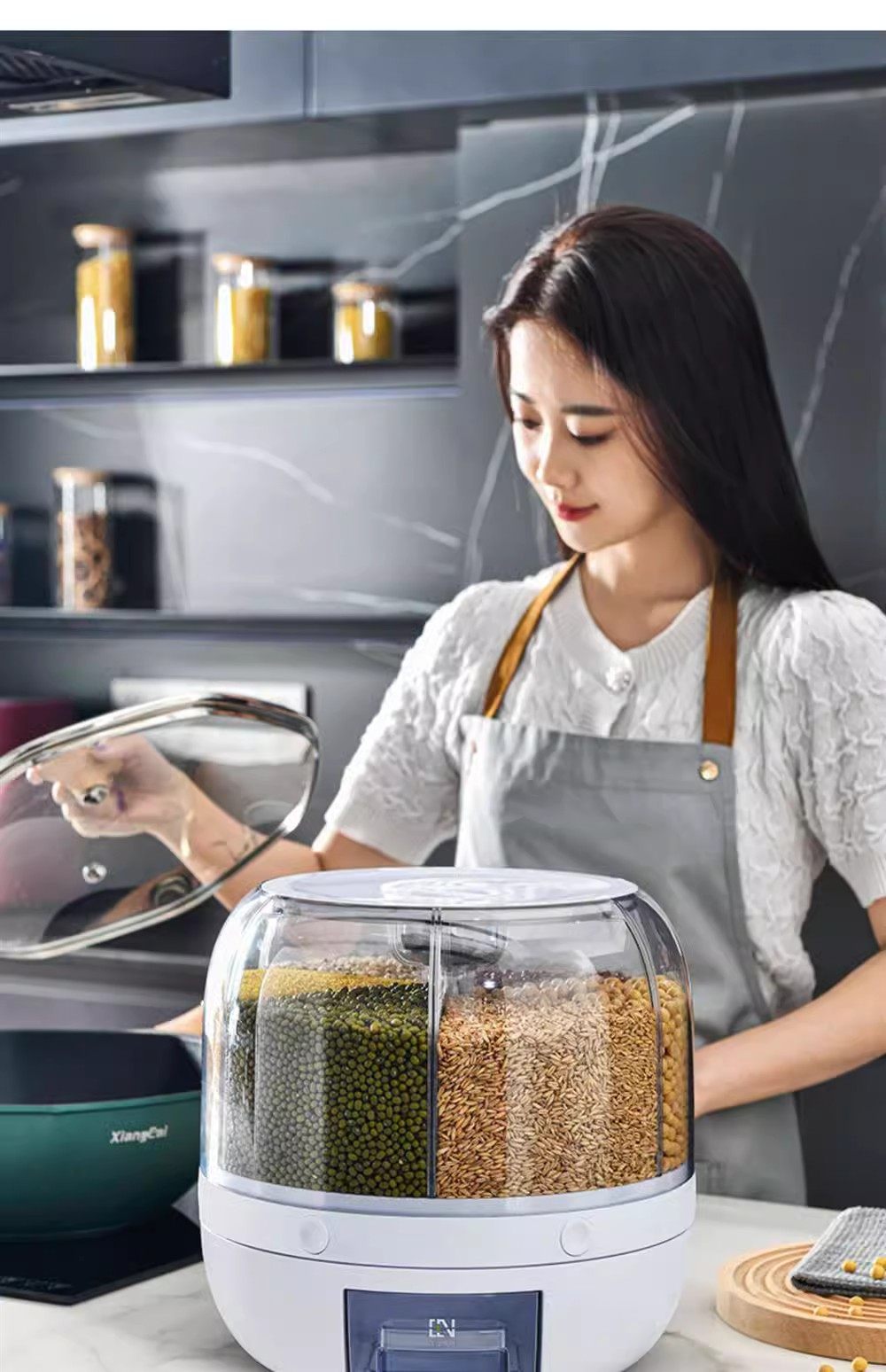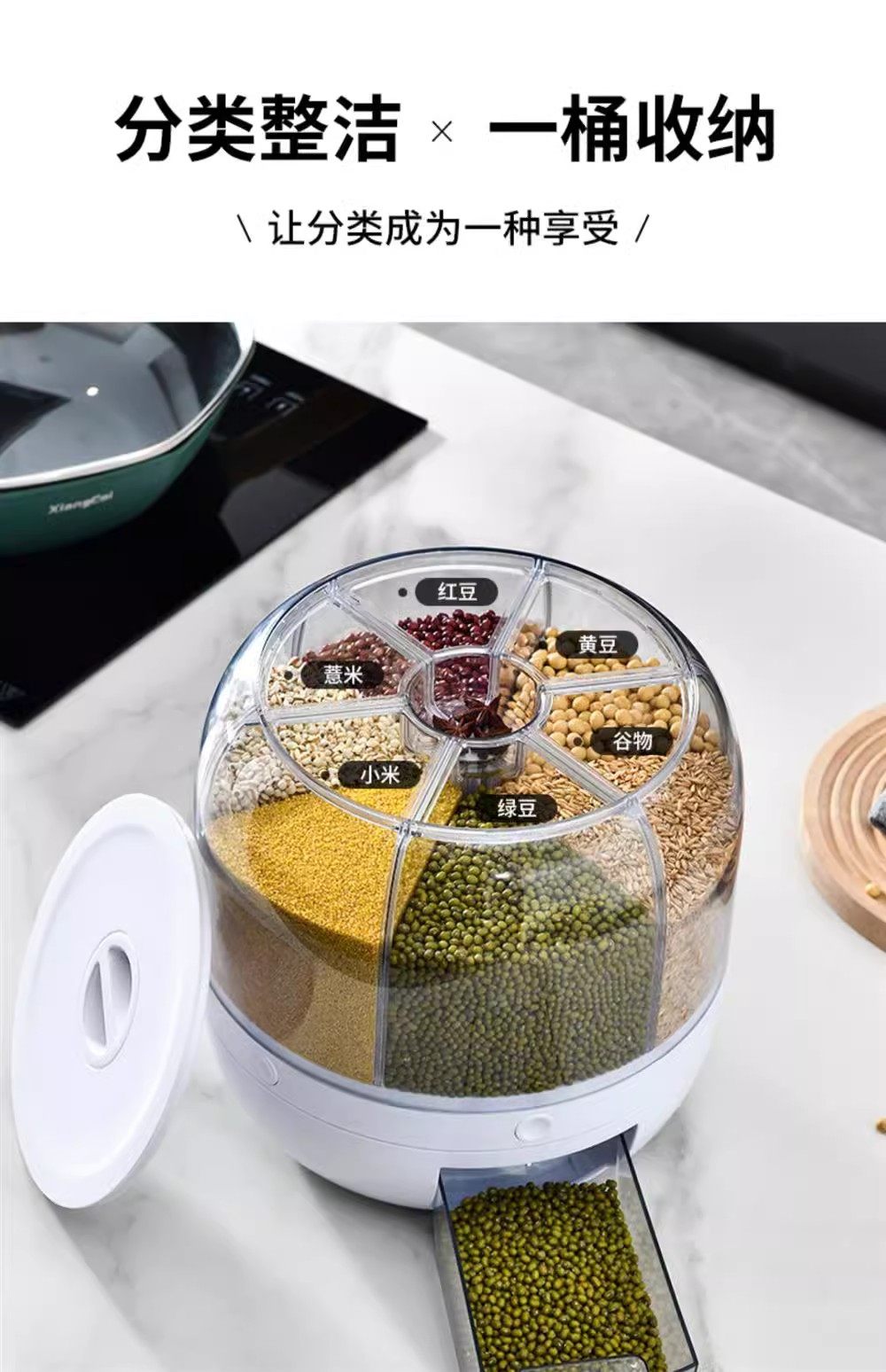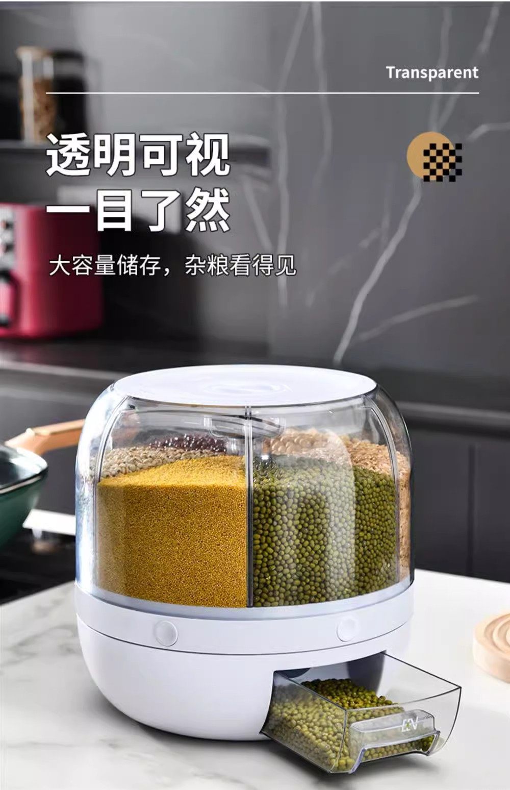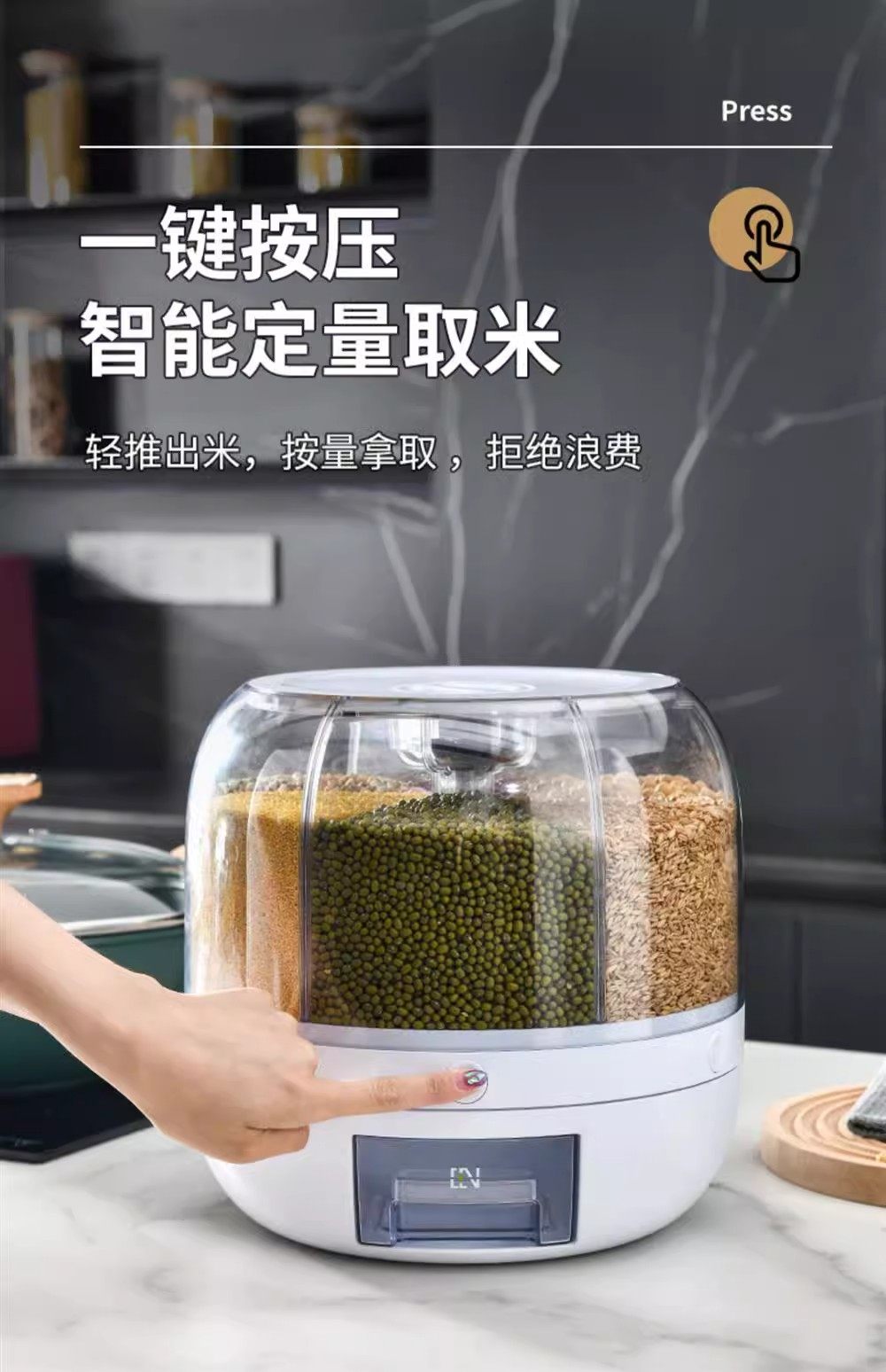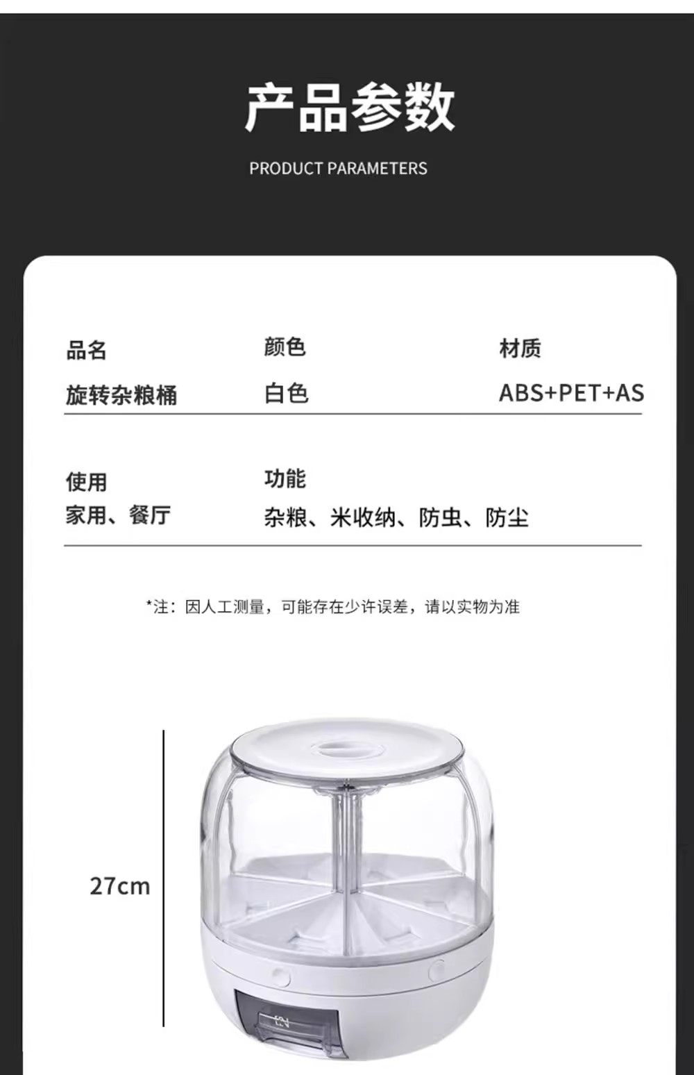 Germany丨Grains storage box rice bucket household insect-proof and moisture-proof sealed rotating separated rice cylinder storage tank