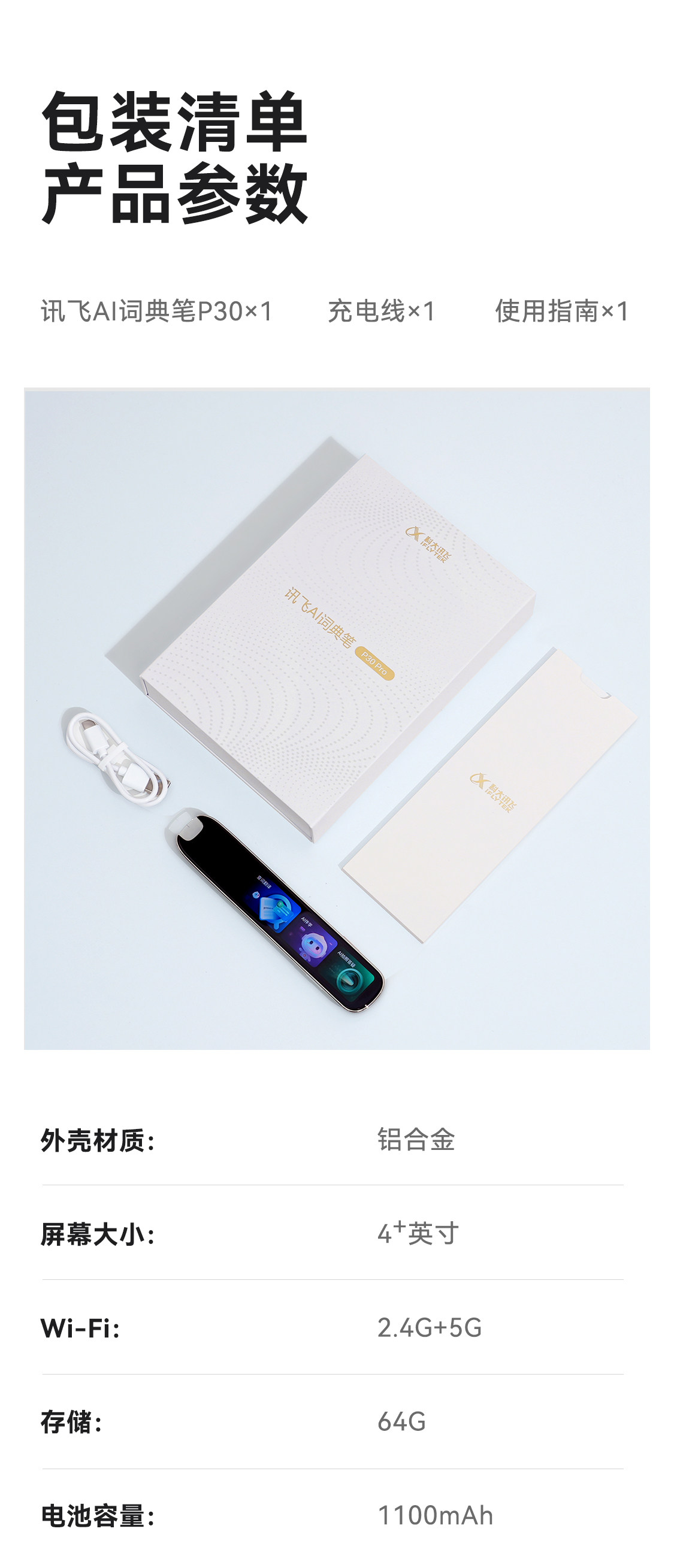[10% Instant Discount] Iflytek Ai English Reading Pen P30Pro Language Translator Pen Dictionary Pen Word Pen English Reading Pen Universal Electronic Dictionary for Primary, Middle, and High School