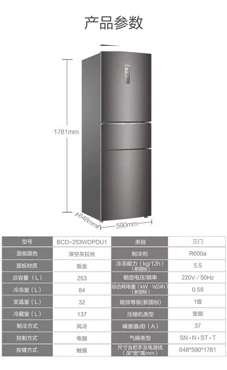| Haier Refrigerator Model | BCD-253WDPDU1 |