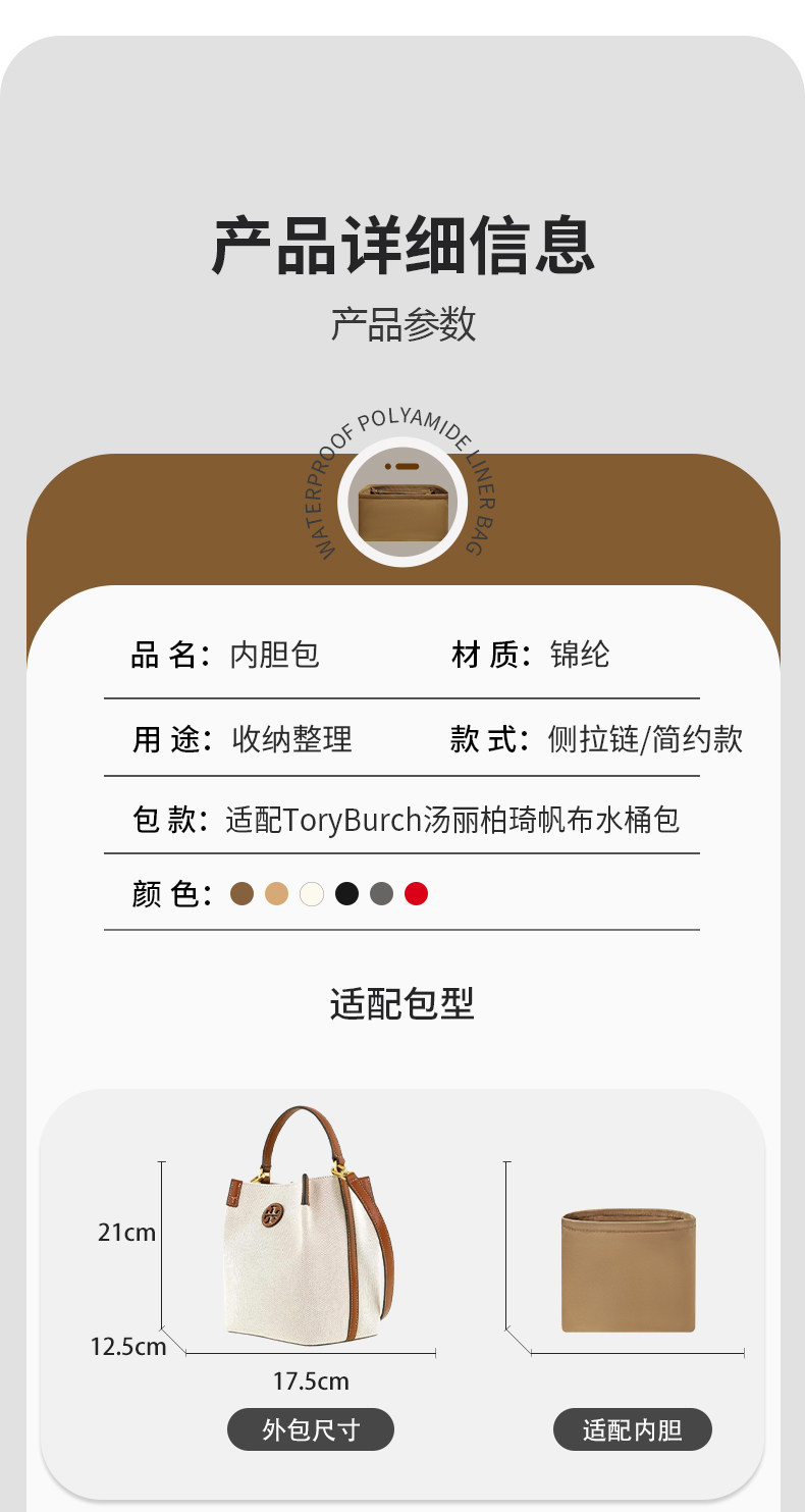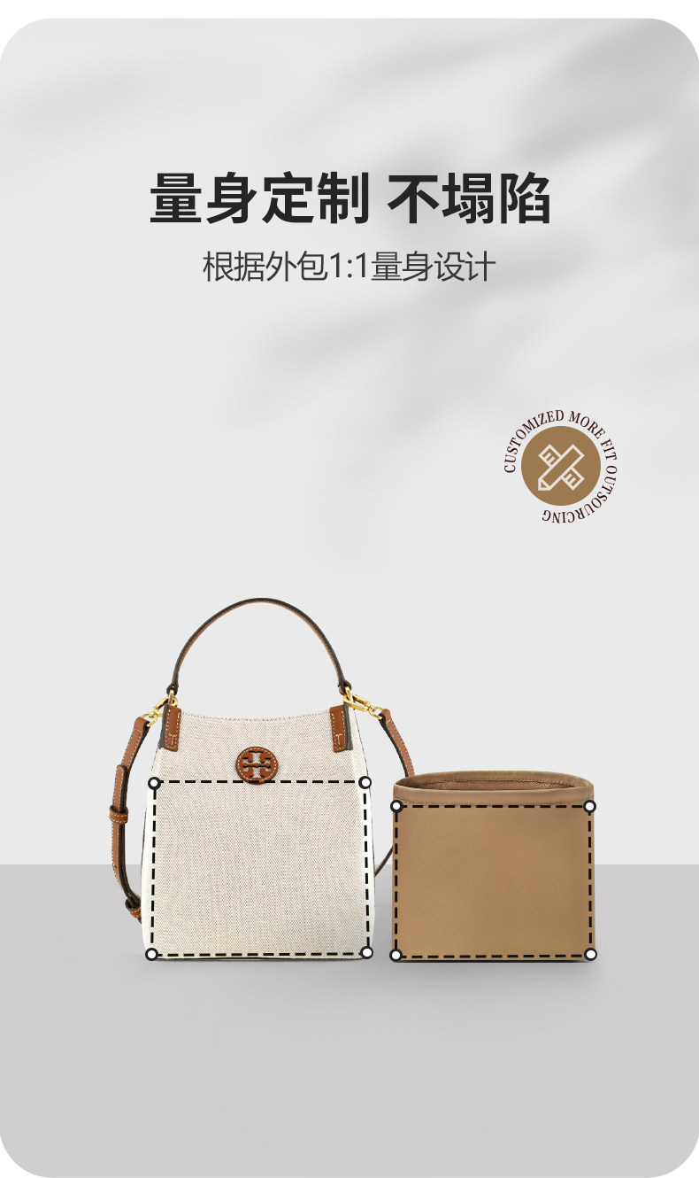 Suitable for Tory Burch New Canvas Bucket Bag Storage Organizer Insert, Inner Support Bag, Nylon