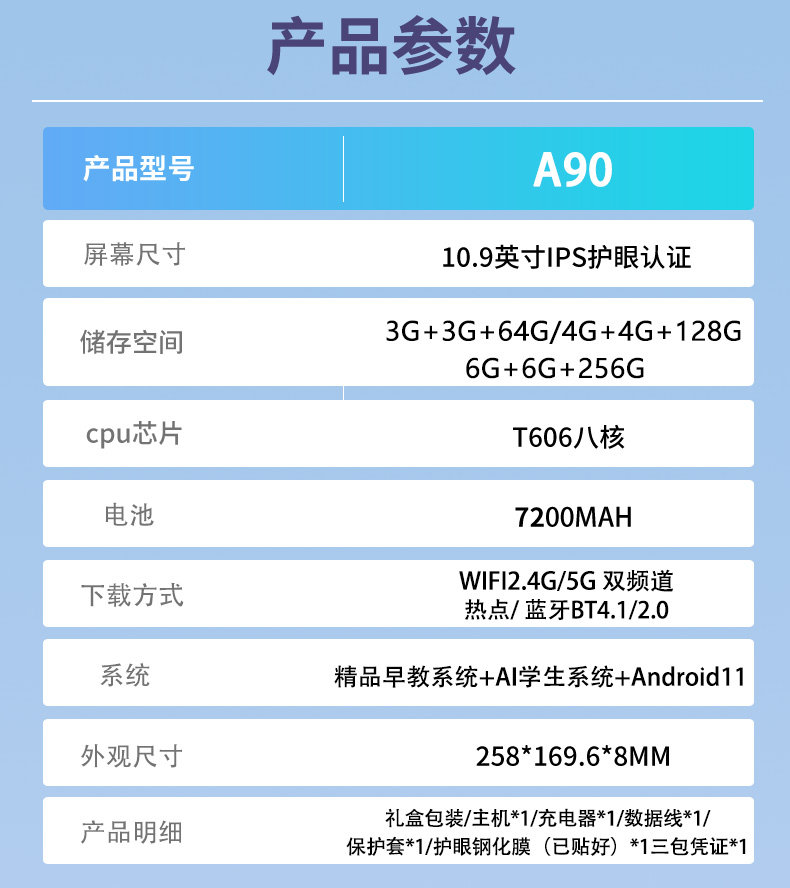 | Color Classification | 10.1inch /6G+128G/Blue,11inch /8G+128G/Blue,11inch /12G+256G/Blue |