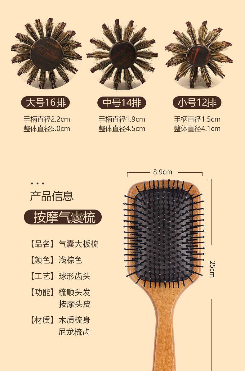 Japanese Quality Curly Hair Comb, Boar Bristle Inner Buckle, Fluffy Blow-Dry Hair, Long Straight Hair, Big Wave Bob Hair Roller Comb