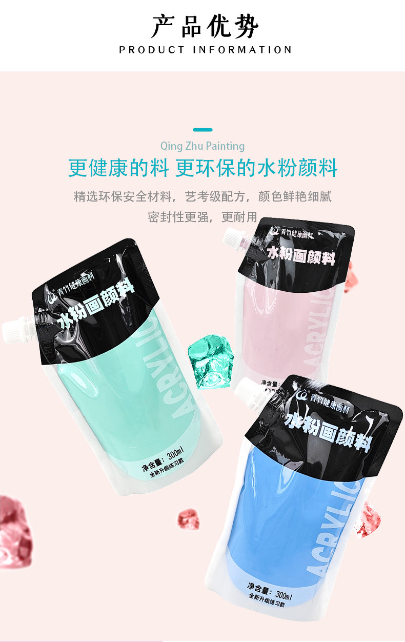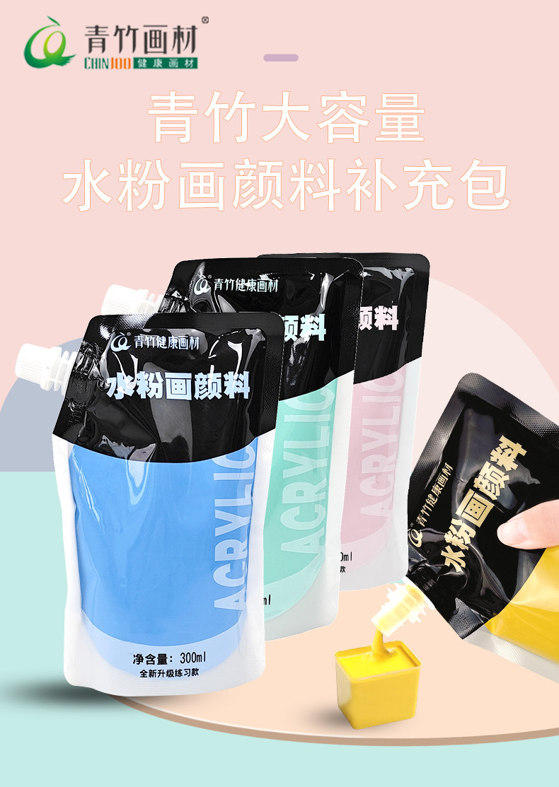 Green Bamboo Gouache Pigment Refill Art Special Large-Capacity Refill Pack 300ml Art Test Training Sketch White Pigment Green Bamboo Painting Materials 500ml Gouache Tool Set Graffiti Painting Washable