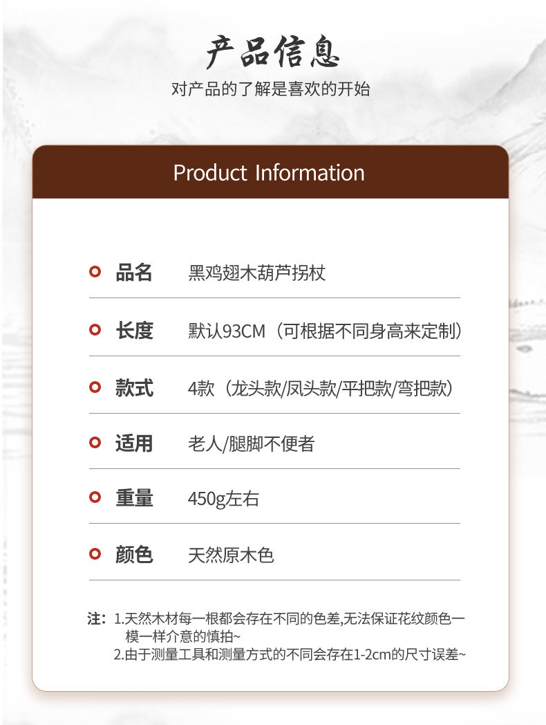 | Color Classification | Black Chicken Wing Wood Fine Gourd Faucet Model 77cm Suitable for 145-150cm Height (Comes with Four Legs),Black Chicken Wing Wood Fine Gourd Faucet Model 80cm Suitable for 150-155cm Height (Comes with Four Legs),Black Chicken Wing Wood Fine Gourd Faucet Model 82cm Suitable for 155-160cm Height (Comes with Four Legs),Black Chicken Wing Wood Fine Gourd Faucet Model 85cm Suitable for 160-165cm Height (Comes with Four Legs),Black Chicken Wing Wood Fine Gourd Faucet Model 87cm Suitable for 165-170cm Height (Comes with Four Legs),Black Chicken Wing Wood Fine Gourd Faucet Model 90cm Suitable for 170-175cm Height (Comes with Four Legs),Black Chicken Wing Wood Fine Gourd Faucet Model 93cm Suitable for 175-183cm Height (Comes with Four Legs),Black Chicken Wing Wood Fine Gourd Faucet Model Customized Size Order Note (Comes with Four Legs),Black Wenge Wood Fine Gourd Phoenix Head Model 77cm Suitable for 145-150cm Height (Comes with Four Legs),Black Wenge Wood Fine Gourd Phoenix Head Model 80cm Suitable for 150-155cm Height (Comes with Four Legs),Black Wenge Wood Fine Gourd Phoenix Head Model 82cm Suitable for 155-160cm Height (Comes with Four Legs),Black Wenge Wood Fine Gourd Phoenix Head Model 85cm Suitable for 160-165cm Height (Comes with Four Legs),Black Chicken Wing Wood Fine Gourd Phoenix Head Model 87cm Suitable for 165-170cm Height (Comes with Four Legs),Black Chicken Wing Wood Fine Gourd Phoenix Head Model 90cm Suitable for 170-175cm Height (Comes with Four Legs),Black Chicken Wing Wood Fine Gourd Phoenix Head Model 93cm Suitable for 175-183cm Height (Comes with Four Legs),Black Chicken Wing Wood Fine Gourd Phoenix Head Style Customized Size Order Note (Comes with Four Legs),Black Chicken Wing Wood Fine Gourd Flat Handle 77cm Suitable for 145-150cm Height (Comes with Four Legs),Black Wenge Wood Fine Gourd Flat Handle 80cm Suitable for 150-155cm Height (Comes with Four Legs),Black Chicken Wing Wood Fine Gourd Flat Handle 82cm Suitable for 155-160cm Height (Comes with Four Legs),Black Chicken Wing Wood Fine Gourd Flat Handle 85cm Suitable for 160-165cm Height (Comes with Four Legs),Black Chicken Wing Wood Fine Gourd Flat Handle 87cm Suitable for 165-170cm Height (Comes with Four Legs),Black Chicken Wing Wood Fine Gourd Flat Handle 90cm Suitable for 170-175cm Height (Comes with Four Legs),Black Chicken Wing Wood Fine Gourd Flat Handle 93cm Suitable for 175-183cm Height (Comes with Four Legs),Black Chicken Wing Wood Fine Gourd Flat Handle Customized Size Order Note (Comes with Four Legs),Black Wenge Wood Fine Gourd Curved Handle 77cm Suitable for 145-150cm Height (Comes with Four Legs),Black Wenge Wood Fine Gourd Curved Handle 80cm Suitable for 150-155cm Height (Comes with Four Legs),Black Wenge Wood Fine Gourd Curved Handle 82cm Suitable for 155-160cm Height (Comes with Four Legs),Black Wenge Wood Fine Gourd Curved Handle 85cm Suitable for 160-165cm Height (Comes with Four Legs),Black Chicken Wing Wood Fine Gourd Curved Handle 87cm Suitable for 165-170cm Height (Comes with Four Legs),Black Chicken Wing Wood Fine Gourd Curved Handle 90cm Suitable for 170-175cm Height (Comes with Four Legs),Black Chicken Wing Wood Fine Gourd Curved Handle 93cm Suitable for 175-183cm Height (Comes with Four Legs),Black Chicken Wing Wood Fine Gourd Curved Handle Customized Size Order Note (Comes with Four Legs) |