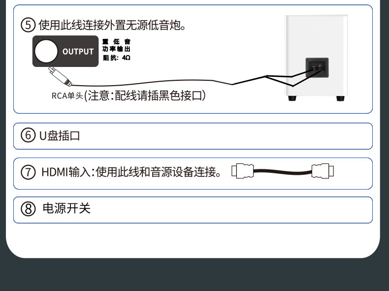 | Interface Type | Bluetooth,HDMI,USB,Fiber Optic,AUX |