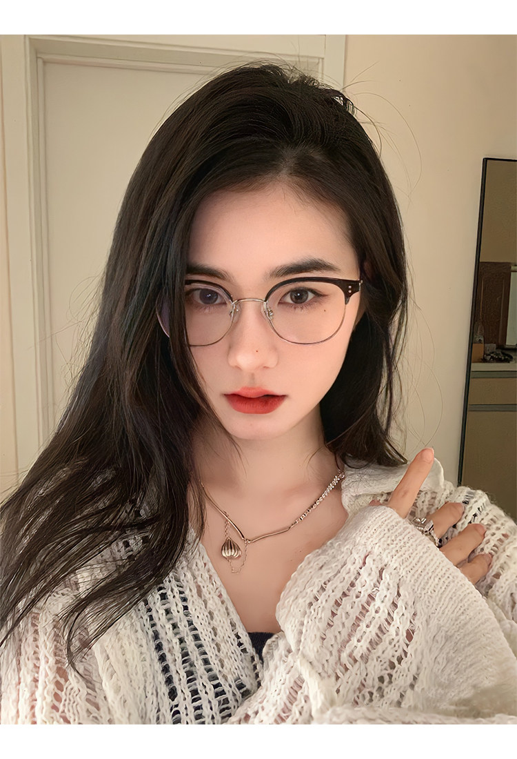 Ultra-Light Half-Frame Glasses for Nearsighted Women, Can Be Customized with Prescription, Blue Light Blocking, Gold Wire Glasses, Natural Look, Brightening Eye Frame