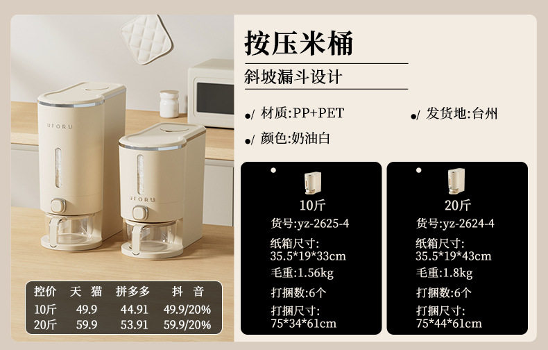 | Color Classification | One-Touch Rice Bucket-Cream White【 5kg 】,One-Touch Rice Bucket-Cream White【 10kg 】 |