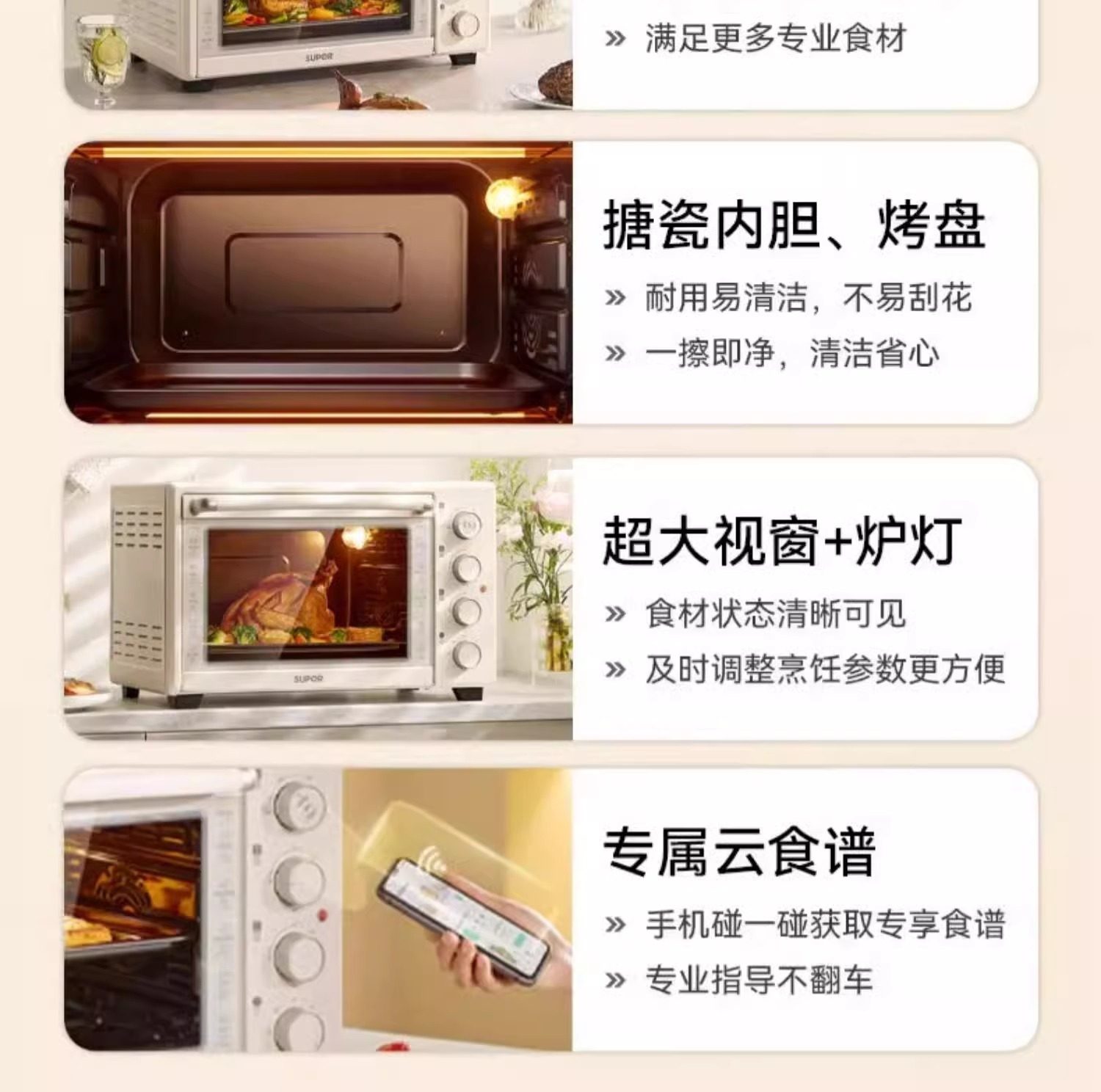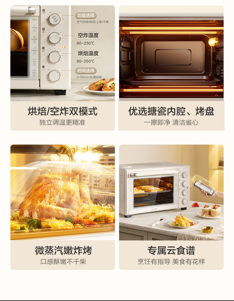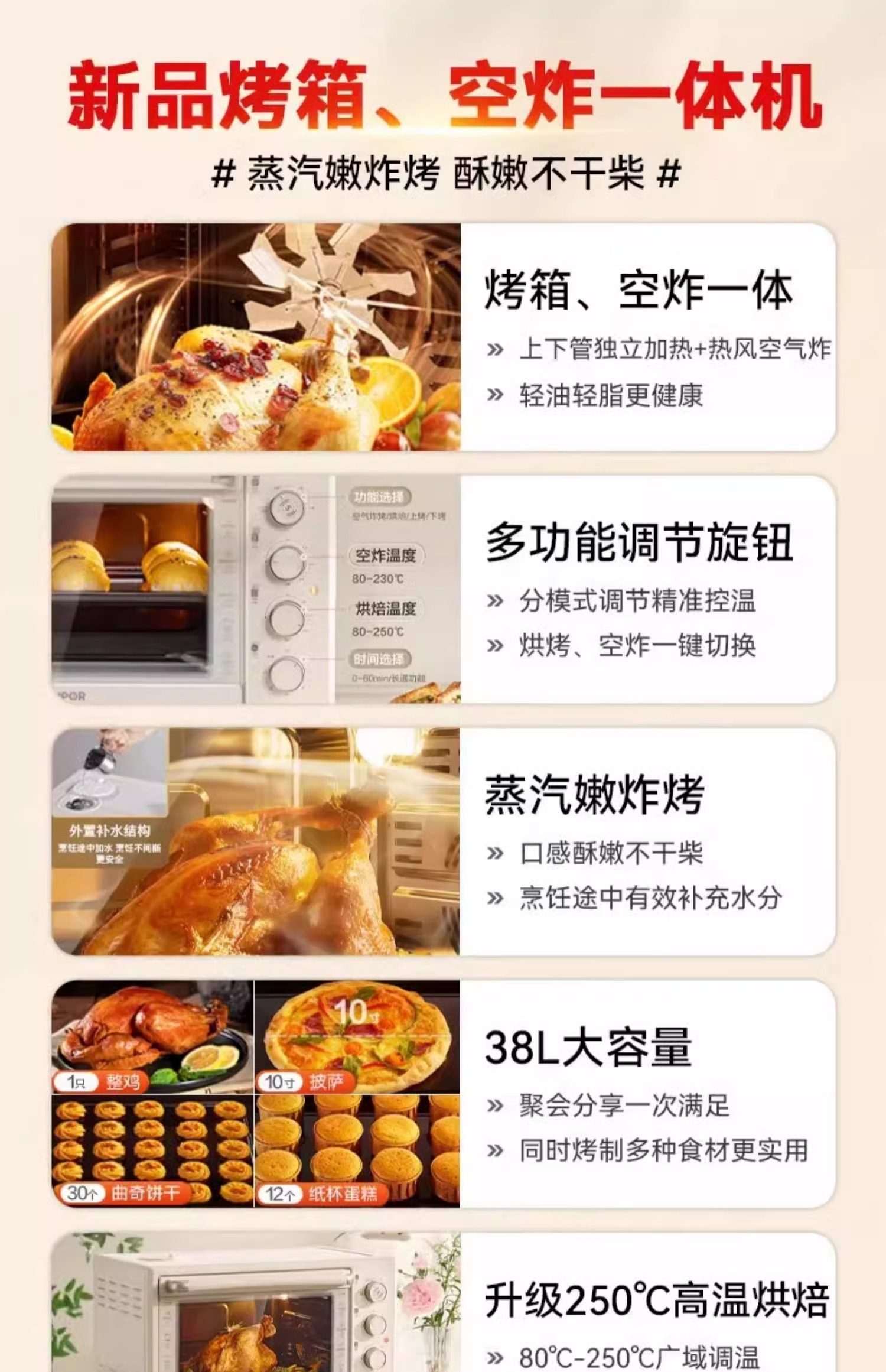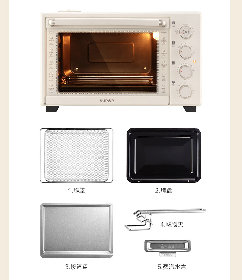 Supor Oven Is a Small, Multifunctional Home Appliance That Combines Steaming, Baking, and Roasting in One, with a Large 38-Liter Capacity, and Also Functions as an Air Fryer